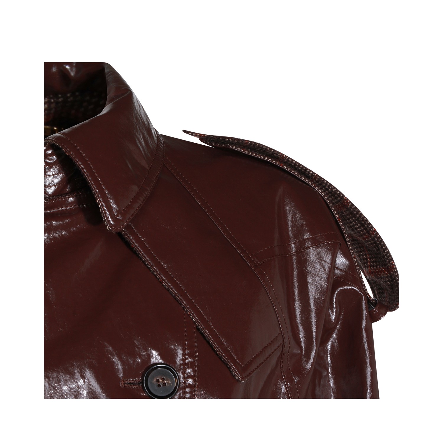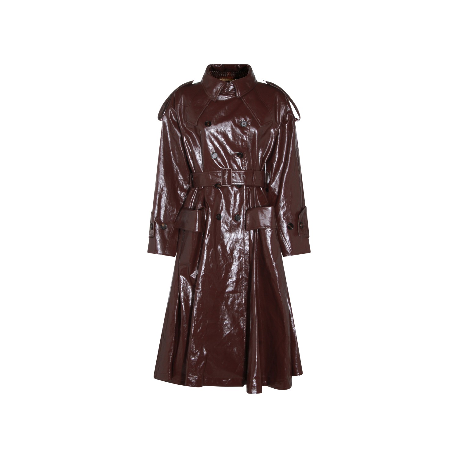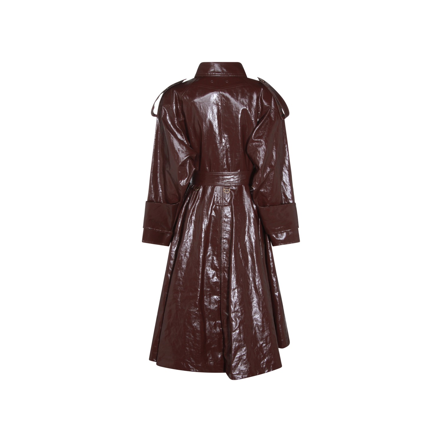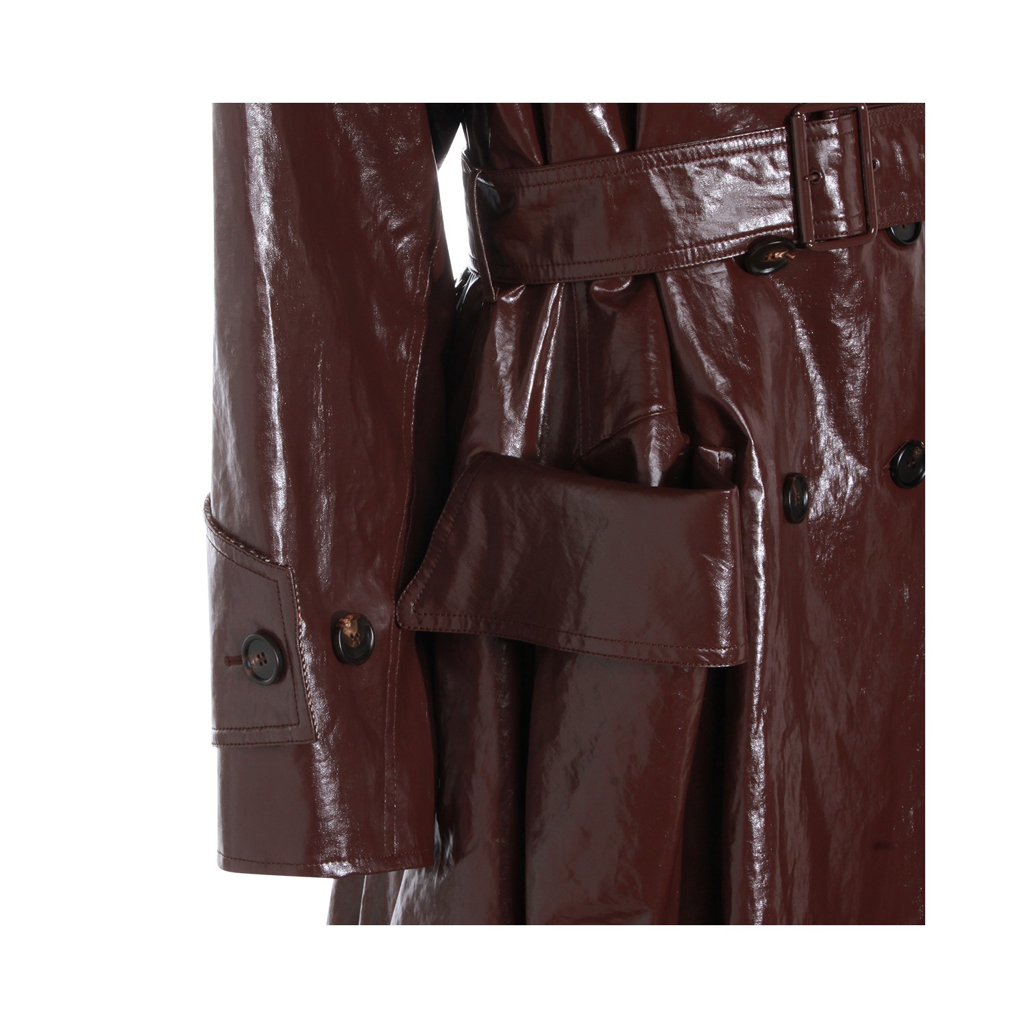 Dark purple wool trench coat from Chlofeaturing vinyl effect, long sleeves, double breasted, belt waist, pockets, buckle details and regular vestibility.