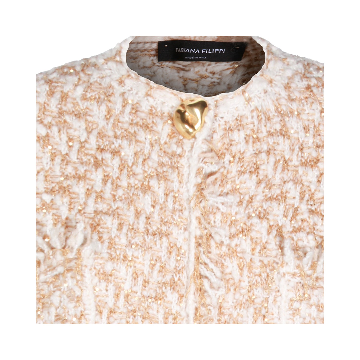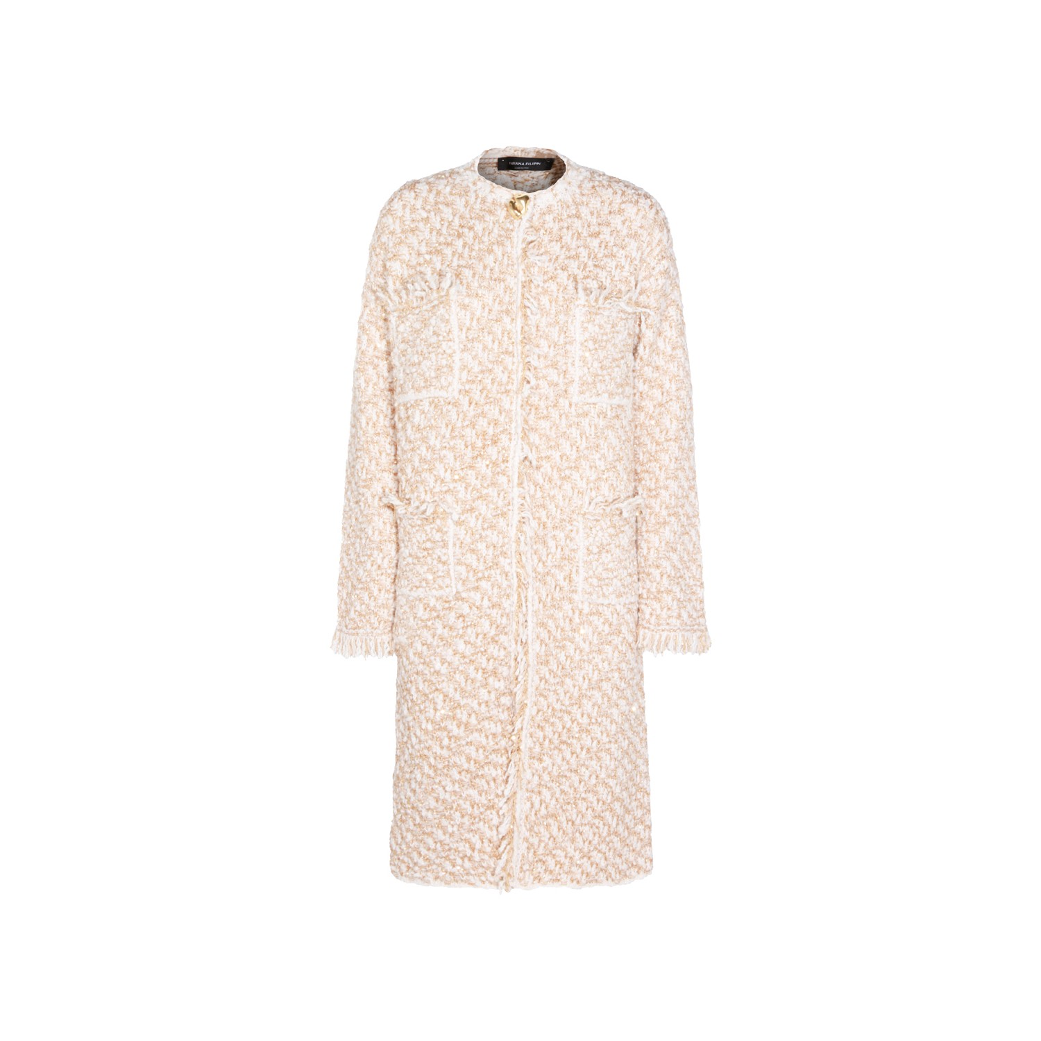 Beige coat from Fabiana Filippi featuring round collar, long sleeves, front closure and long lenght.