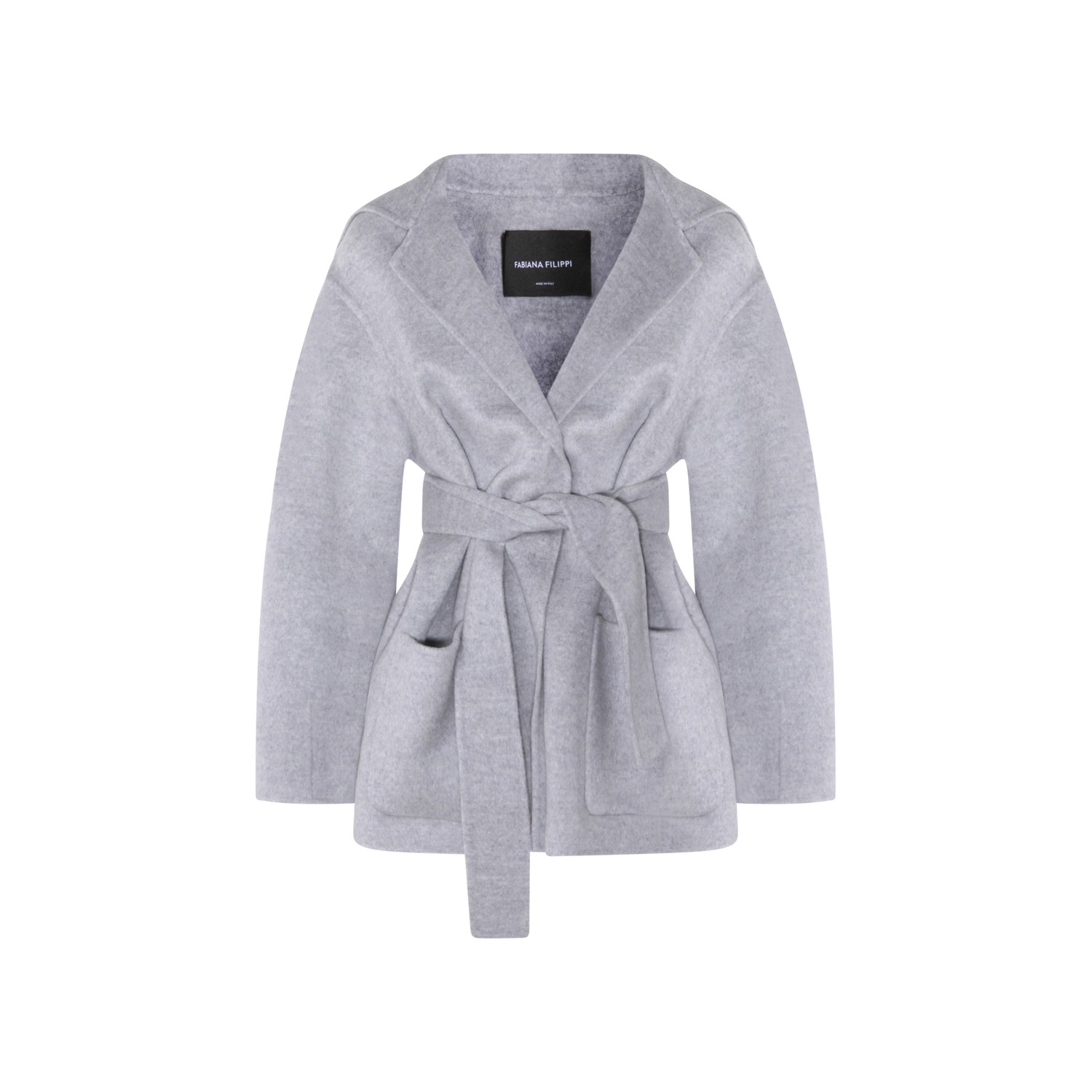Grey wool coat from Fabiana Filippi featuring lapel collar, long sleeves, belt waist closure, pockets and regular vestibility.