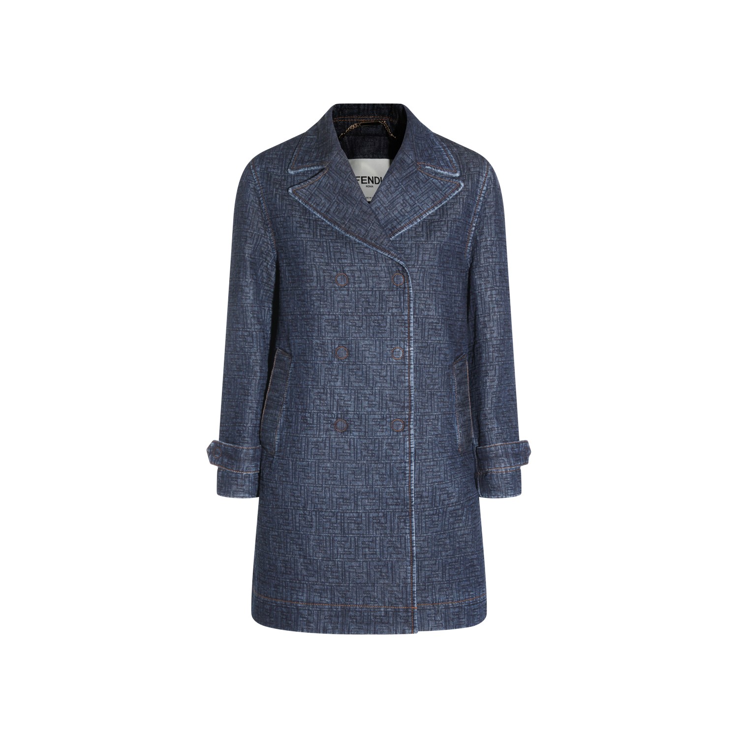 Blue cotton coat from Fendi featuring lapel collar, long sleeves, double breasted, buttoned cuffs and regular fit.