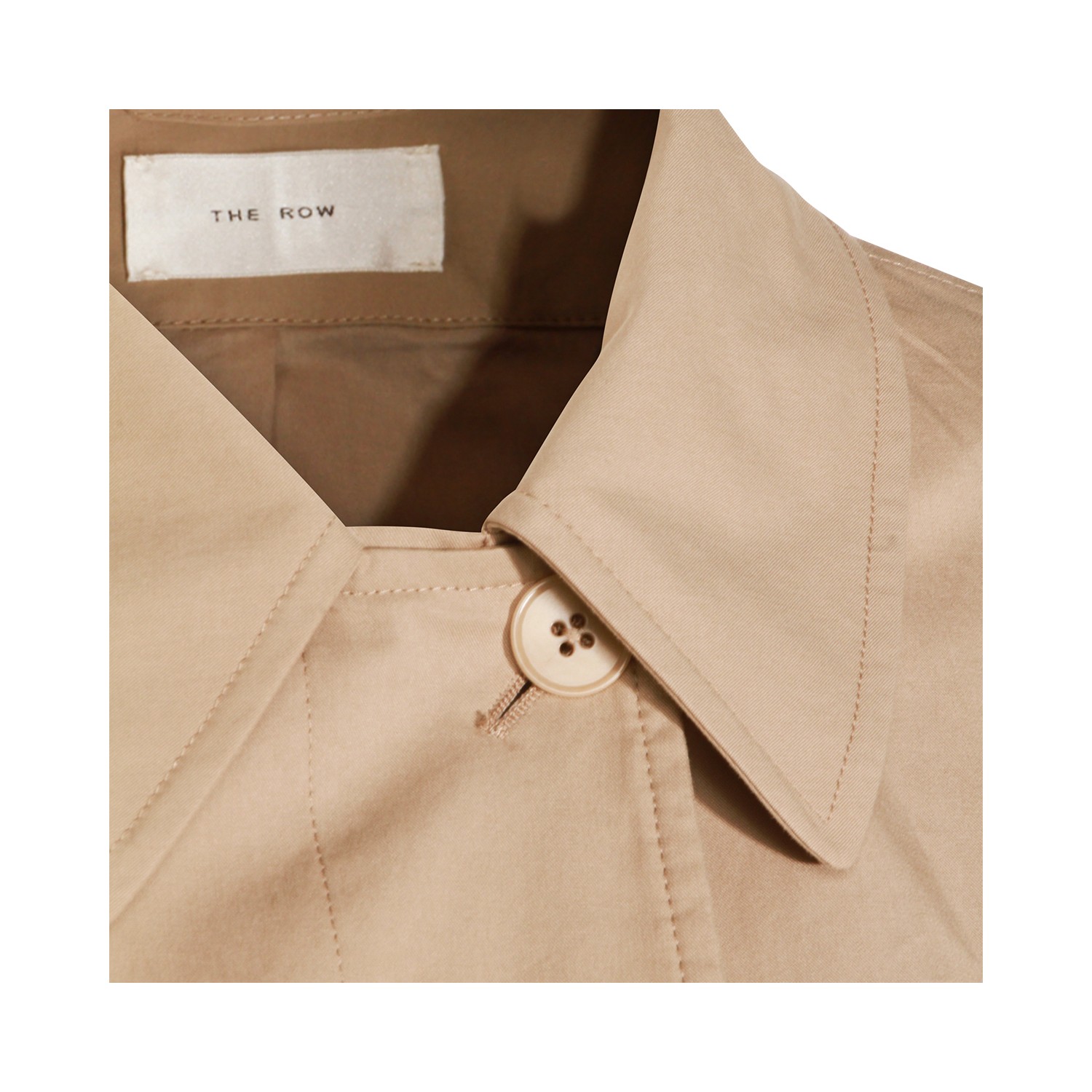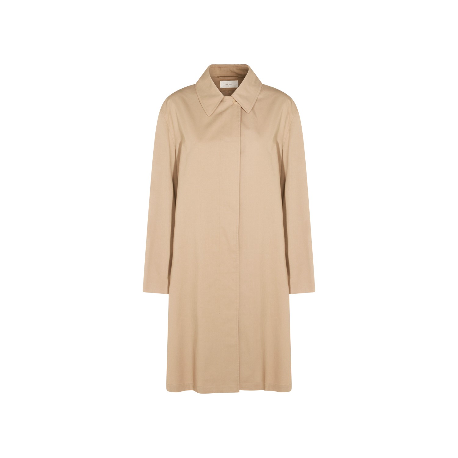 Beige cotton Dayton trench coat from The Row featuring lapel collar, long sleeves, frontal closure and midi lenght.