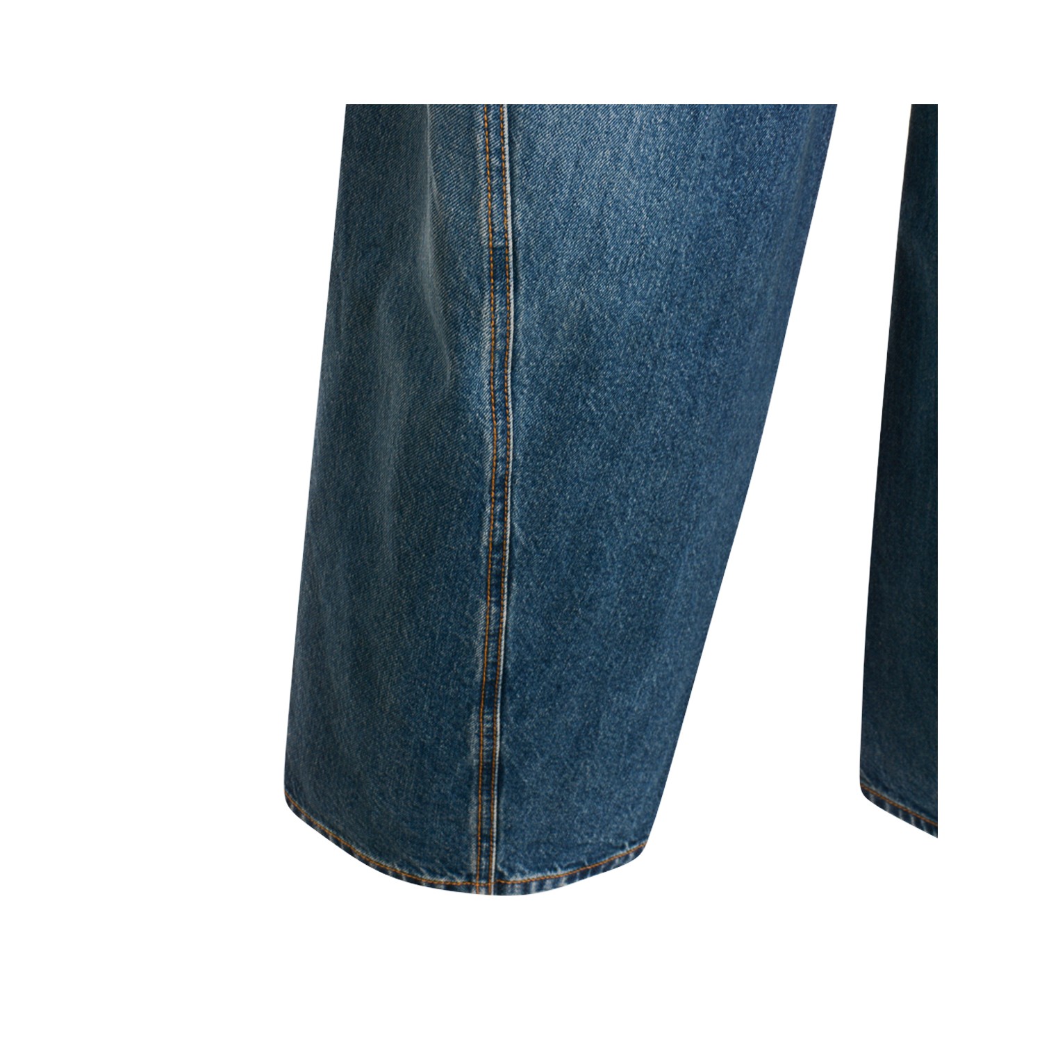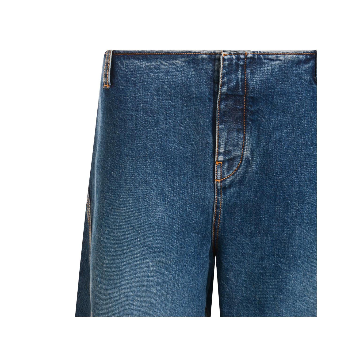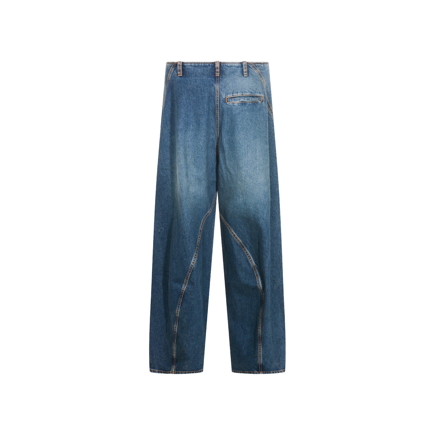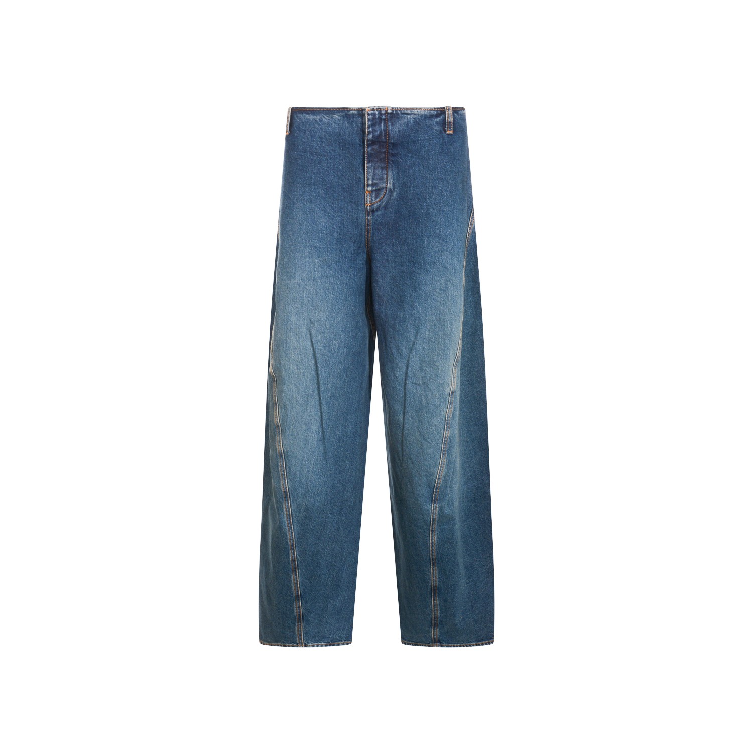 Blue cotton jeans from Alaia featuring belt loops, zip and button fastening, back welt pockets and wide leg.