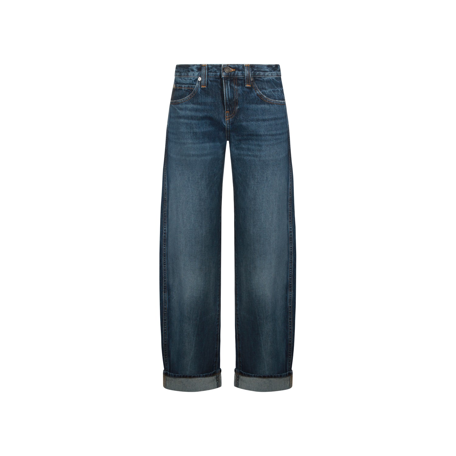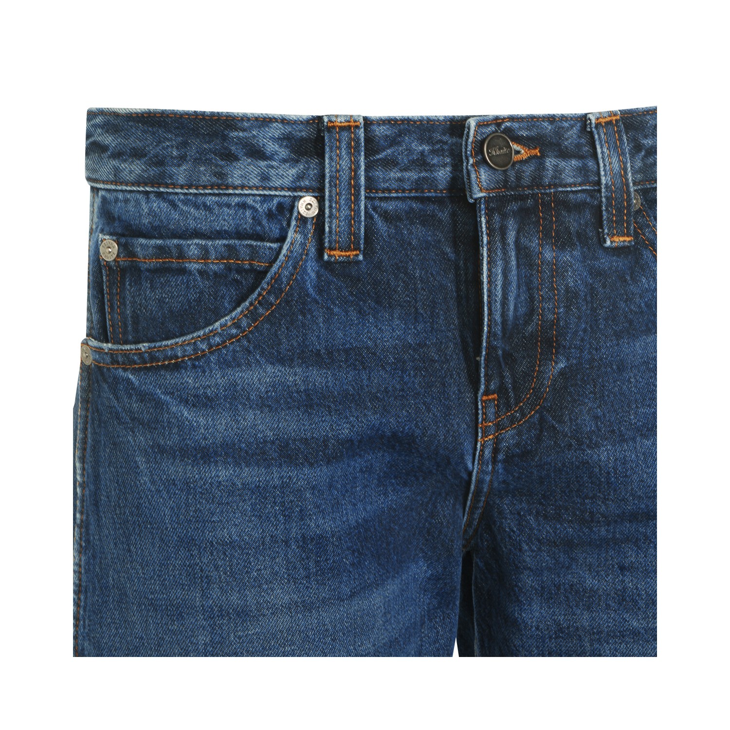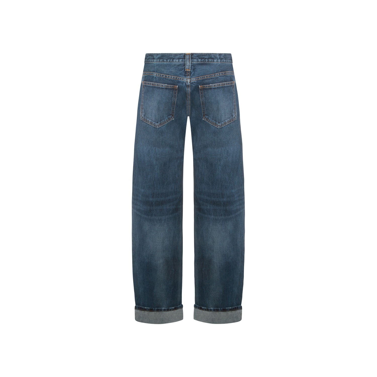 Blue cotton jeans from Khaite featuring midi waist, belt loops, frontal zip and button fastening, pockets and soft vestibility.
