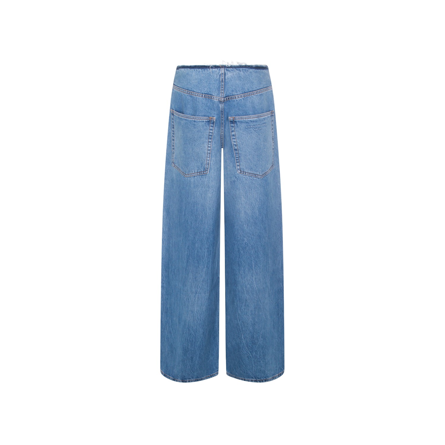 Vintage marbled blue cotton jeans from Alexander Wang featuring high ripped waist, zipped fastening, pockjets and wide leg vestibility.