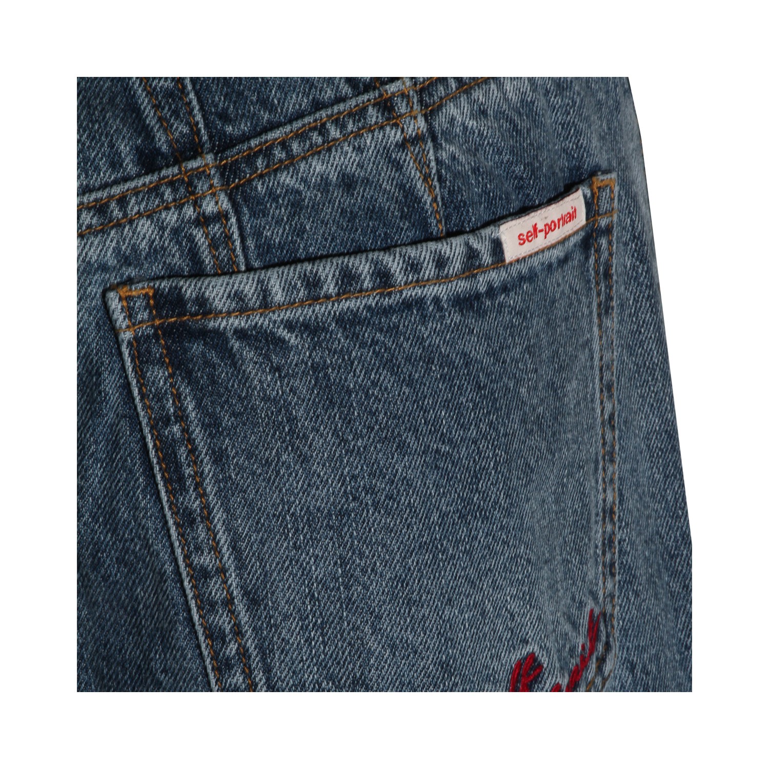 Blue cotton jeans from Self-Portrait featuring high waist, belt loops, zip fastening, pockets and loose vestibility.