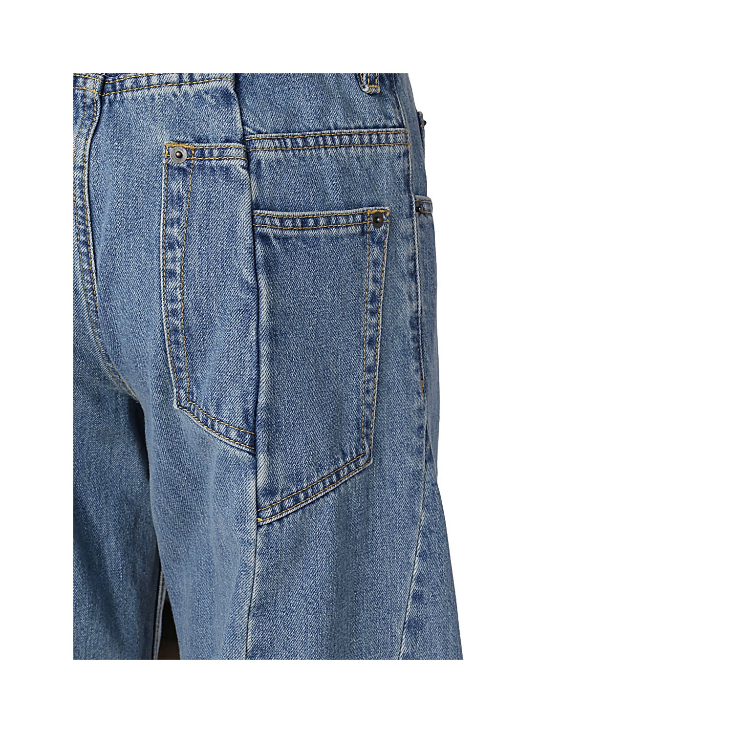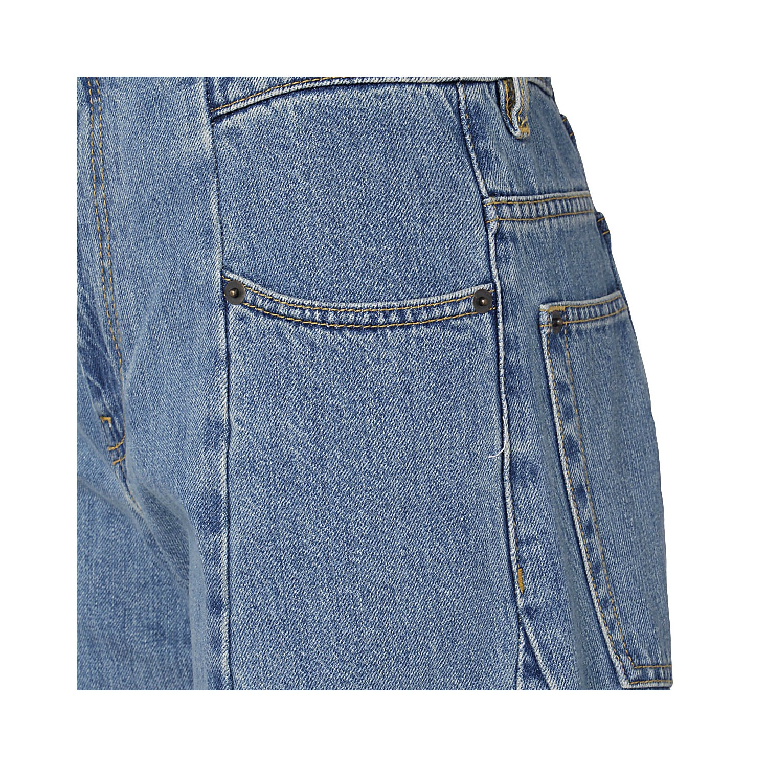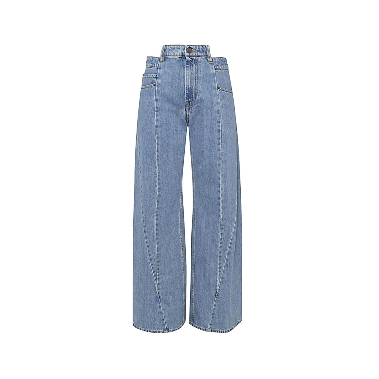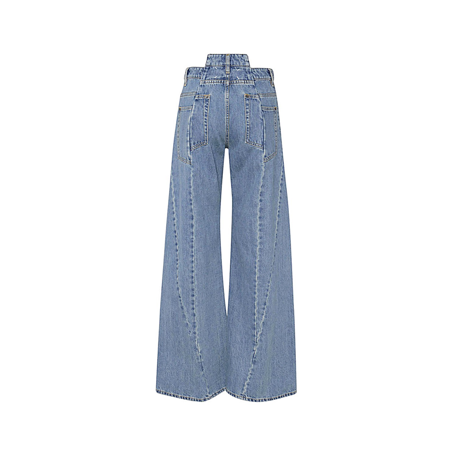 Light blue denim jeans from Maison Margiela featuring stonewashed, wide leg, high waist, belt loops, zip fly fastening, classic five pockets and signature four-stitch logo.