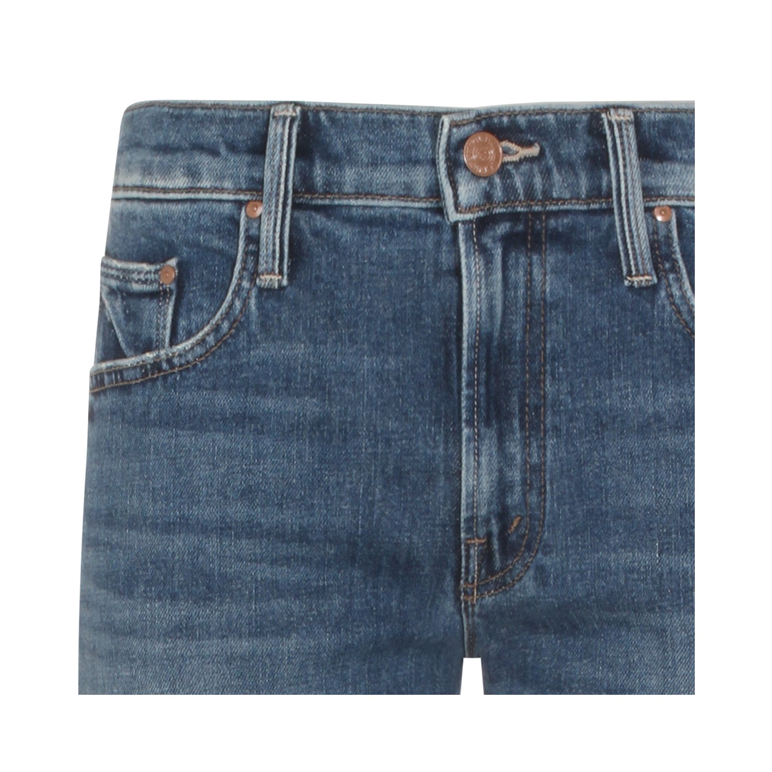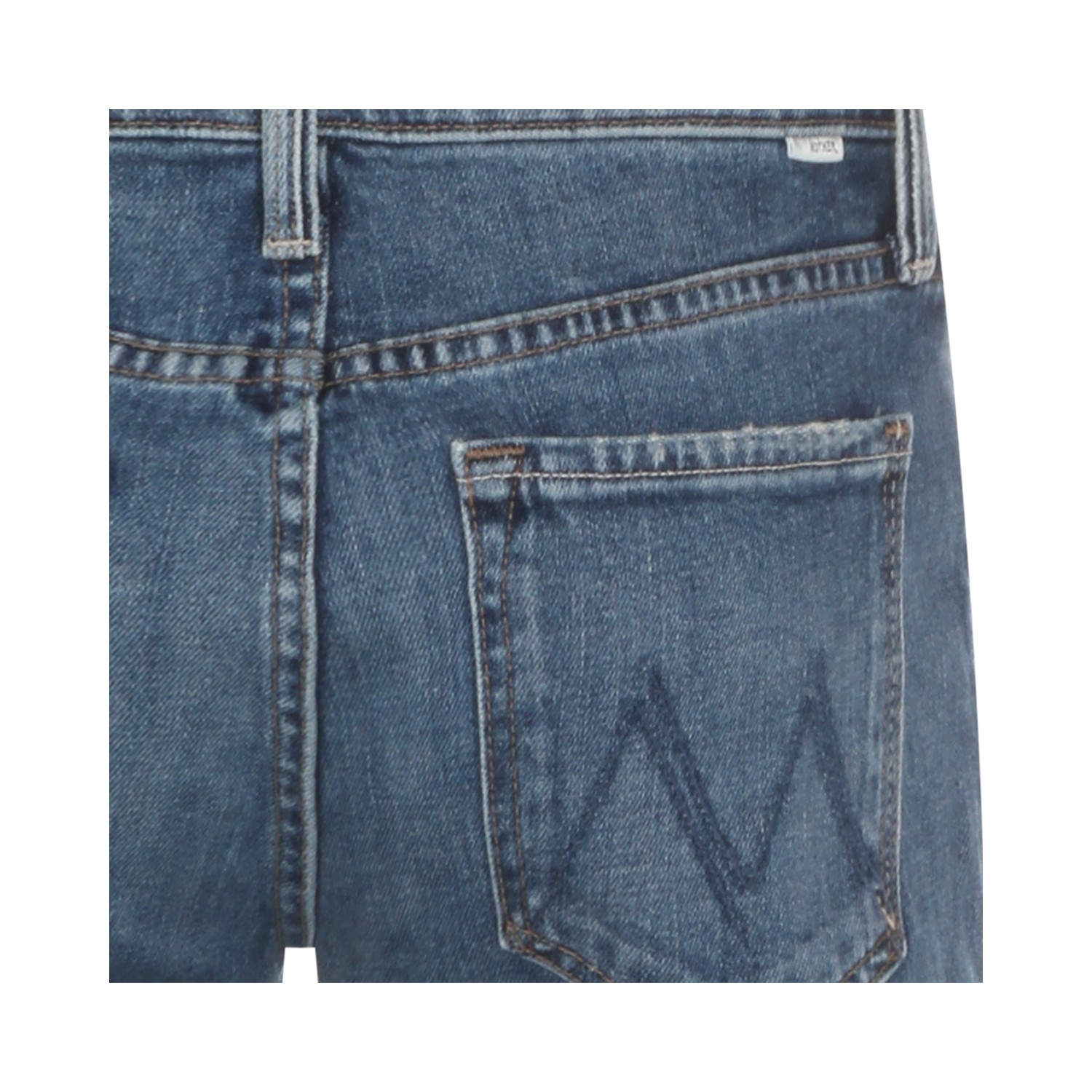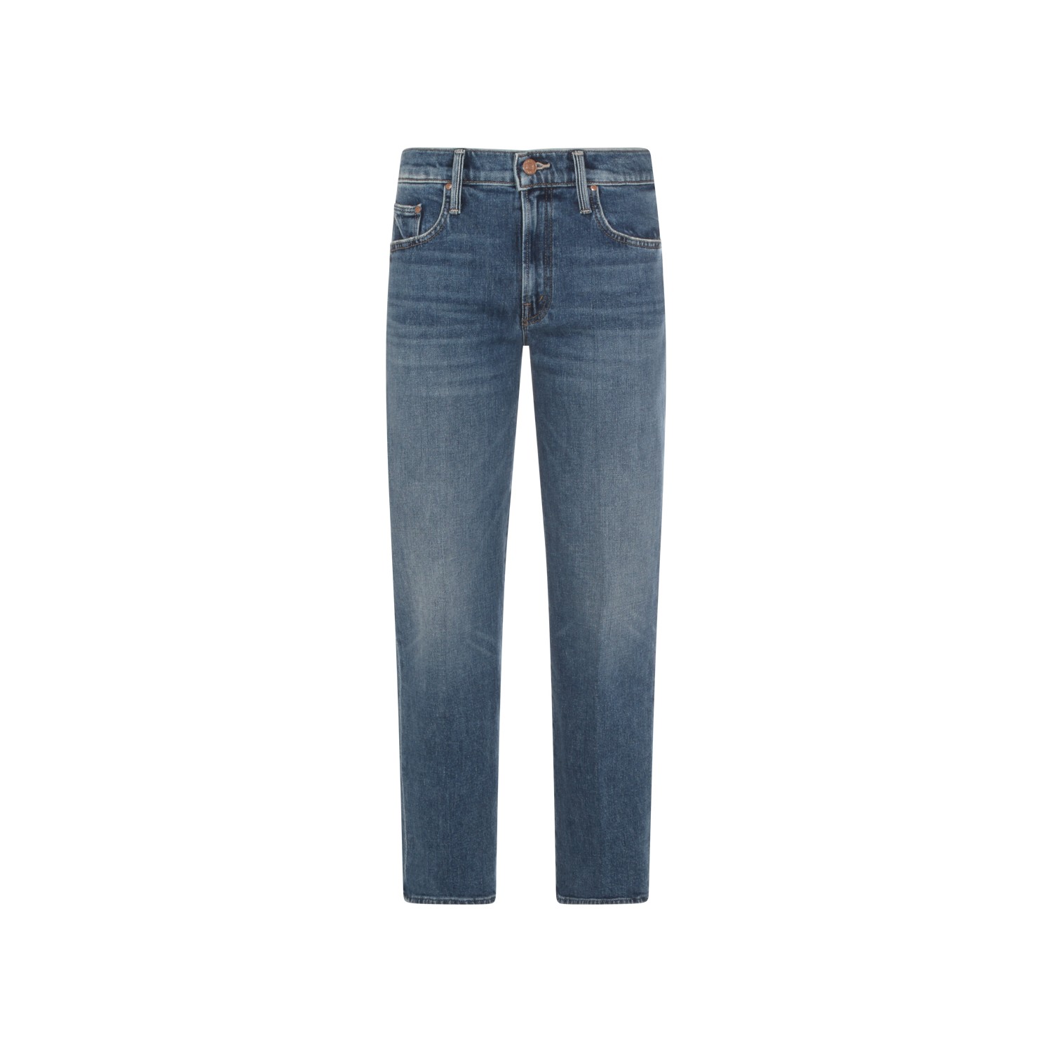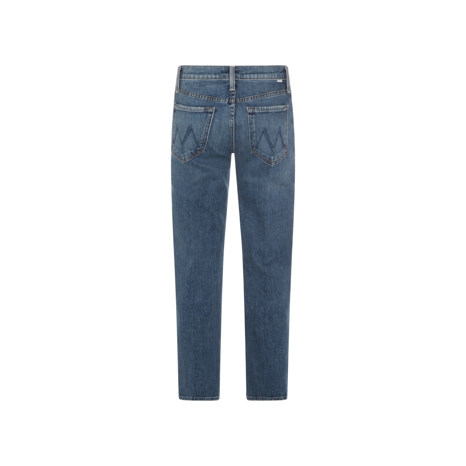 Blue cotton jeans from Mother featuring high waist, belt loops, zip fastening, pockets and straight leg.