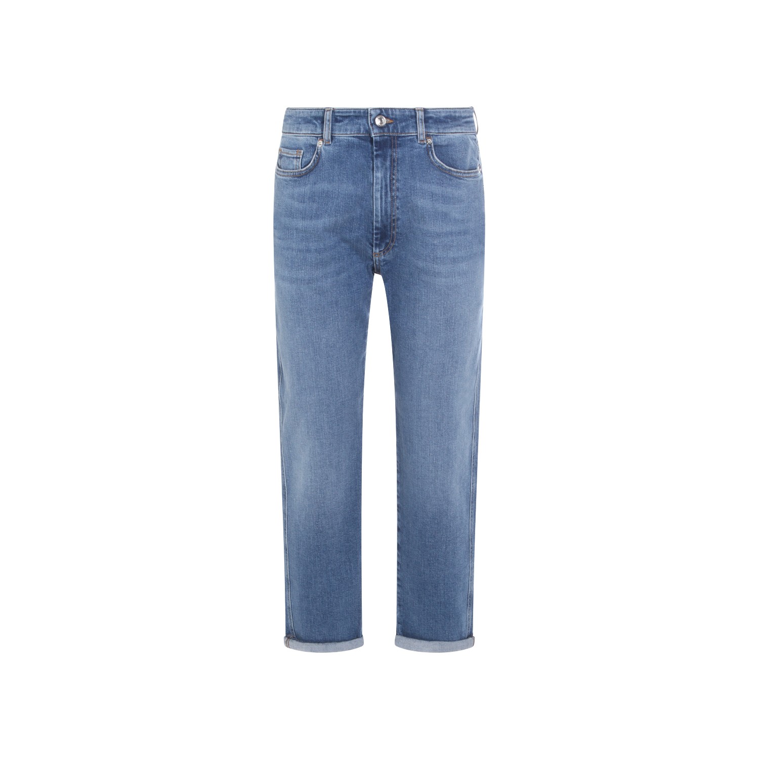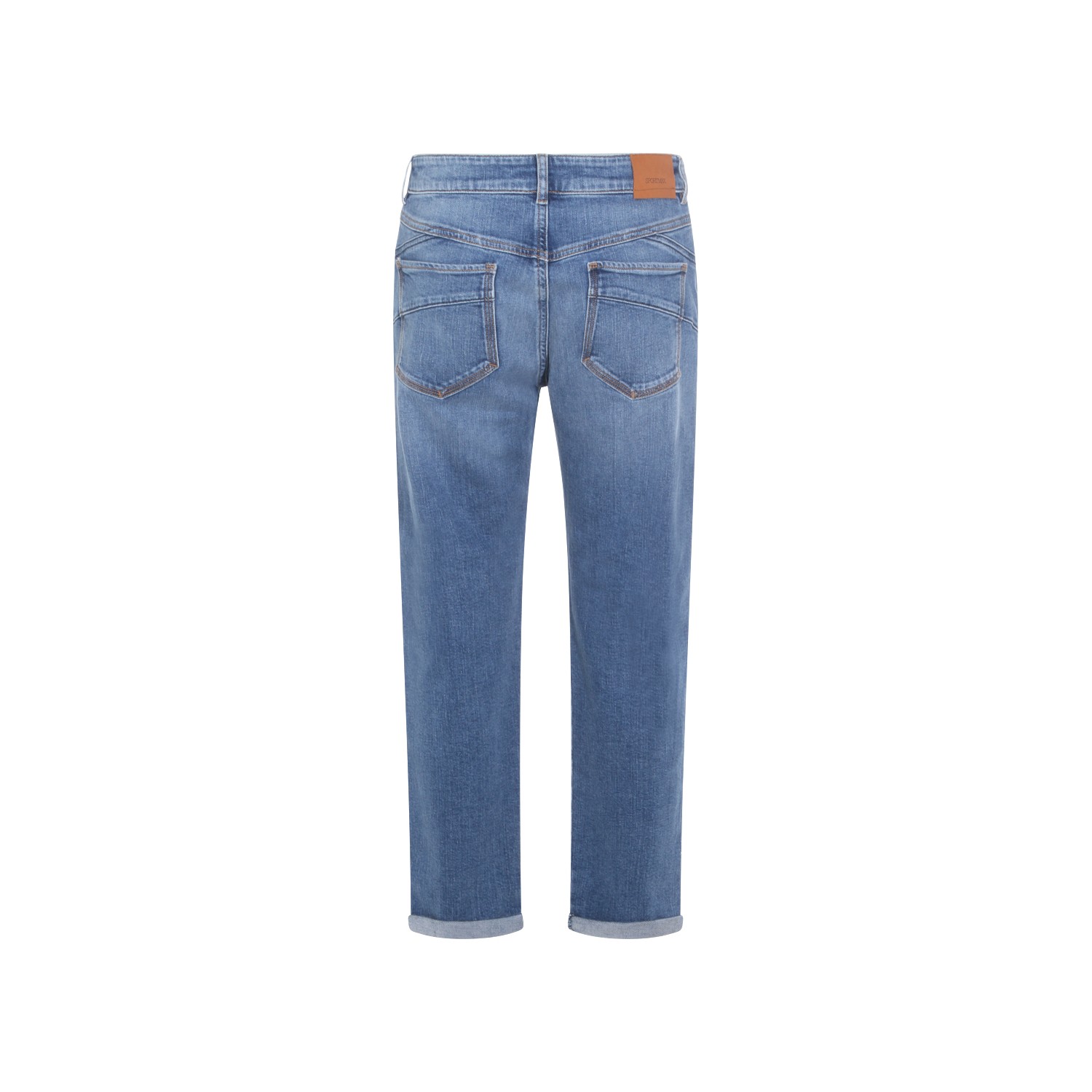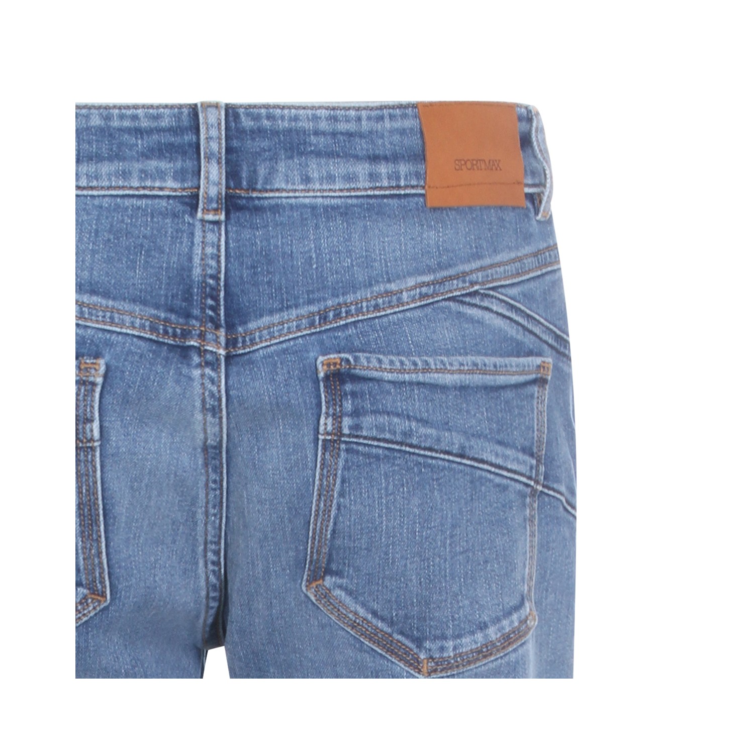 Blue cotton jeans from Sportmax featuring mid waist, belt loops, zip fastening, pockets and straight leg.