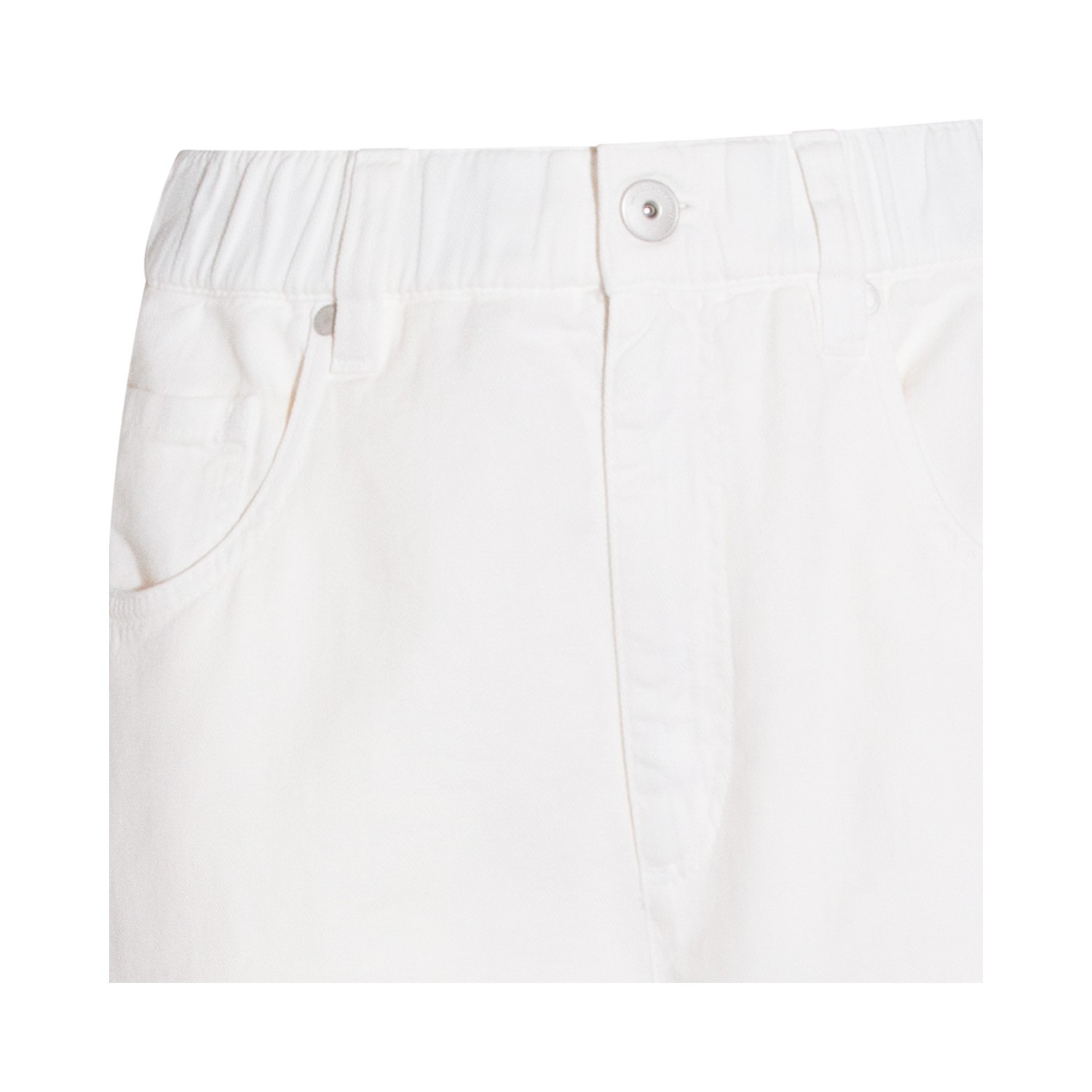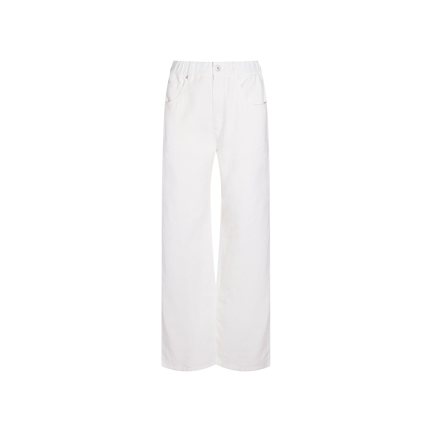White cotton jeans from Brunello Cucinelli featuring high waist, elasticized belt, belt loops, button and zip fastening, five-pockets, wide leg and relaxed fit.