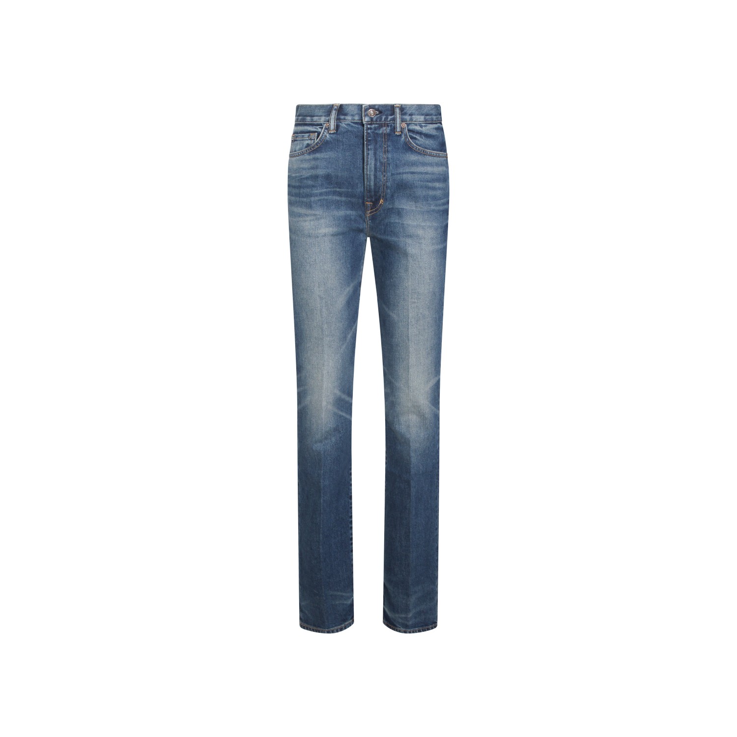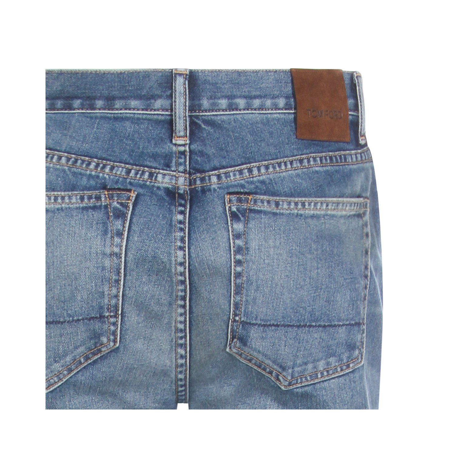 Blue cotton denim jeans from Tom Ford featuring frontal fastening, belt loops, pockets and regular vestibility.