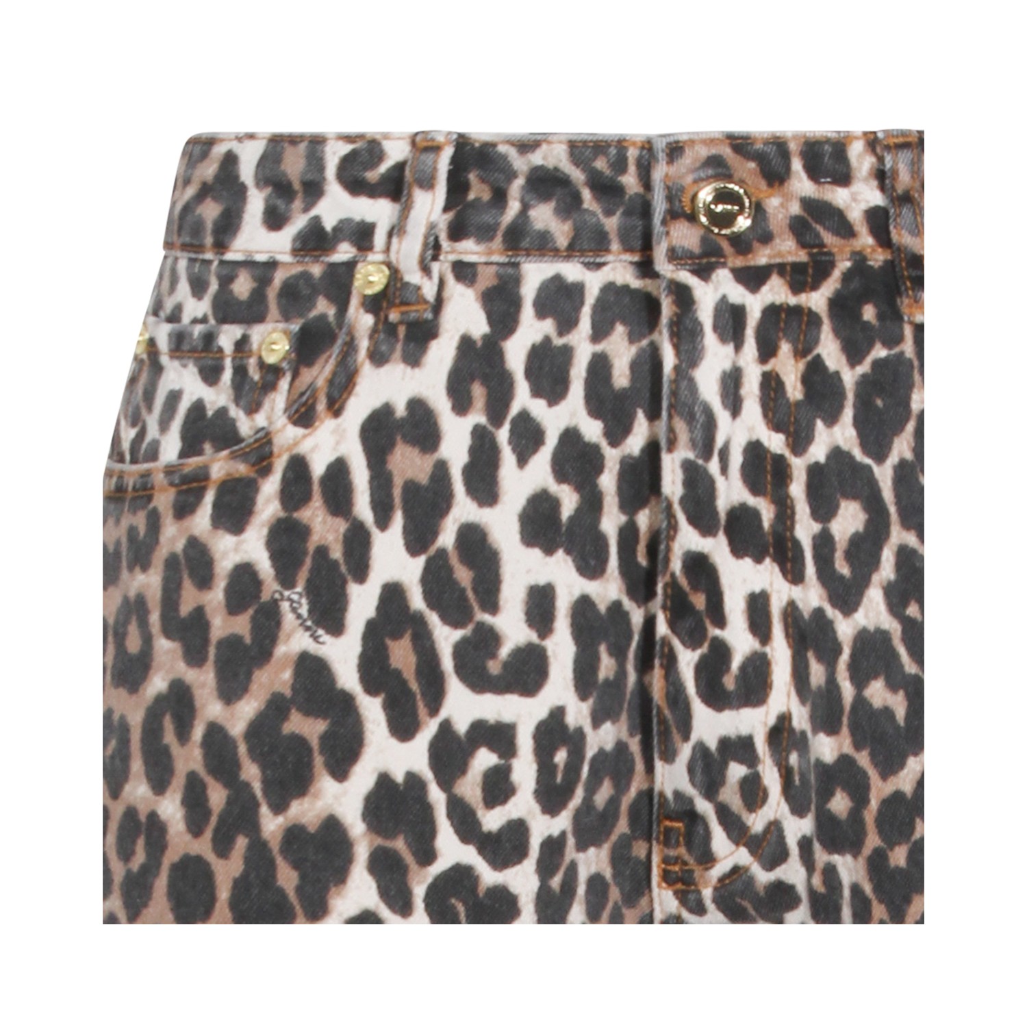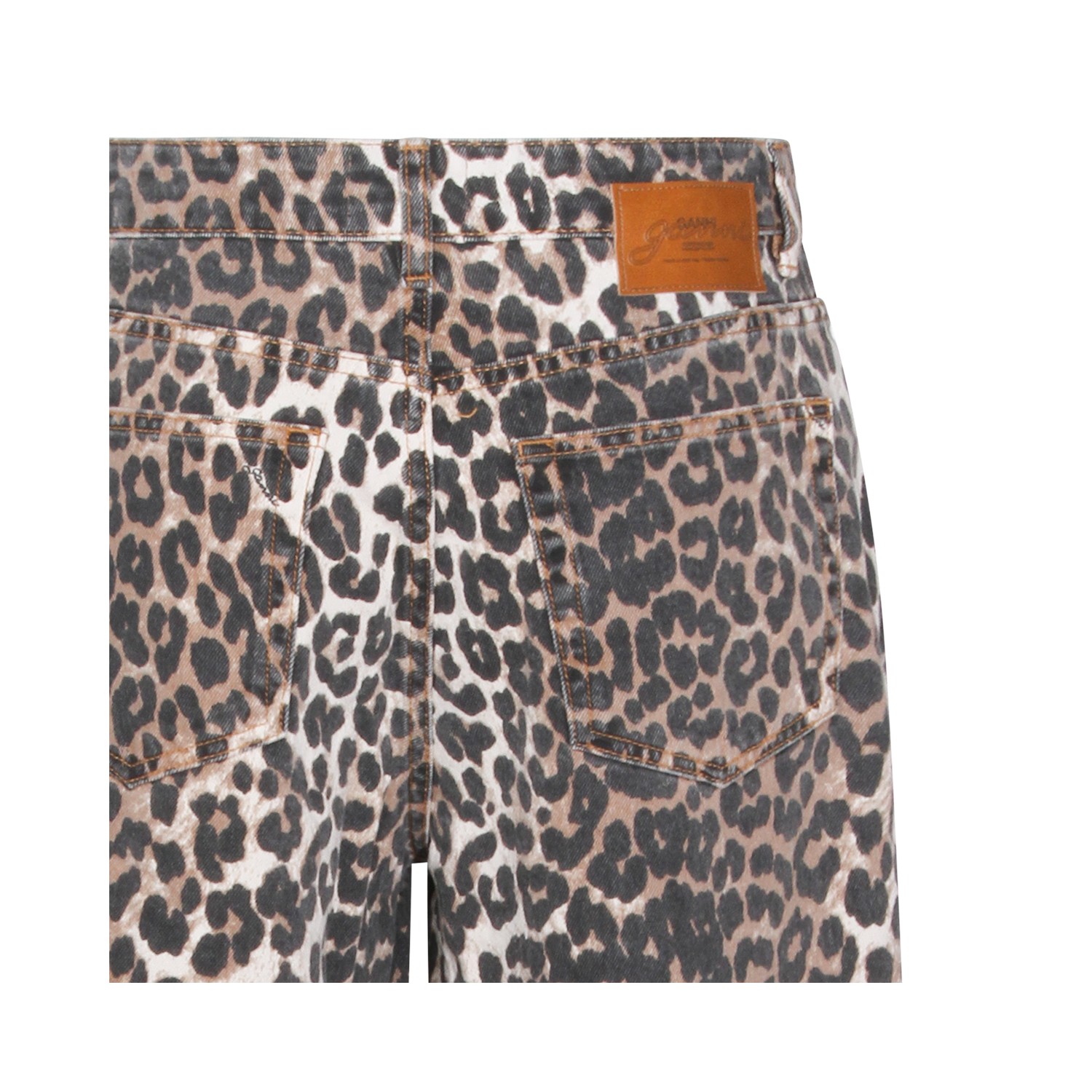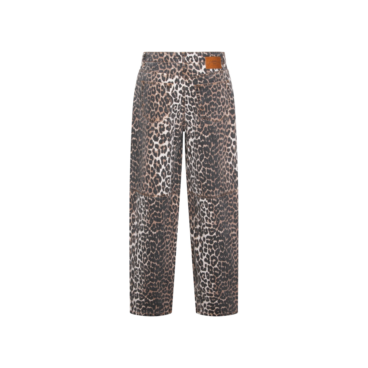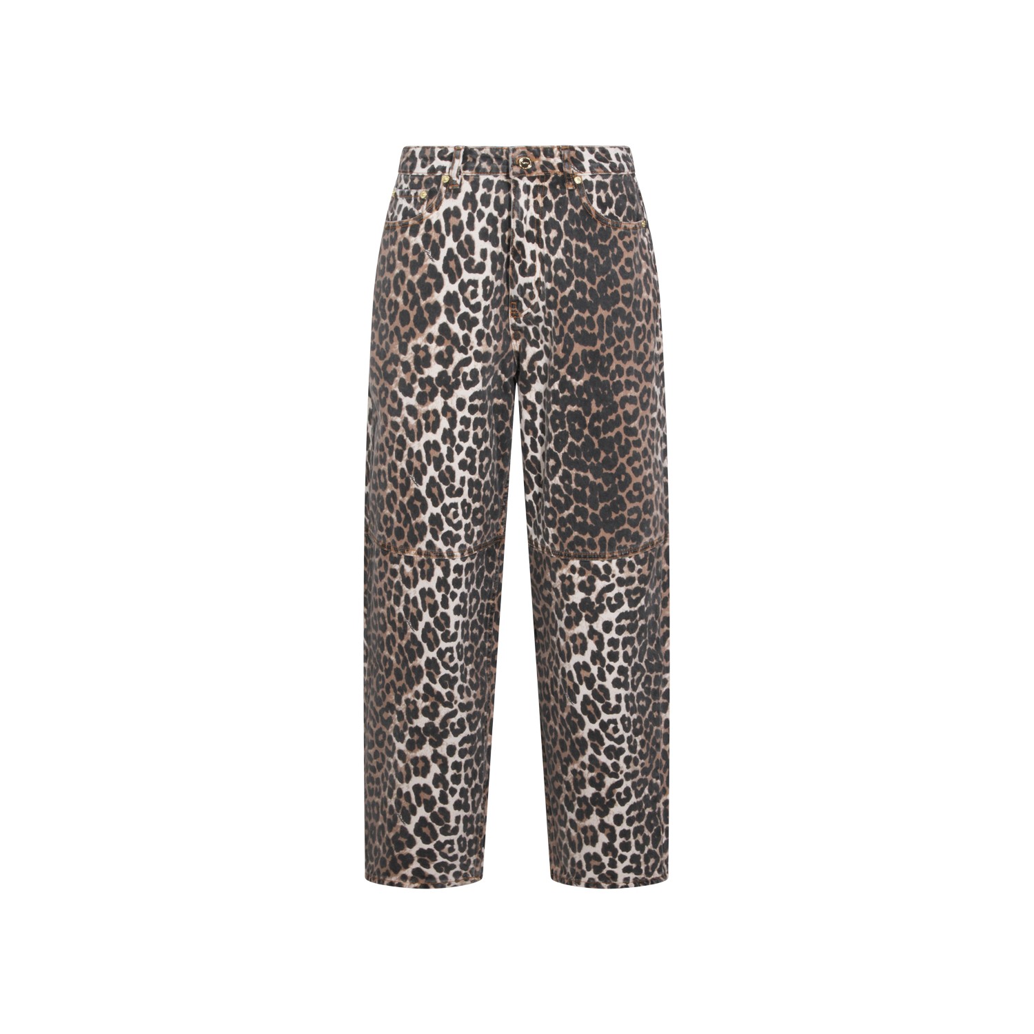 Leopard cotton jeans from Ganni featuring mid-rise, belt loops, button and zip fastening, five pockets, barrel leg, curved side seam and relaxed fit.