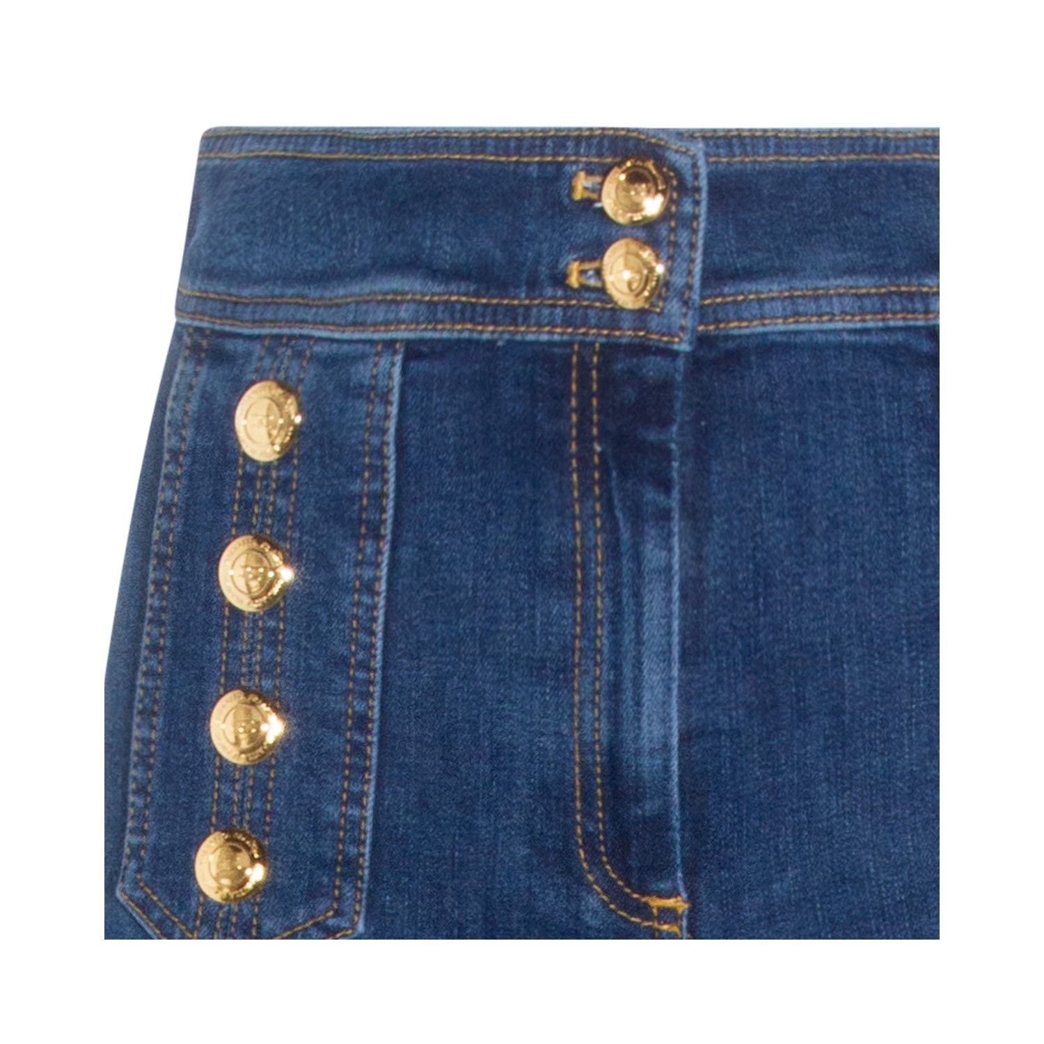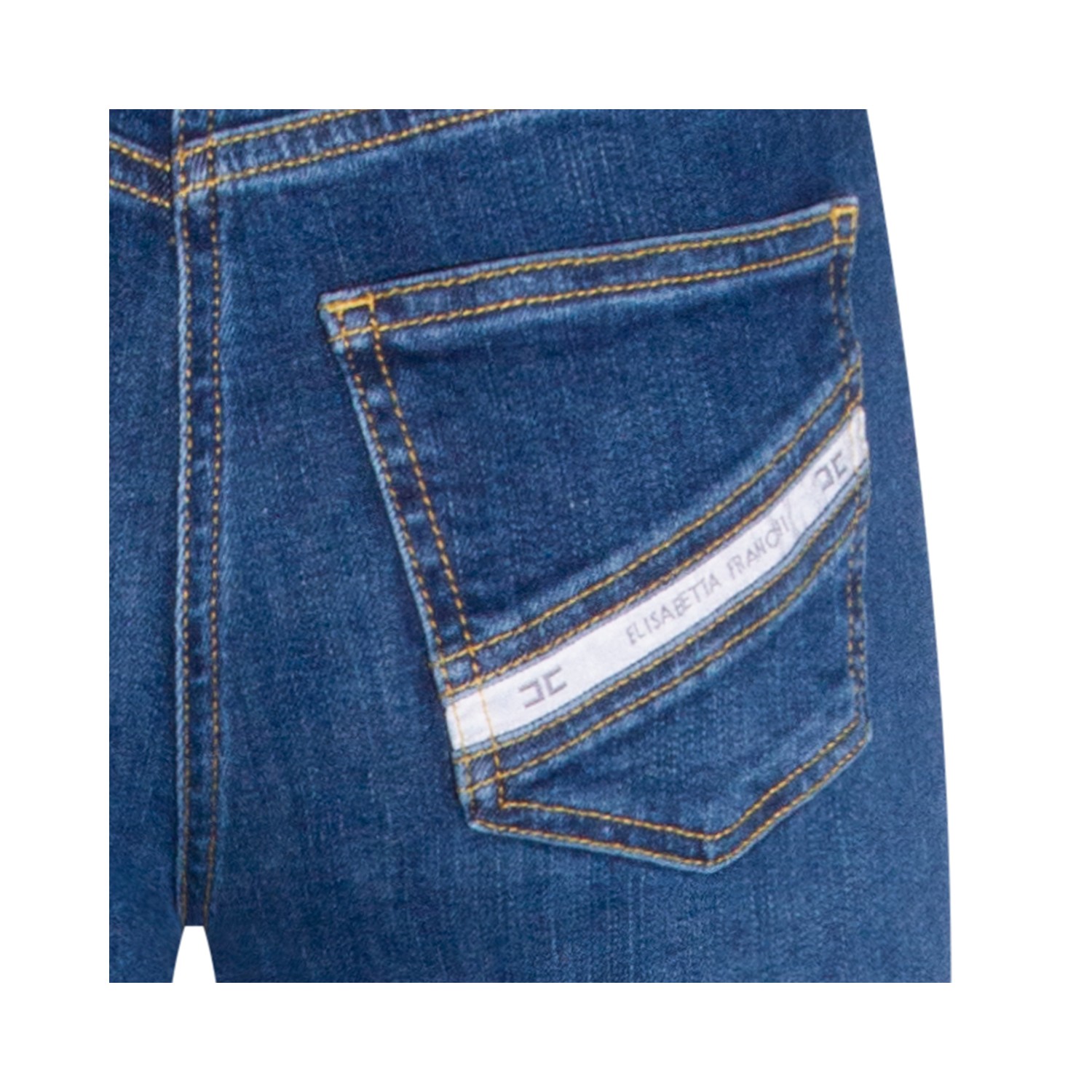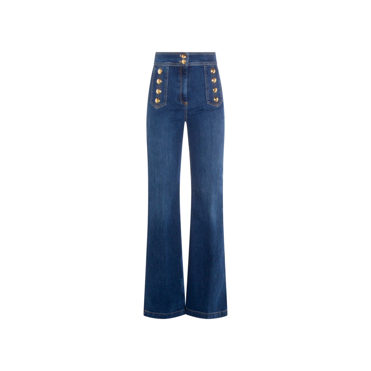 Blue cotton jeans from Elisabetta Franchi featuring high waist, button and zip fastening, pockets, buttons embellishments and wide leg.