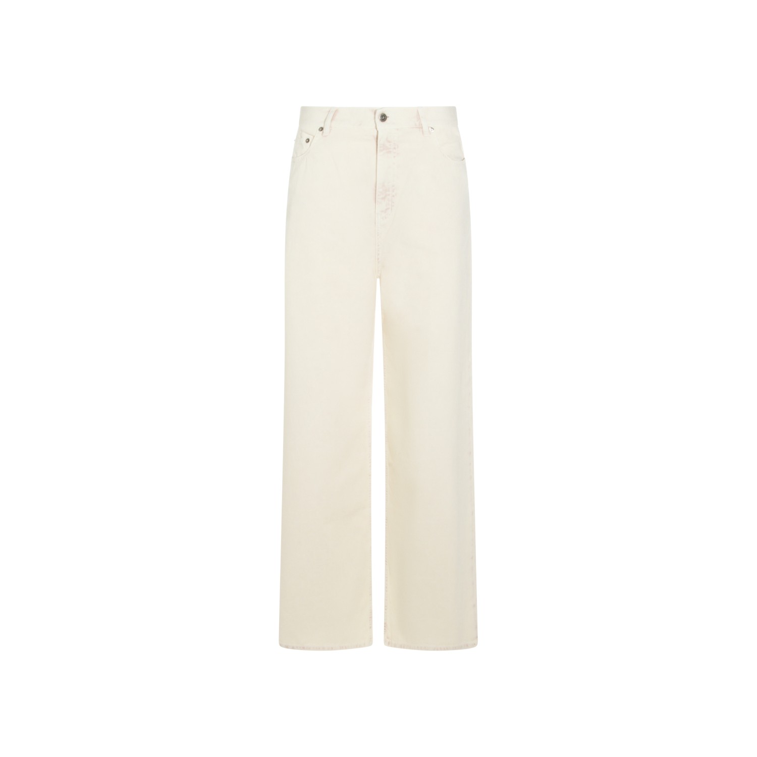 Light beige cotton jeans from Golden Goose featuring high waist, belt loops, zip and button fastening, pockets and wide leg.
