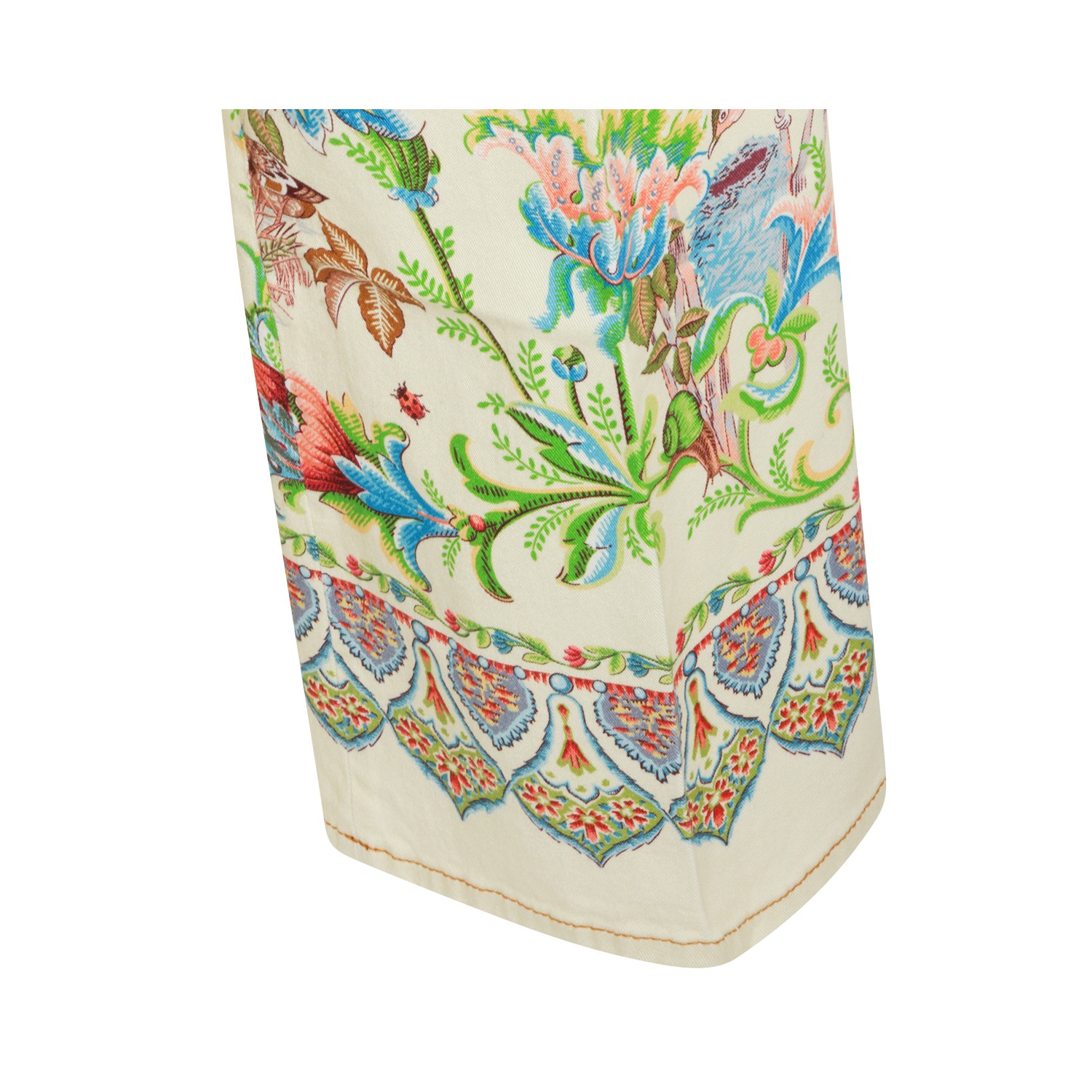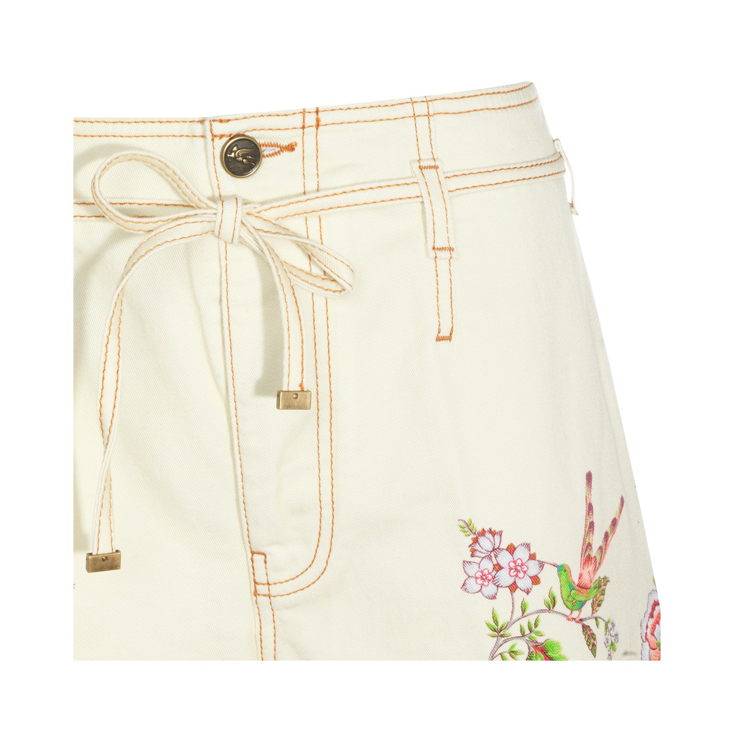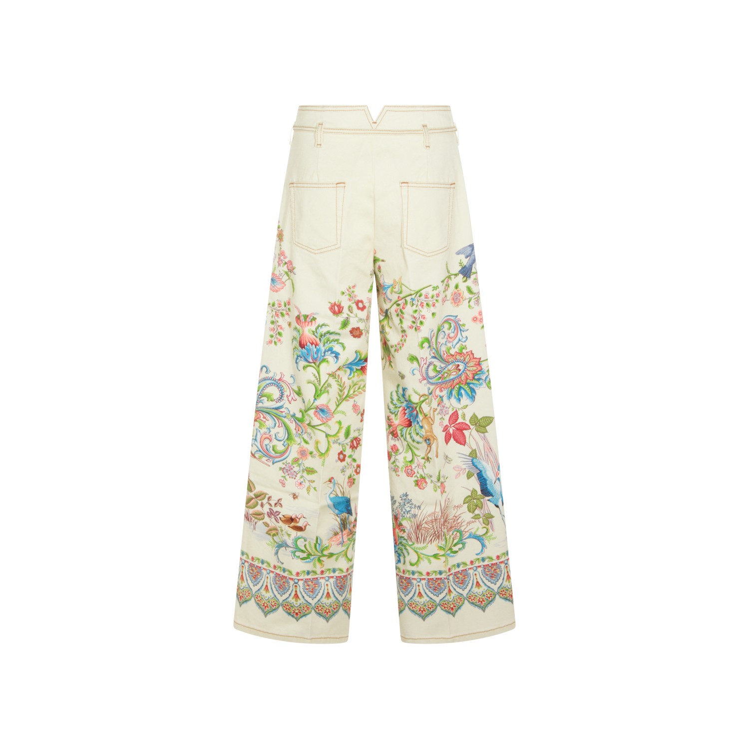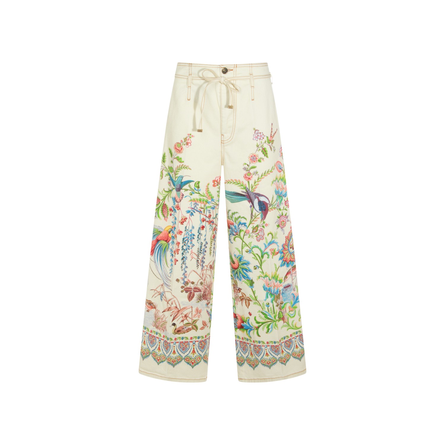 Multicolor cotton jeans from Etro featuring frontal fastening, belt loops, drawstring, print and wide leg.
