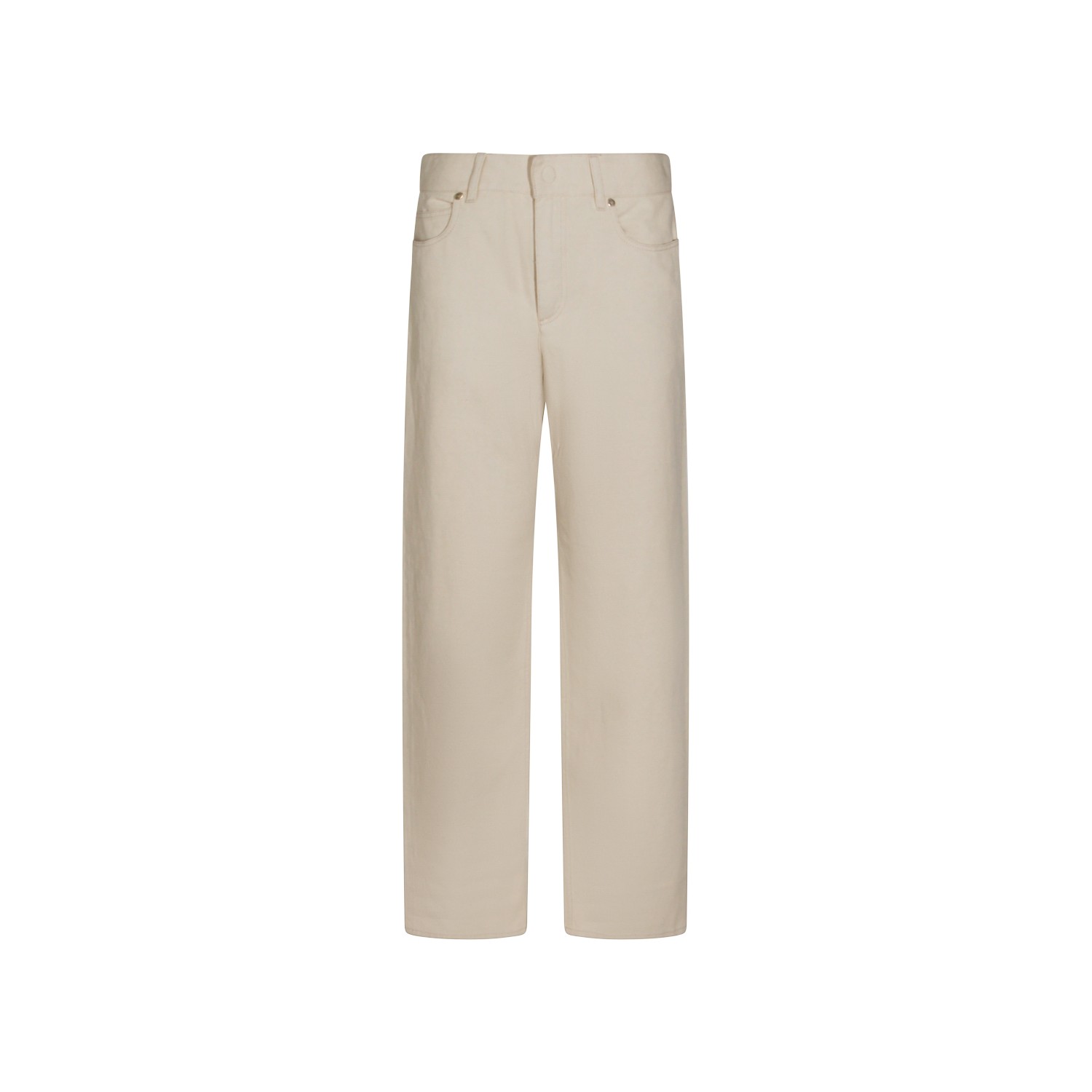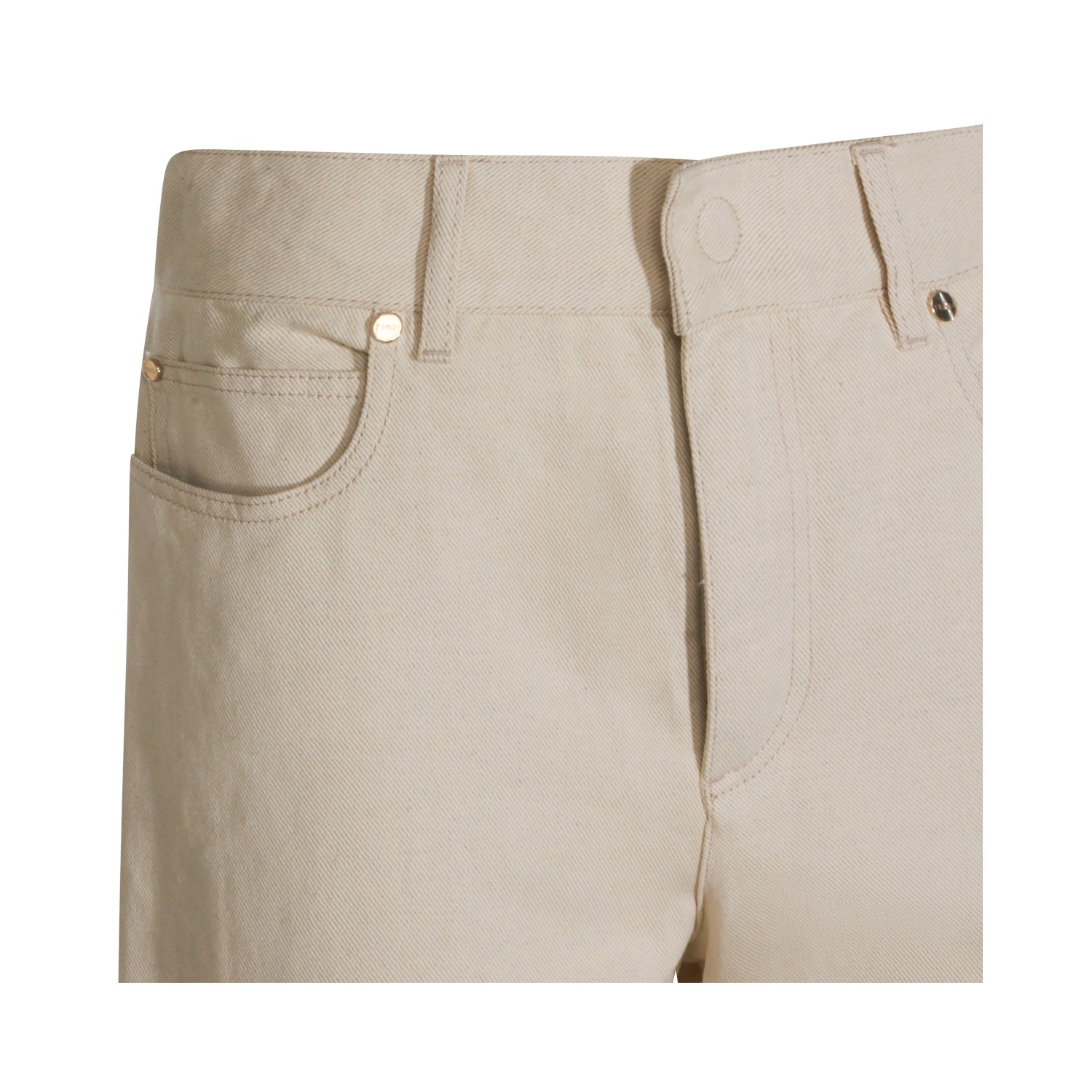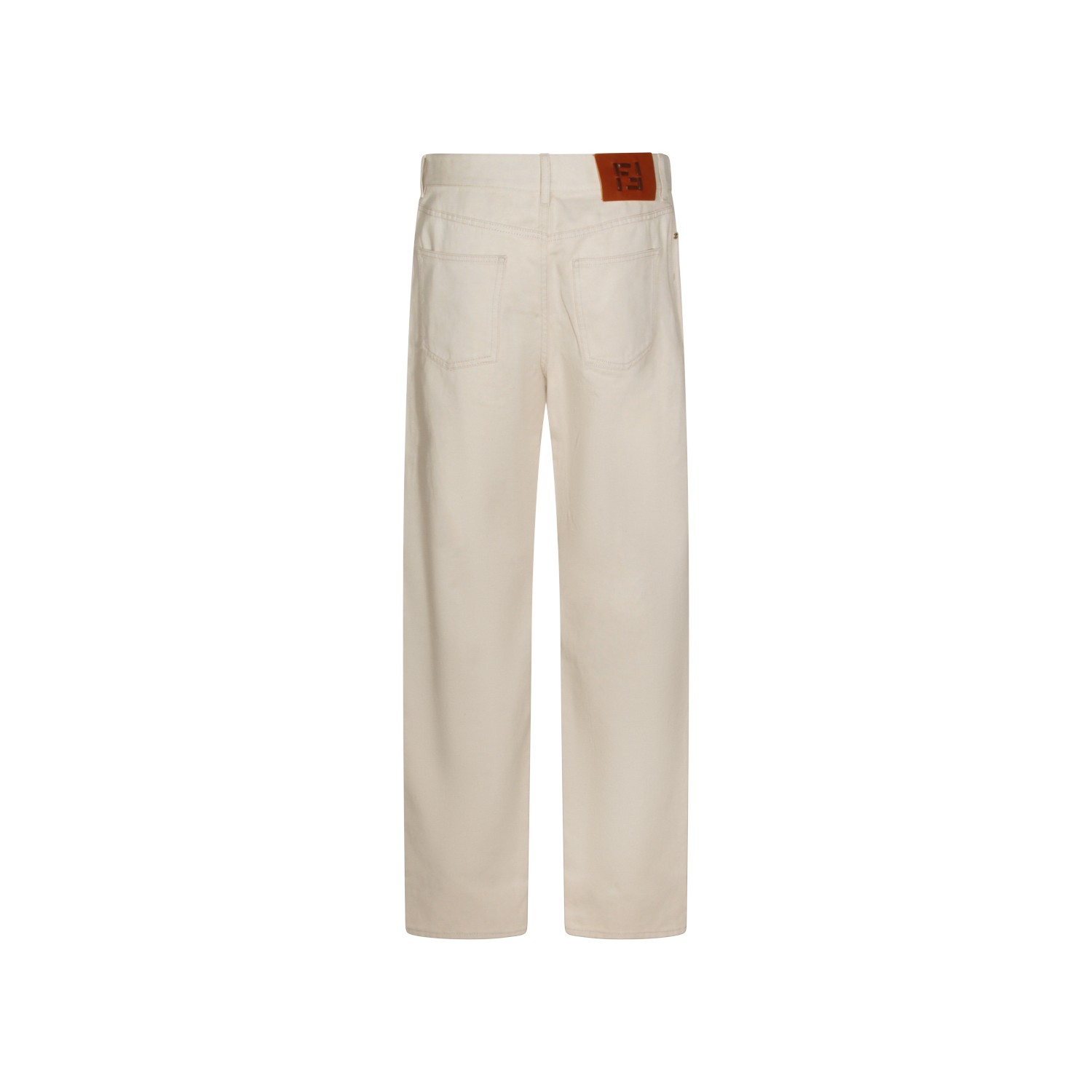 Beige denim jeans from Fendi featuring high waist, side pockets, belted waist, classic five pockets and wide leg.