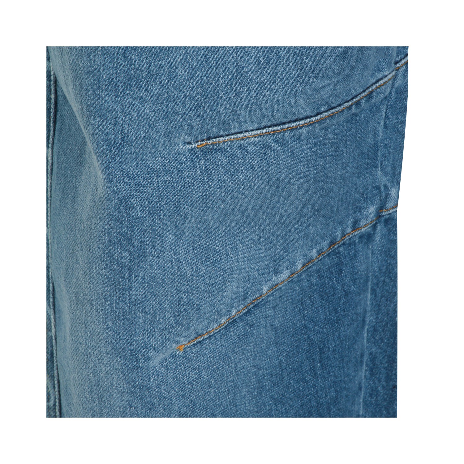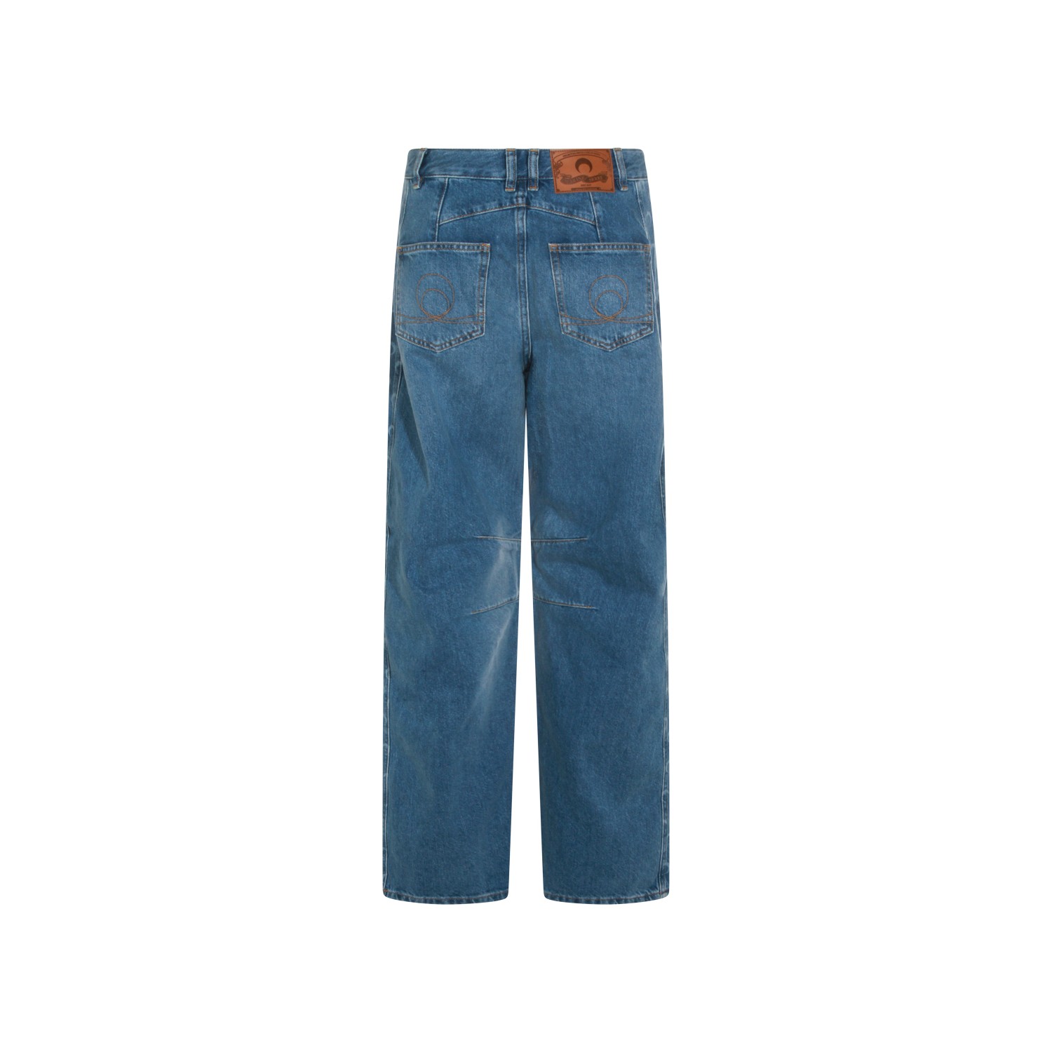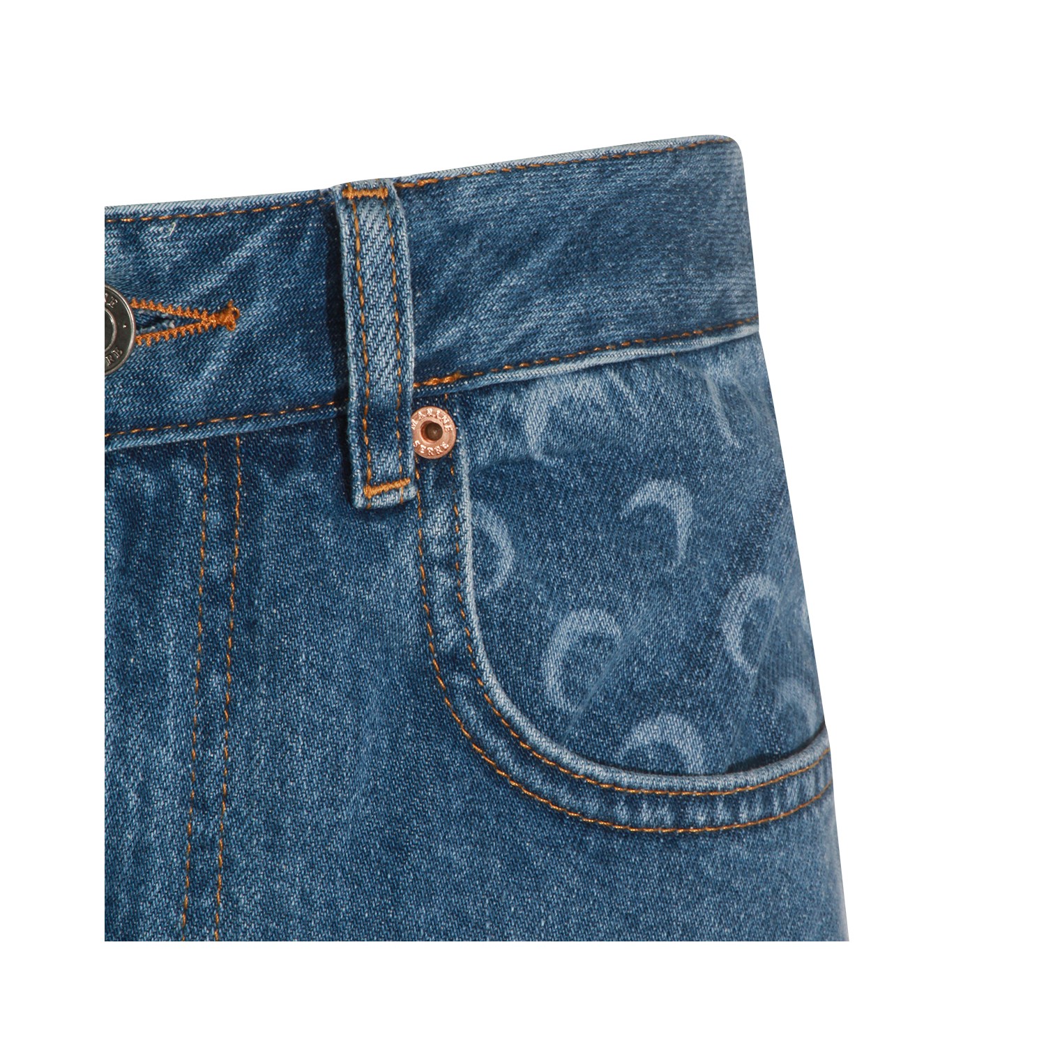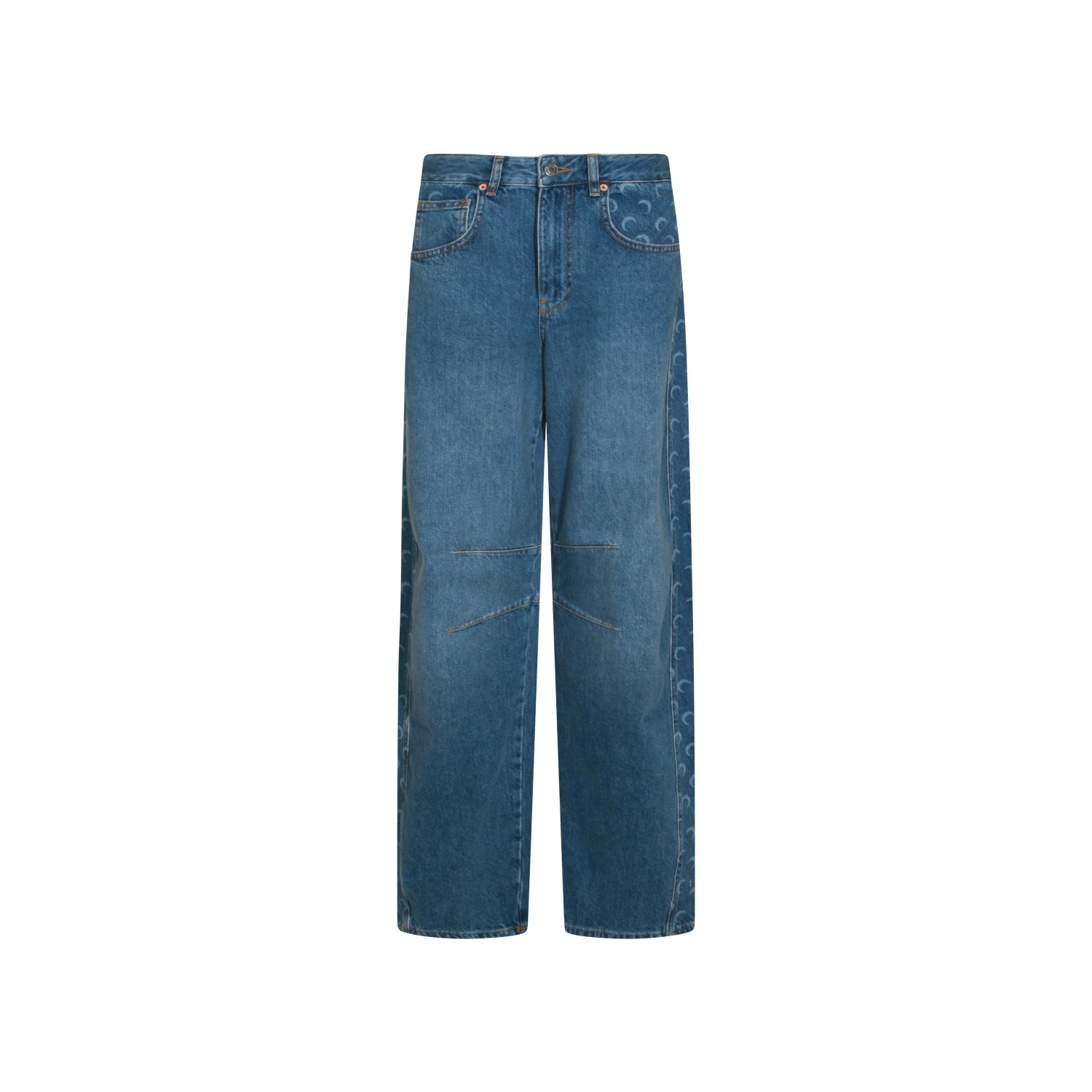 Light blue cotton jeans from Marine Serre featuring high waist, belt loops, zip and button fastening, classic five pockets, wide leg, moon pattern details and regular fit.
