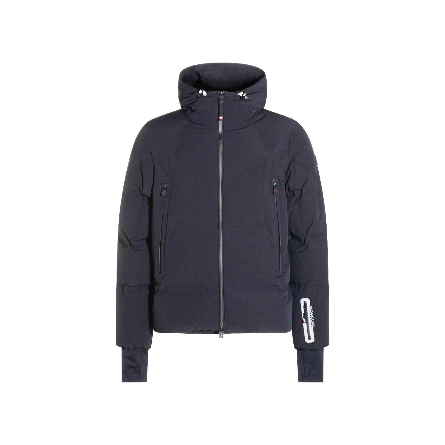 Black Angren down jacket from Moncler Grenoble featring high collar, hood, long sleeves, zip fastening, zip pockets, padded and regular vestibility.