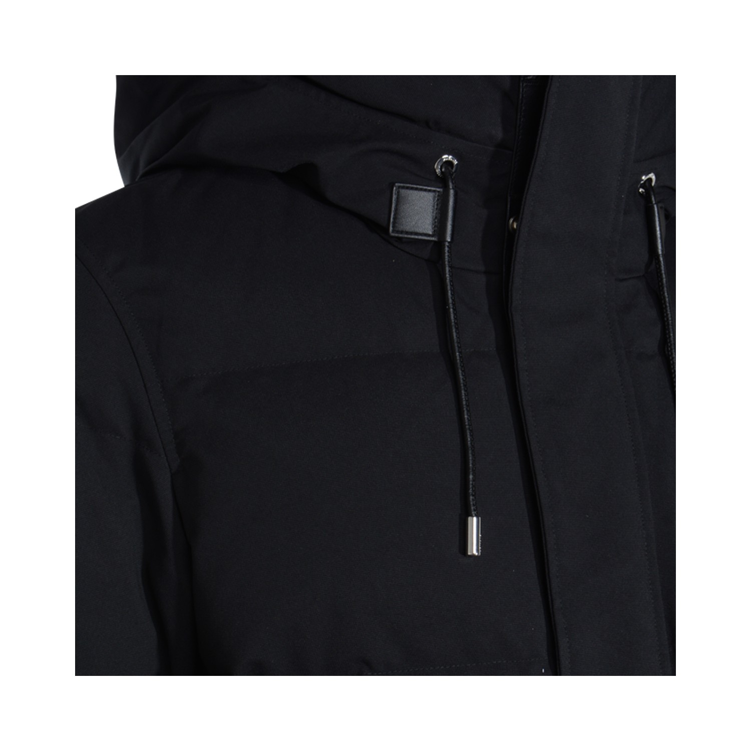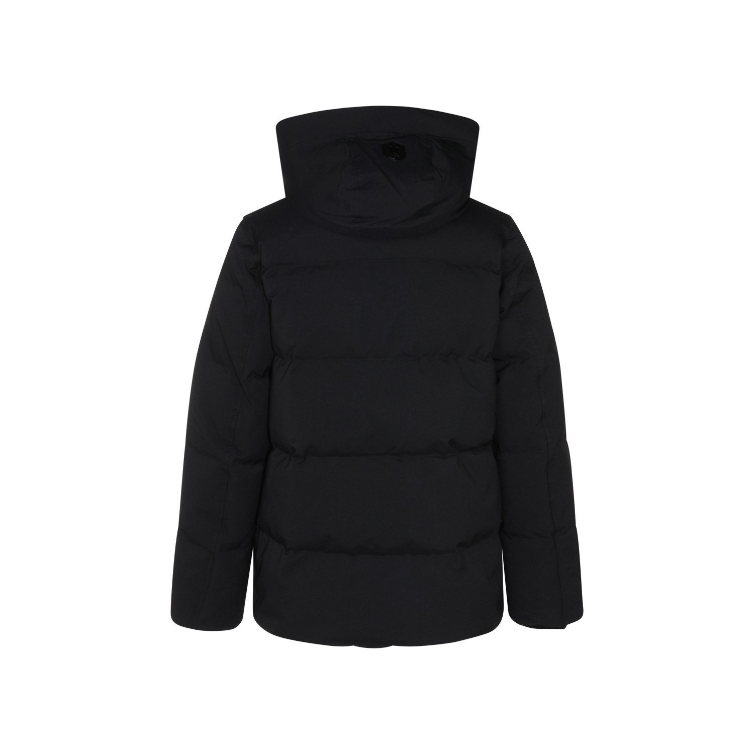 Black down jacket from Mackage featuring high collar, hood, long sleeves, padded, quilted, drawstrings, frontal fastening, pockets and regular vestibility.