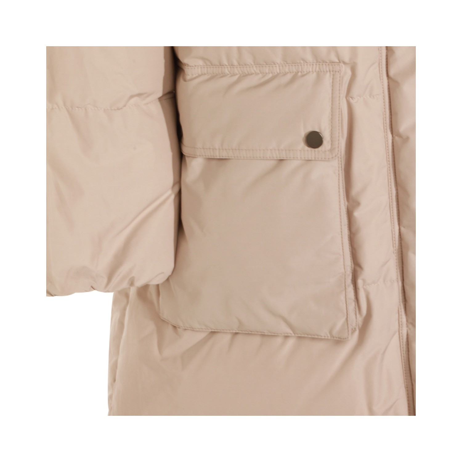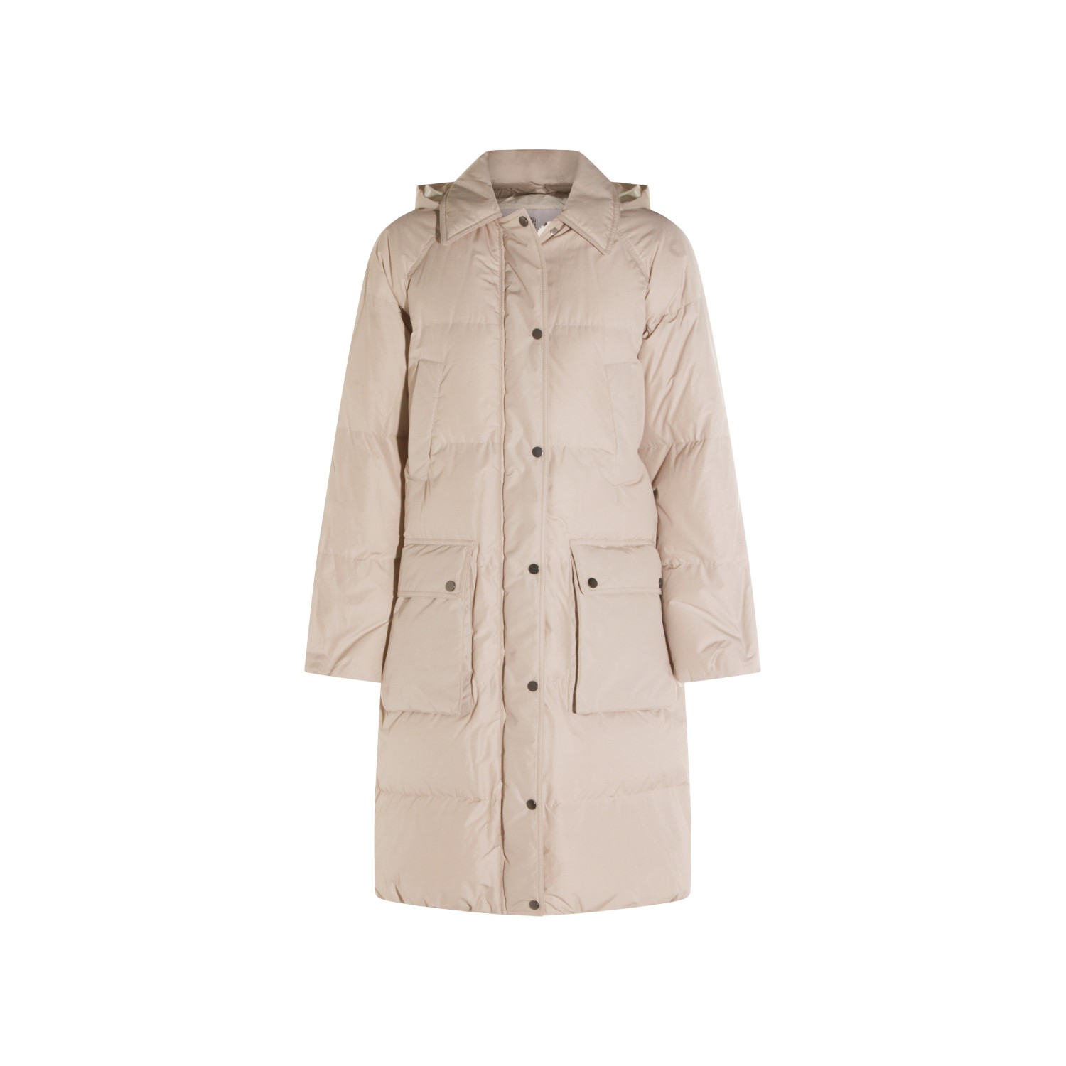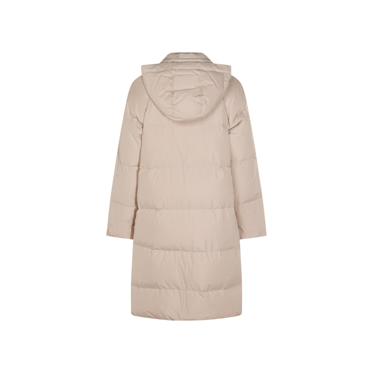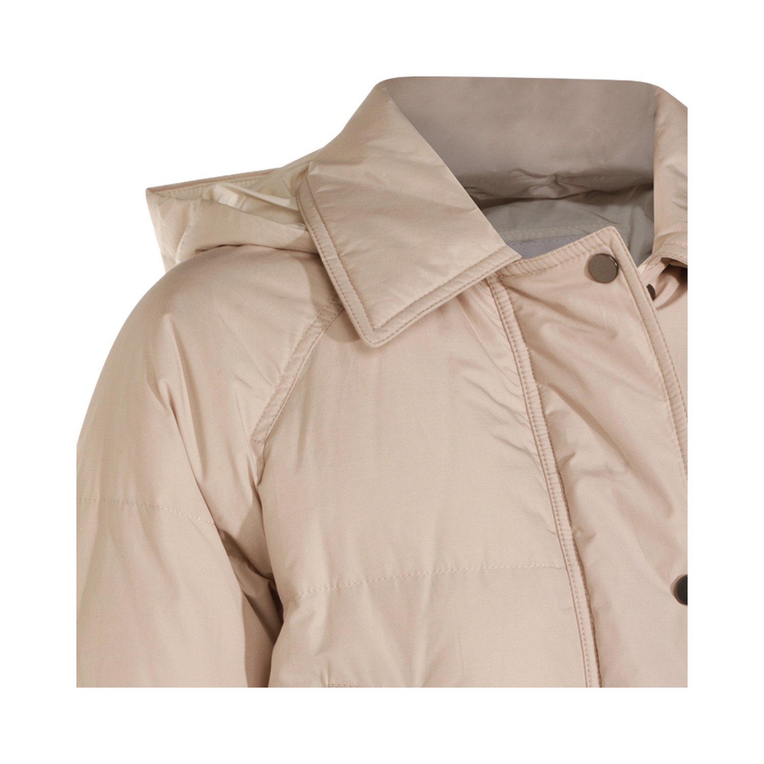 Beige down jacket from Brunello Cucinelli featuring classic collar, hood, long sleeves, padded, frontal fastening, pockets and regular vestibility.