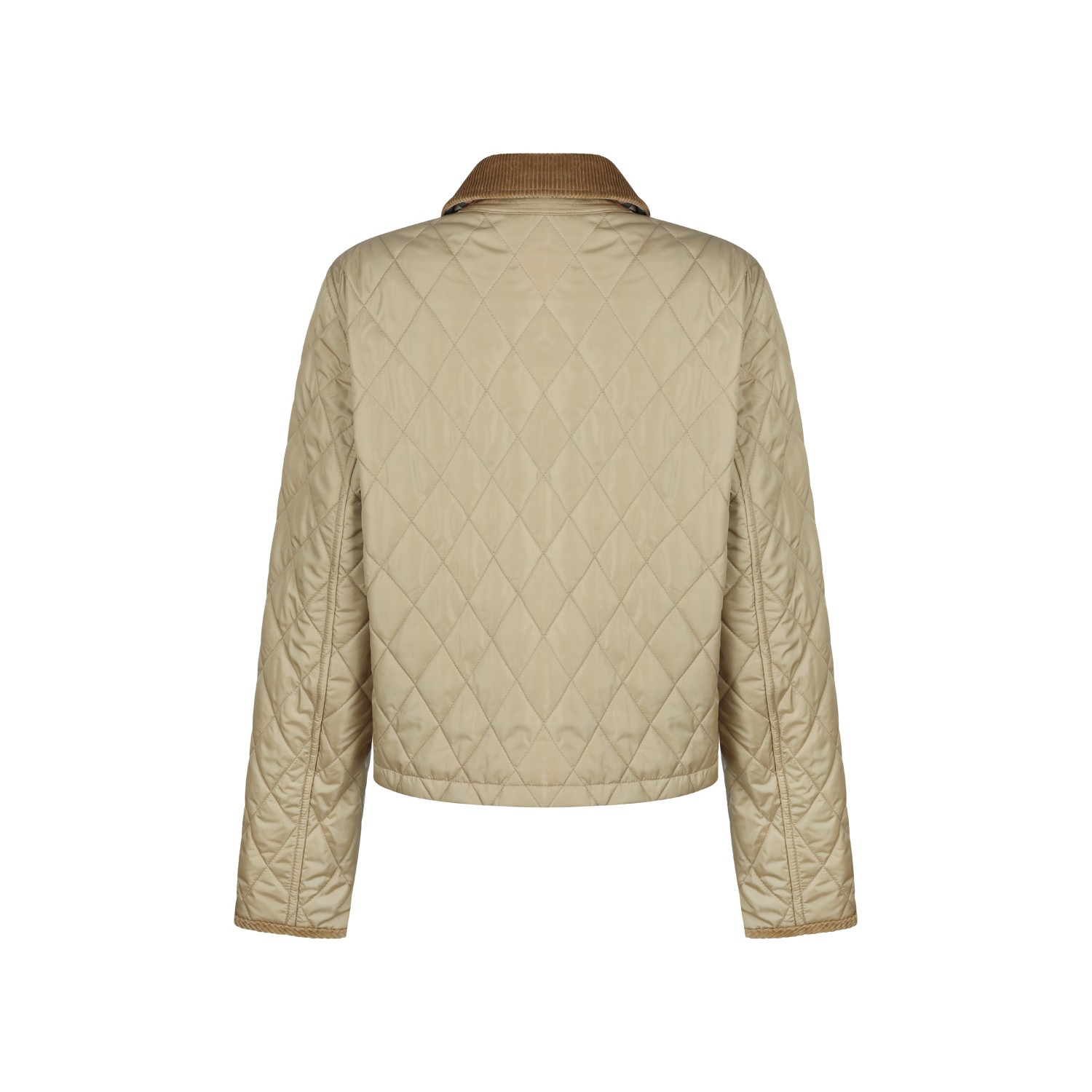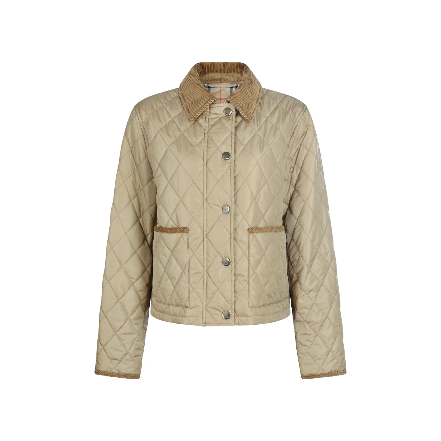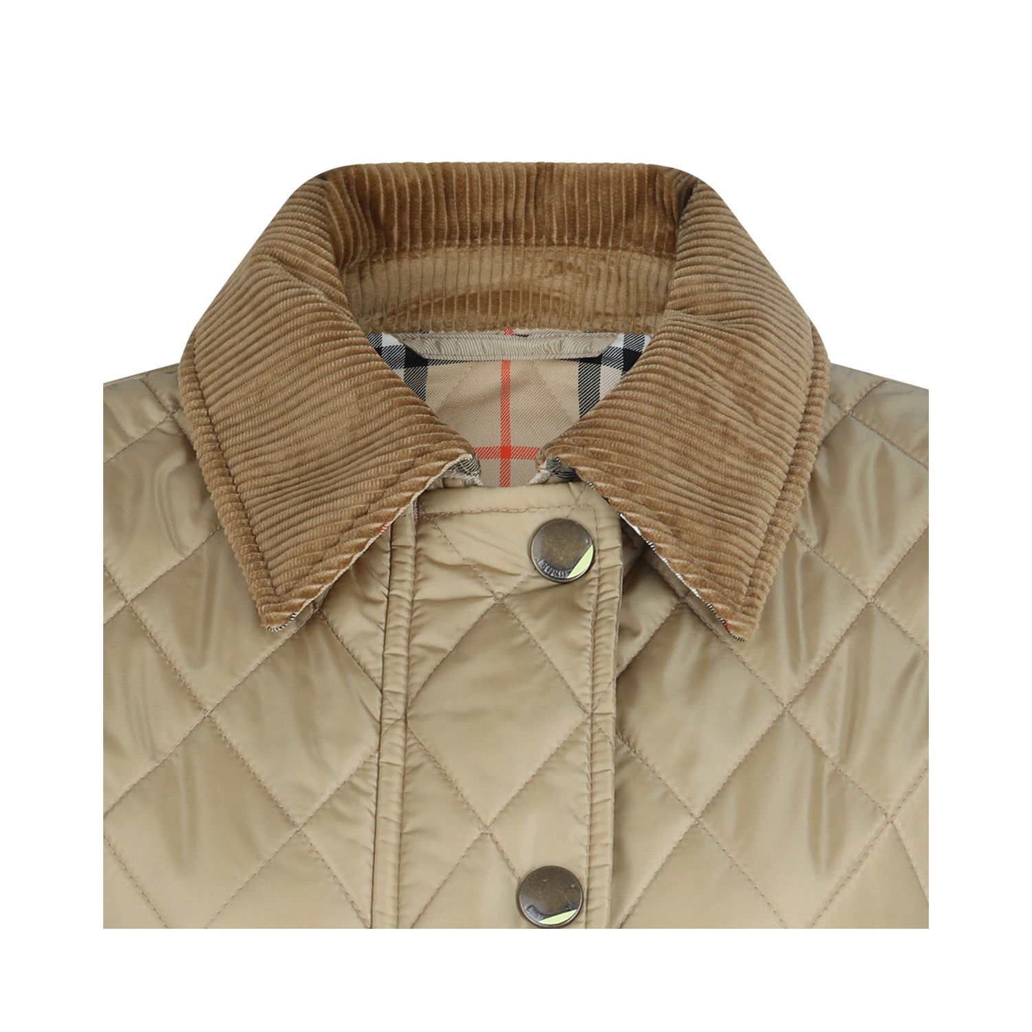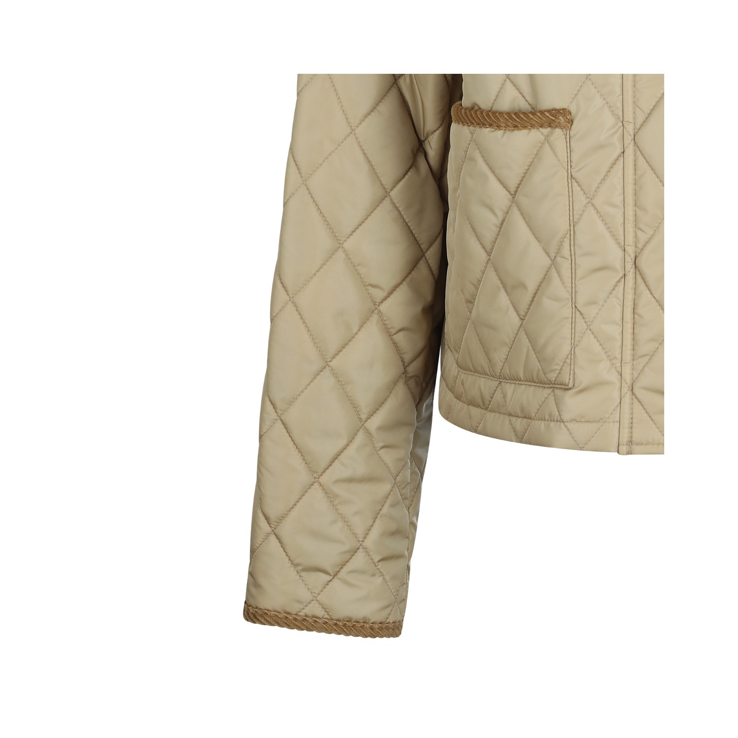 Beige down jacket from Burberry featuring regular neck, buttons fastening, long sleeves, pockets, padded and regular vestibility.
