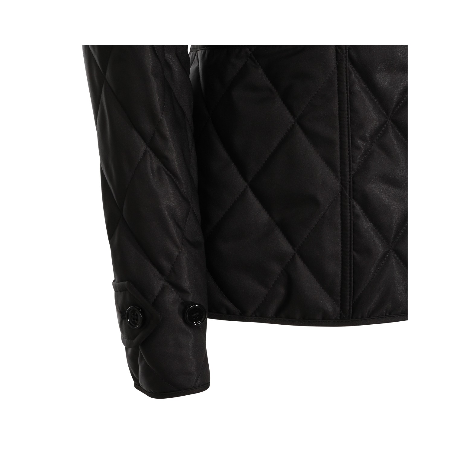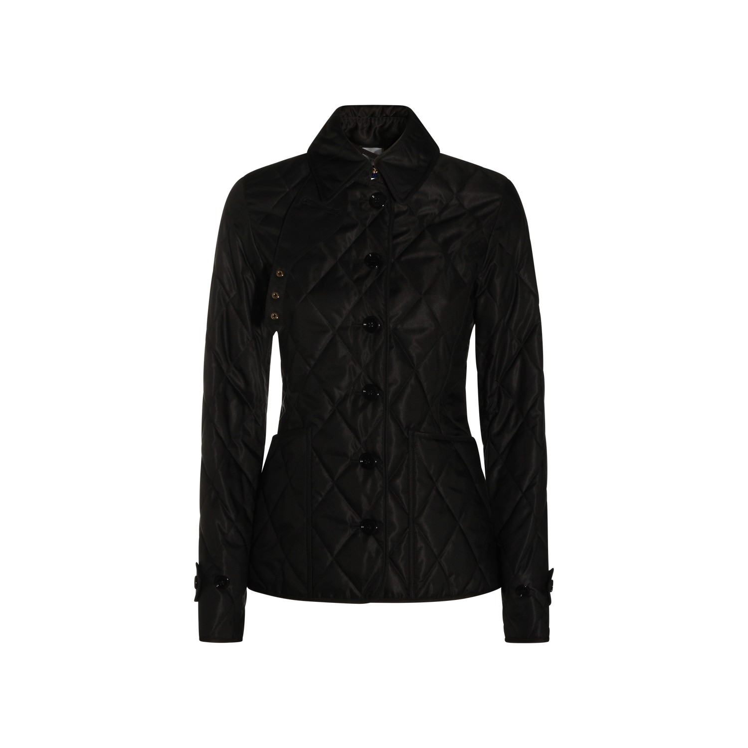 Black down jacket from Burberry featuring high collar, buttons fastening, long sleeves, pockets, padded and regular vestibility.