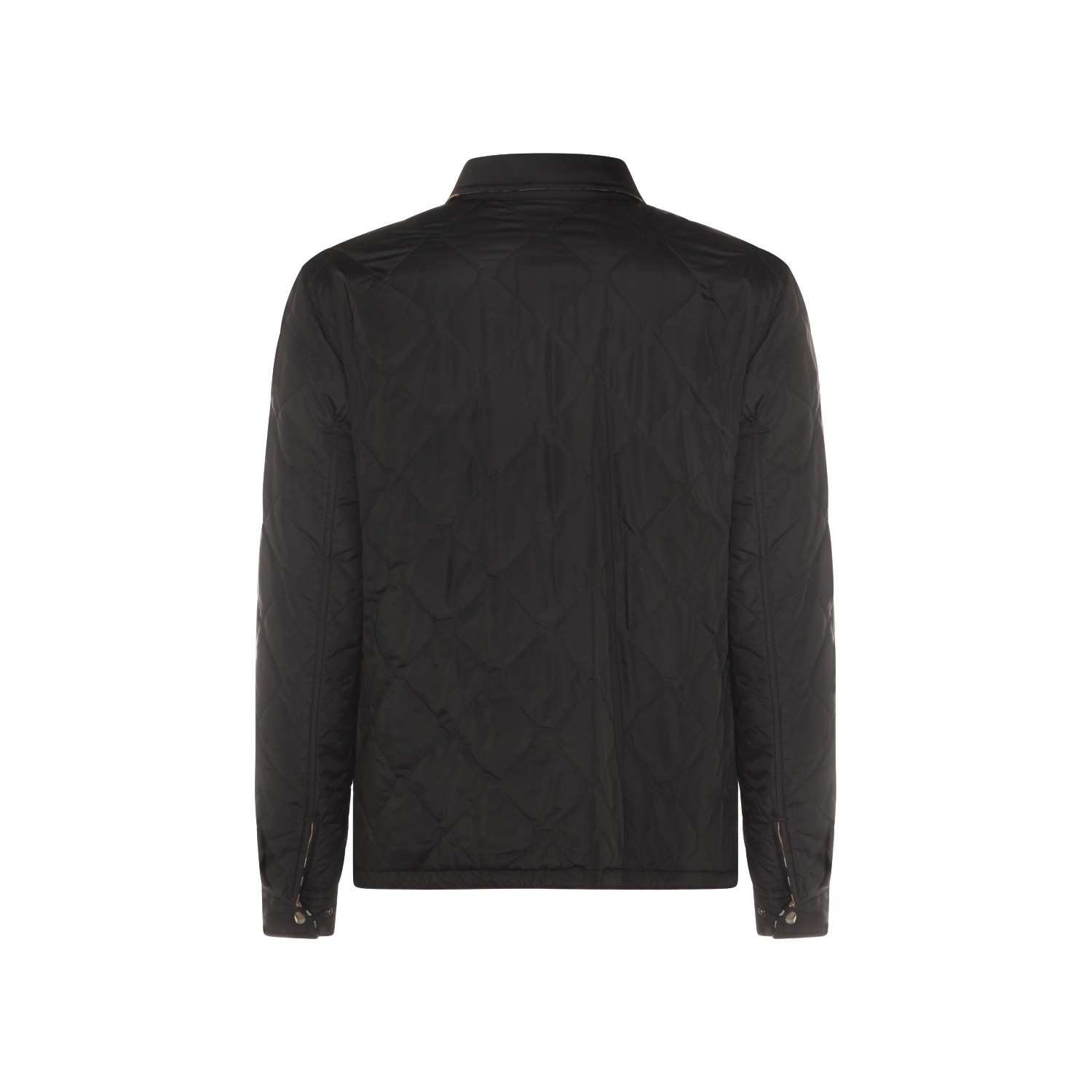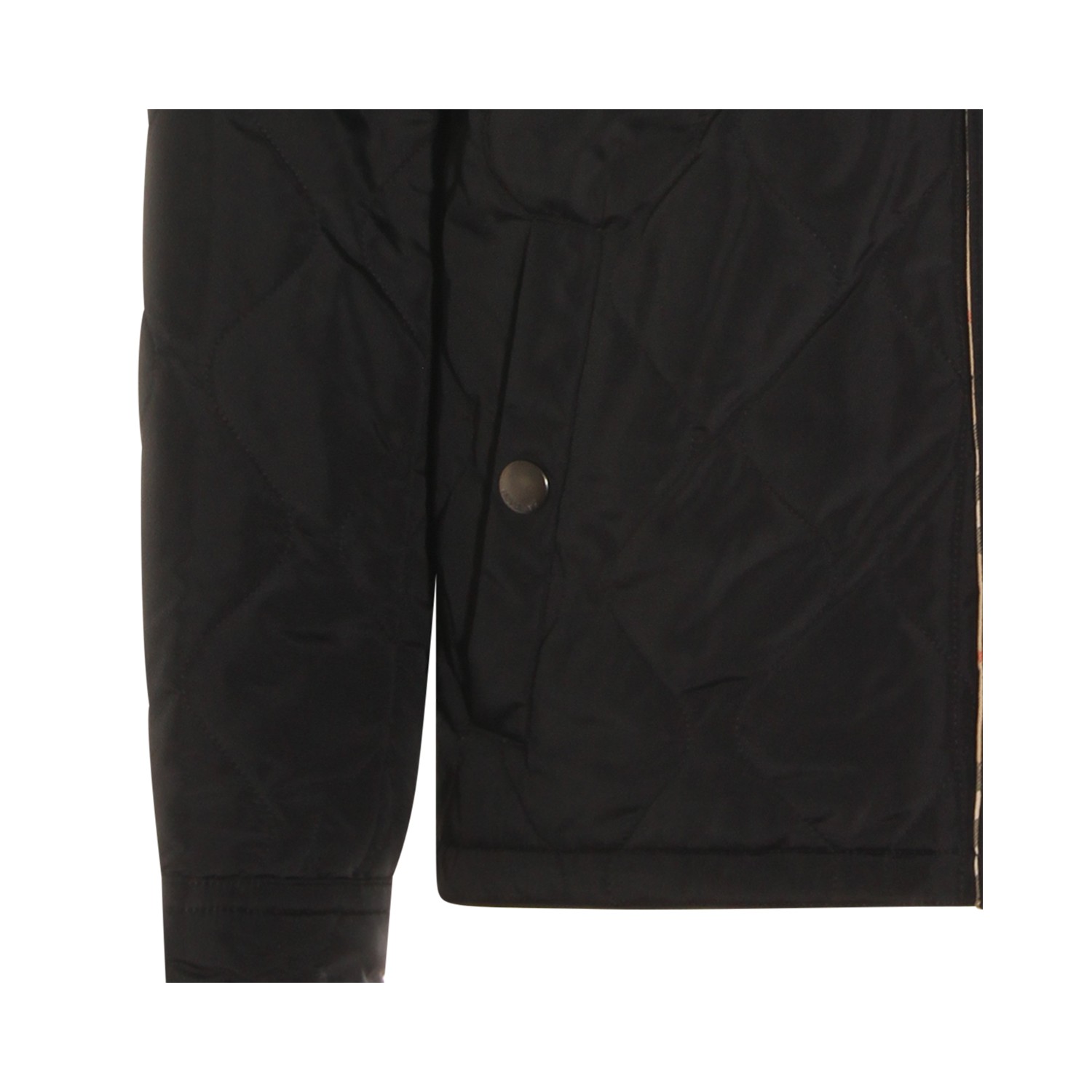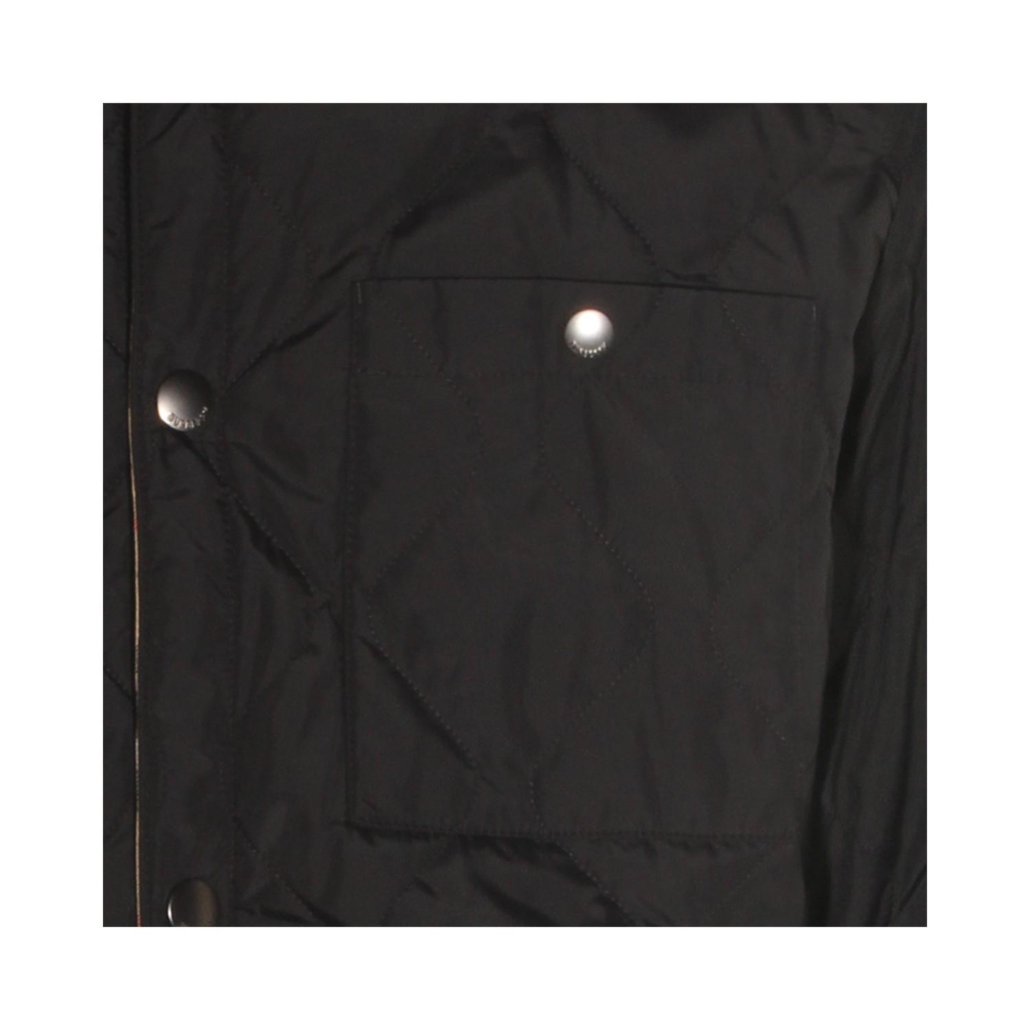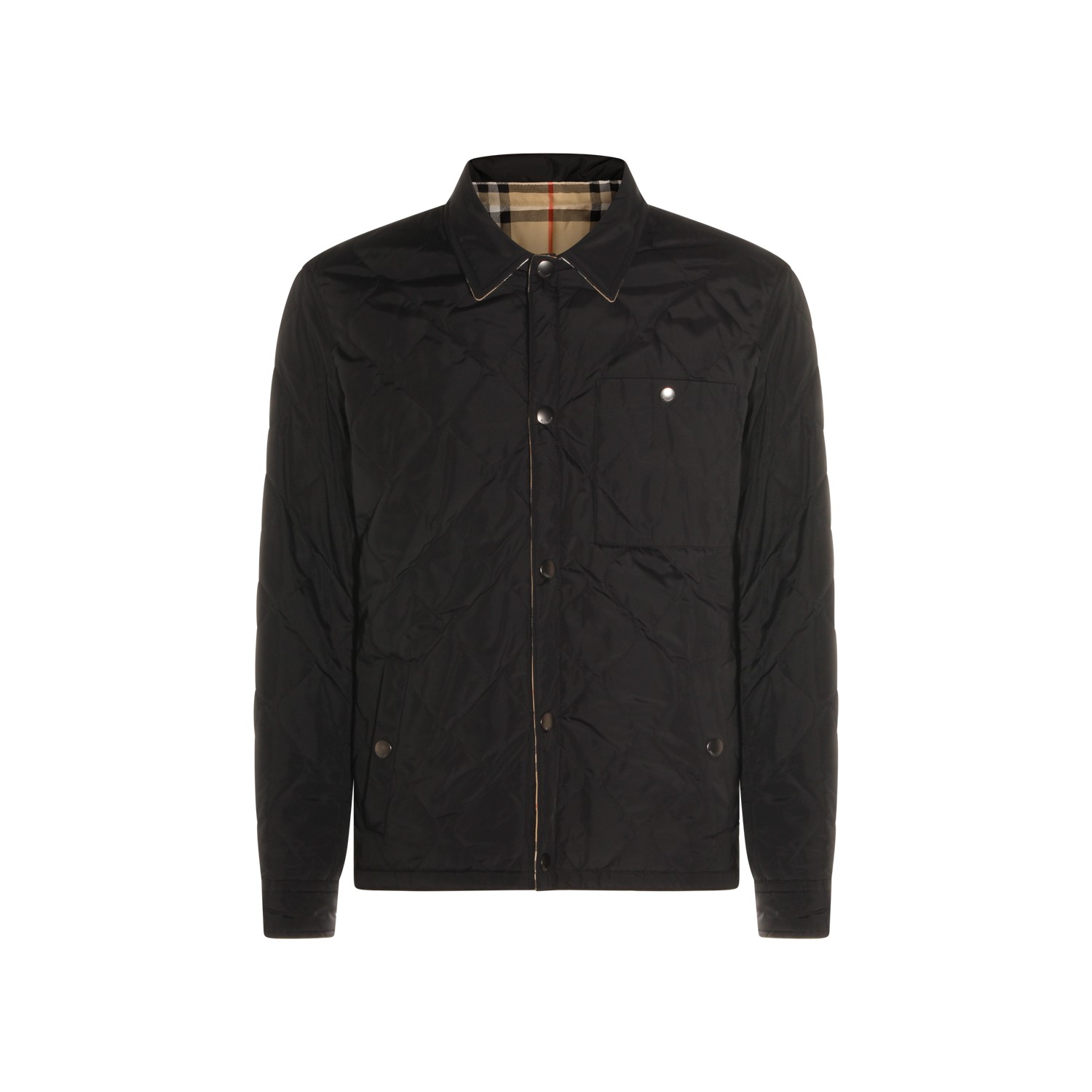 Black down jacket from Burberry featuring shirt collar, buttons fastening, long sleeves, pockets, internal iconic print and regular vestibility.