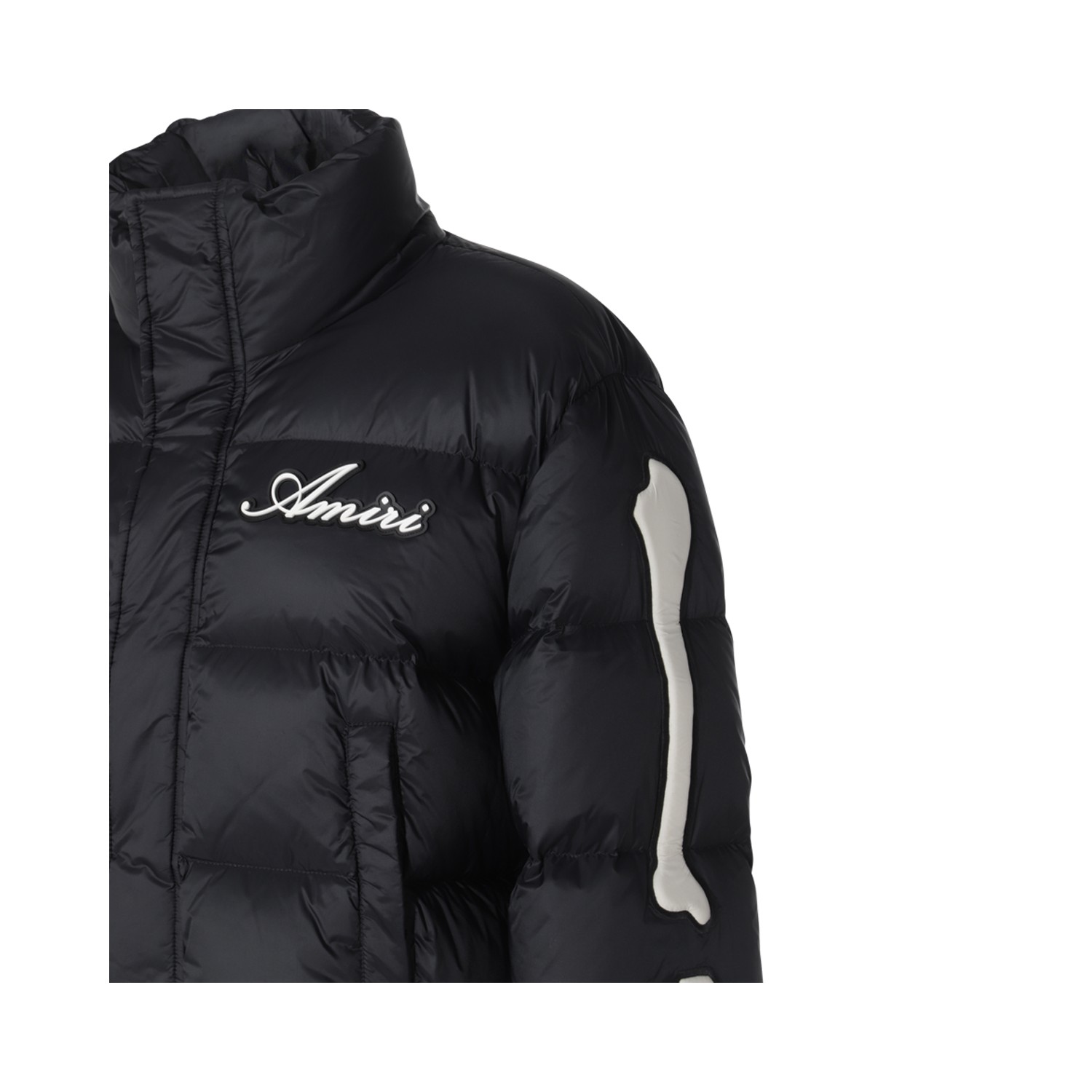 Black down jacket from Amiri featuring high collar, long sleeves, logo and regular vestibility.