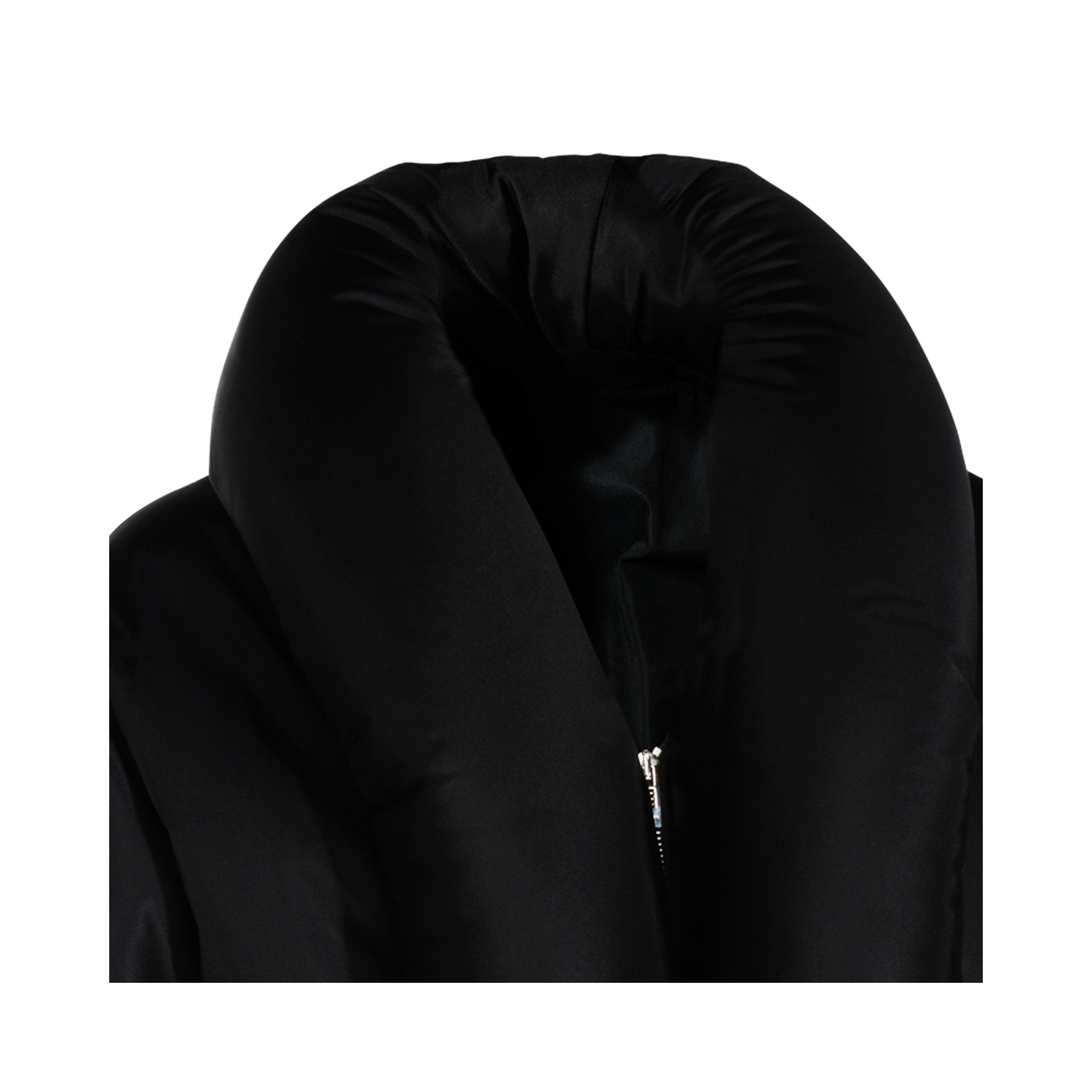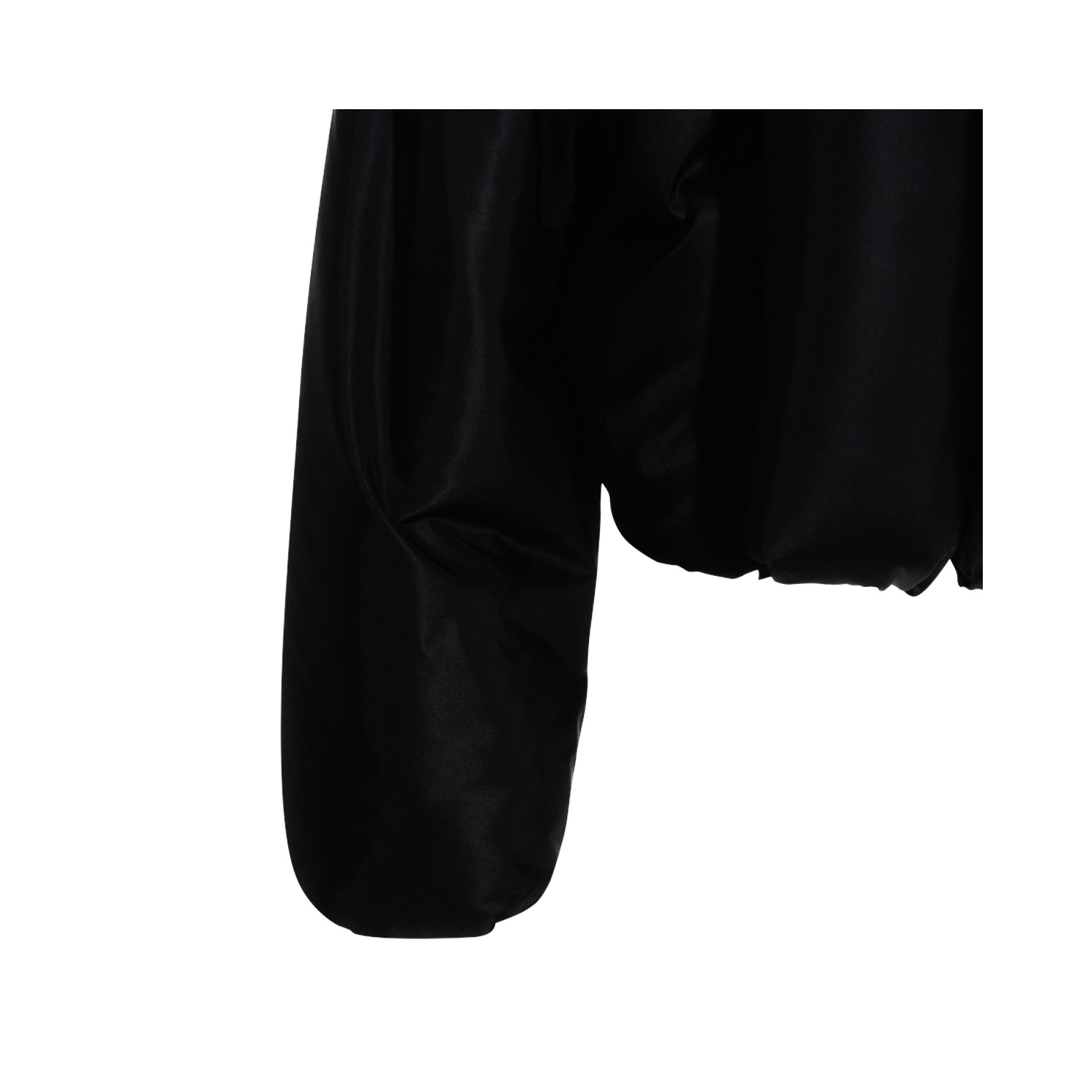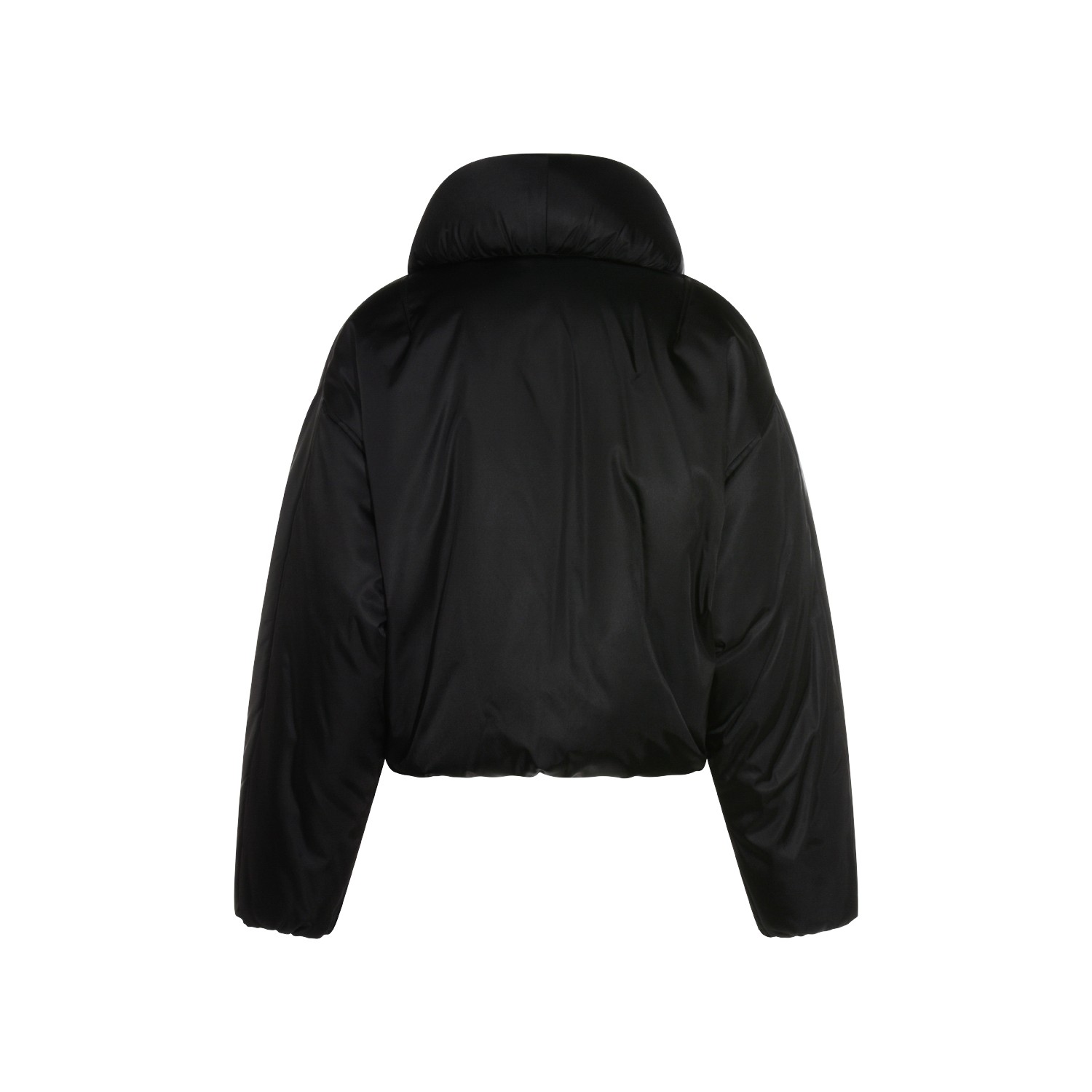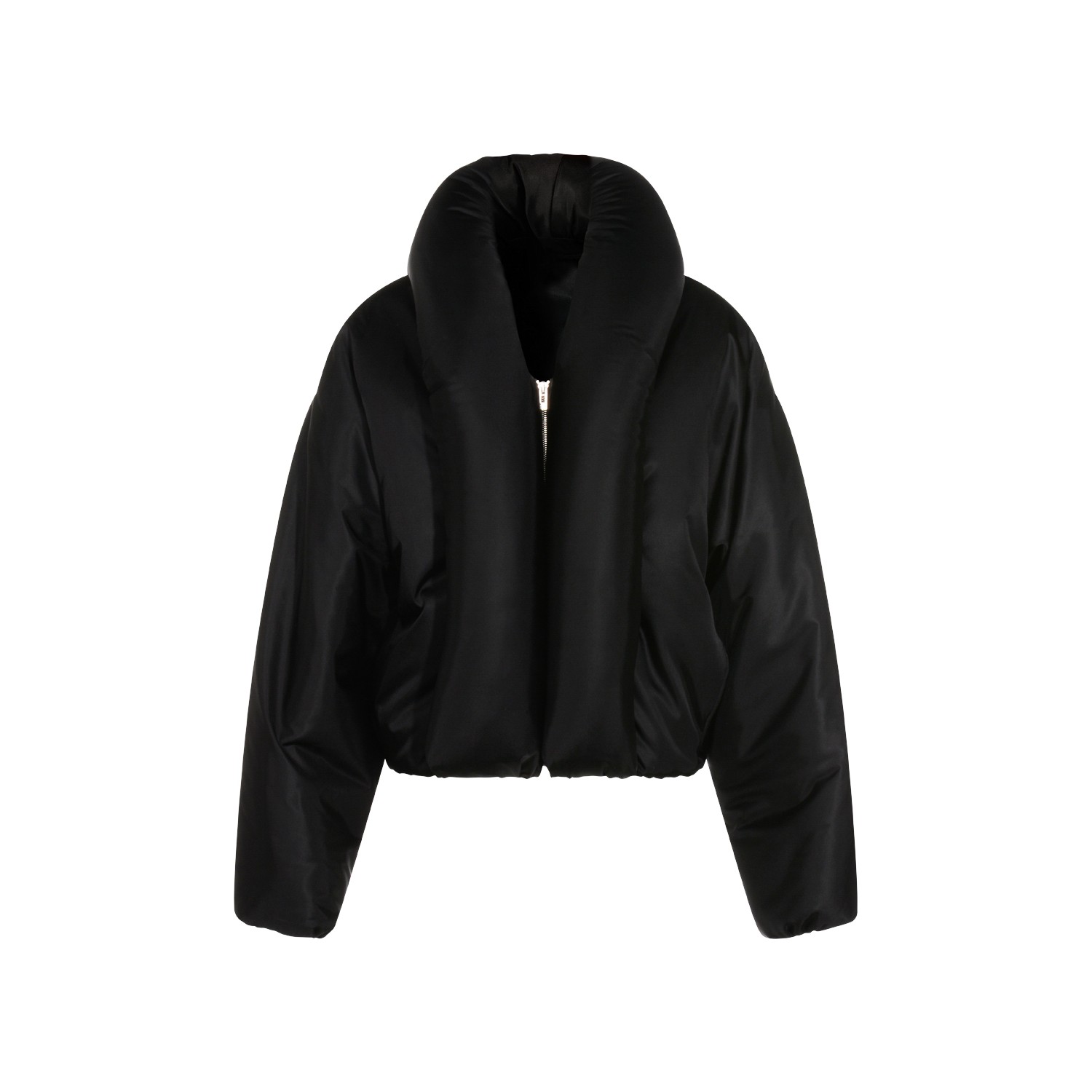 Black down jacket from Alaia featuring lapel padded collar, long sleeves, zip fastening, padded, side pockets and gathered hem.