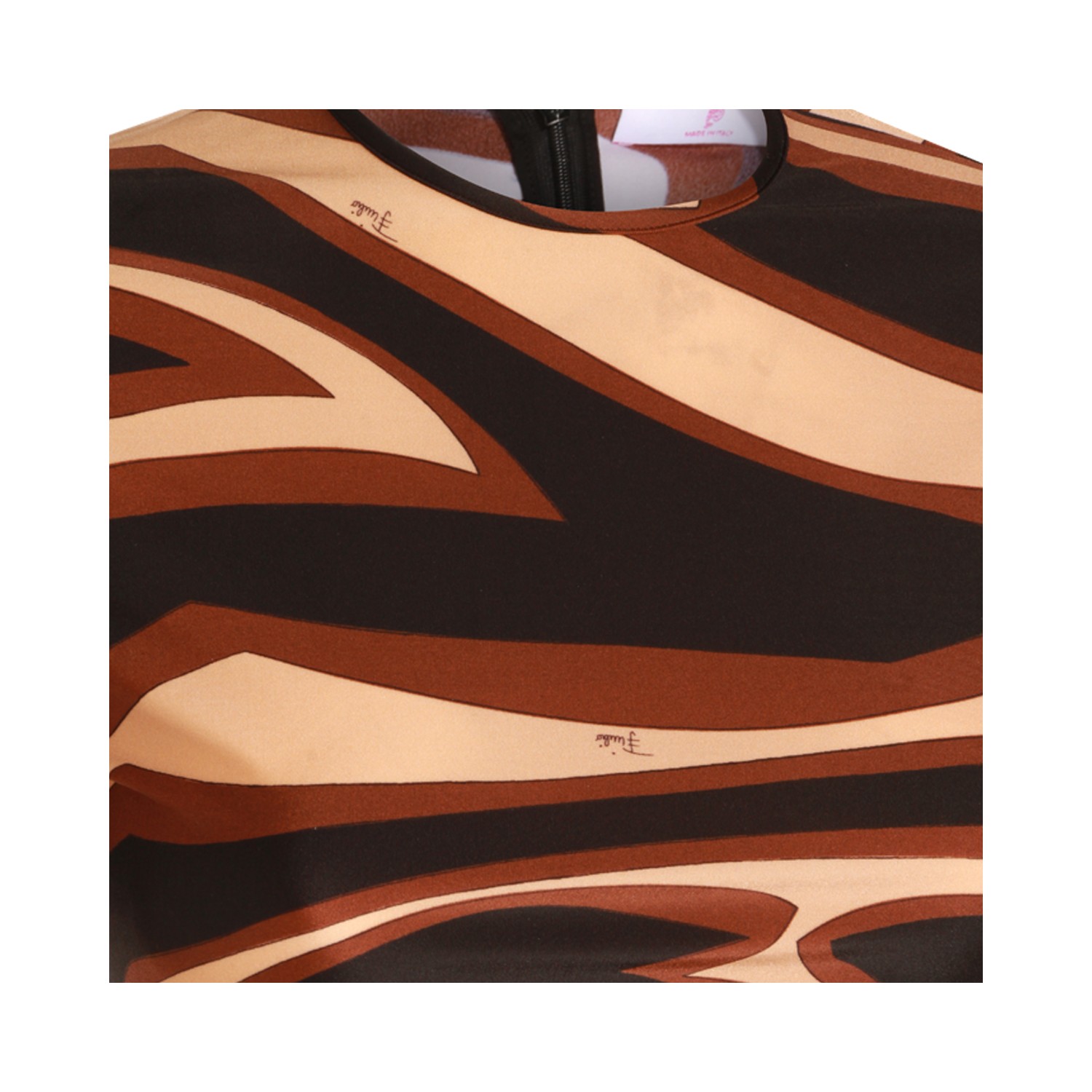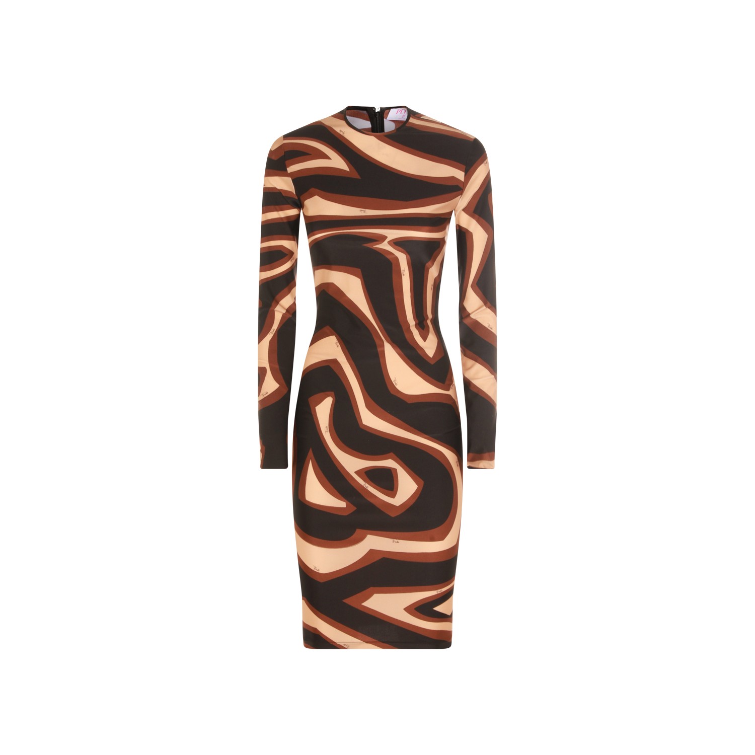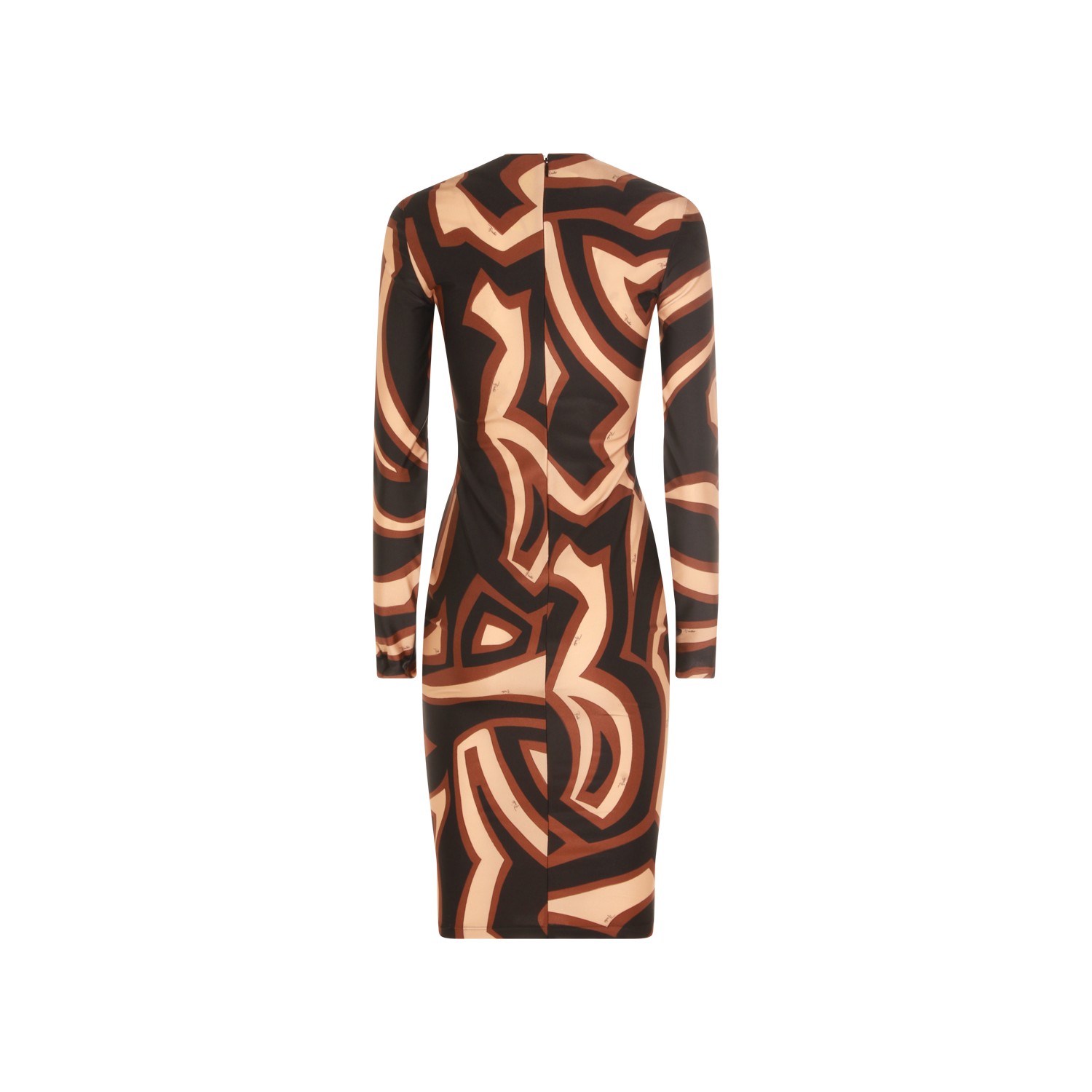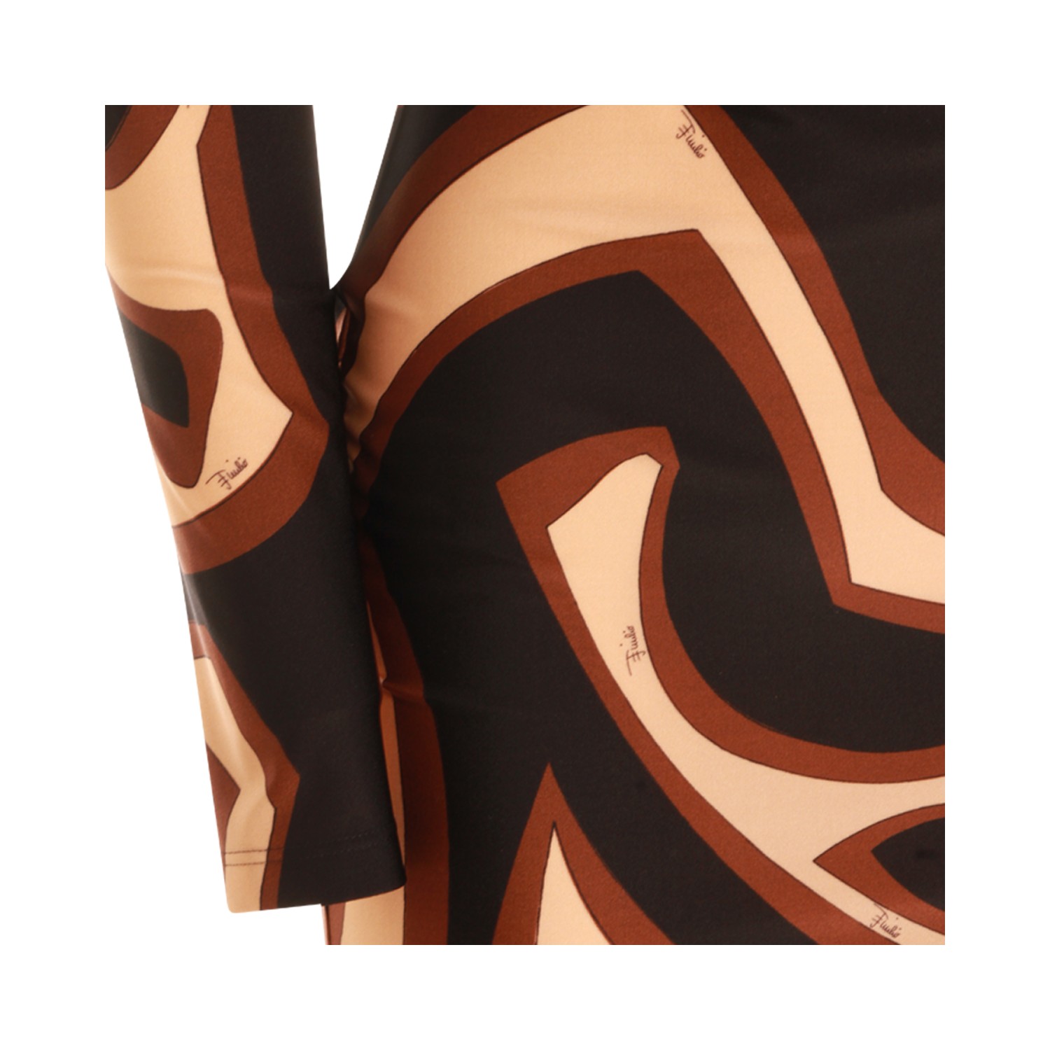 Black and gold viscose dress from Emilio Pucci featuring round collar, long sleeves, back zip fastening and midi lenght.