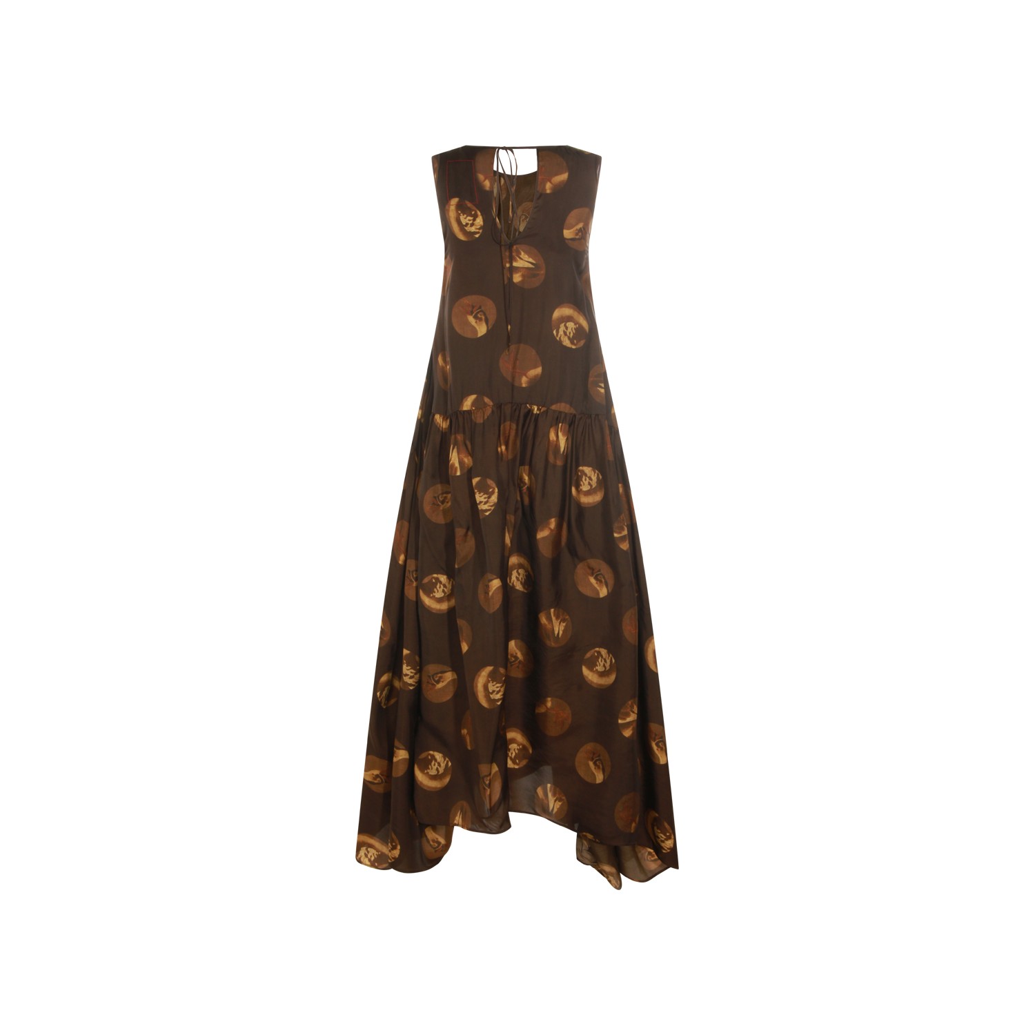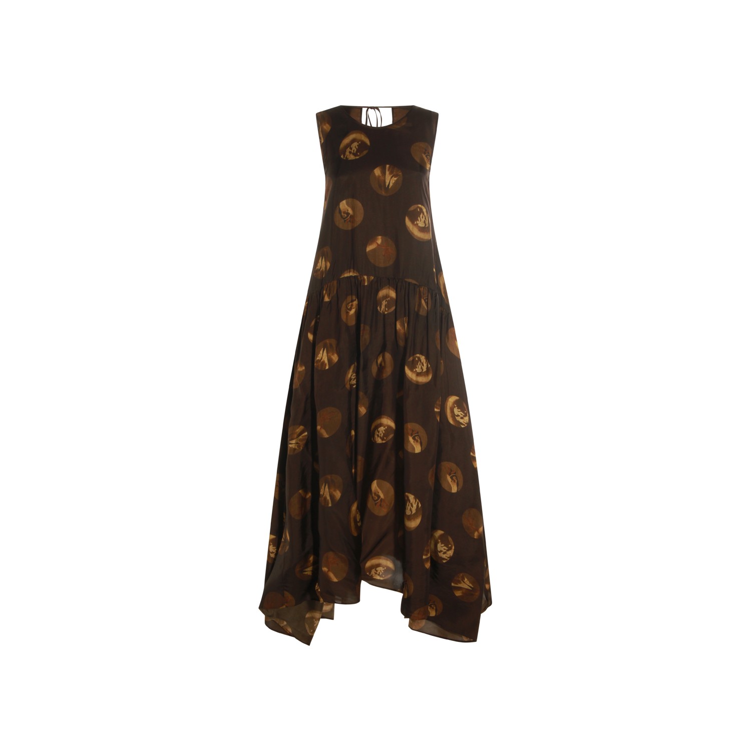 Black viscose dress from Uma Wang featuring round collar, sleeveless, back fastening and long lenght.