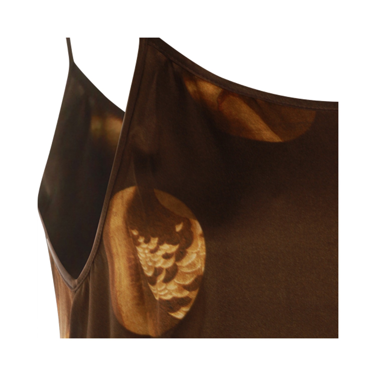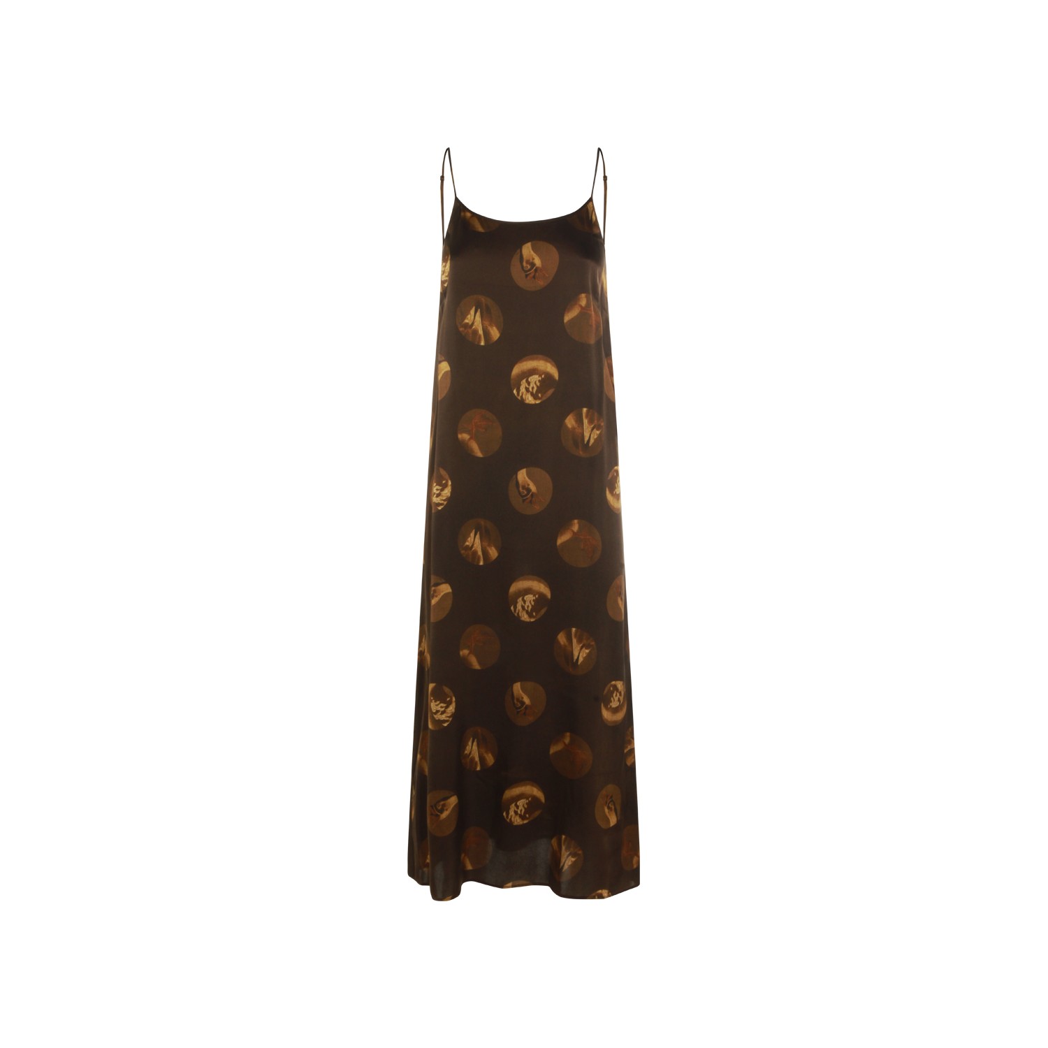 Brown viscose dress from Uma Wang featuring round collar, sleeveless, thin straps and long lenght.