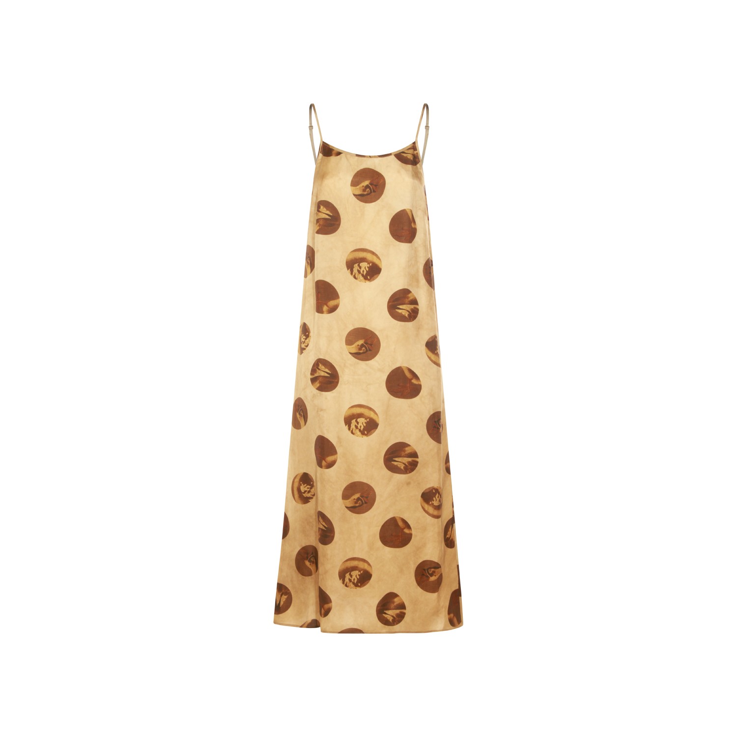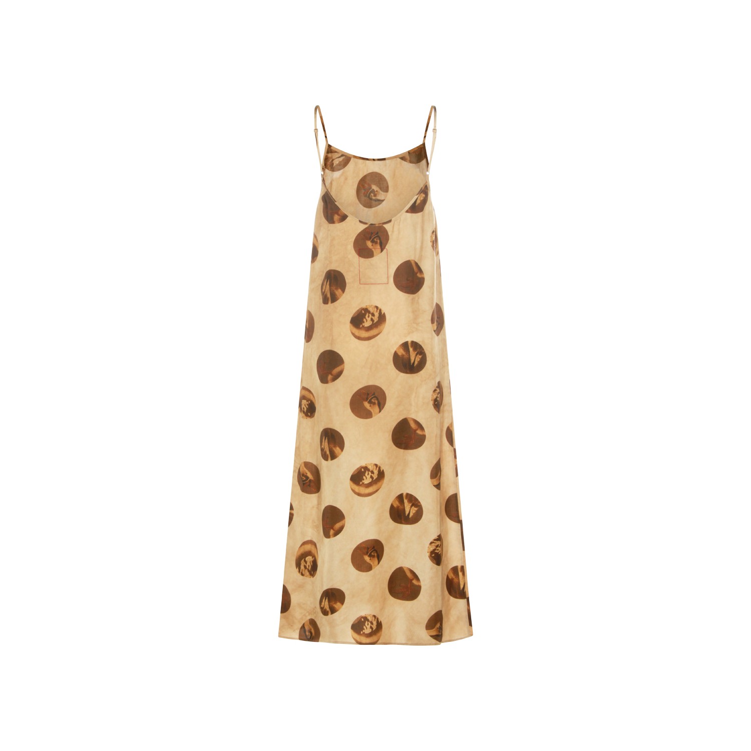 Beige viscose dress from Uma Wang featuring round collar, sleeveless, thin straps and long lenght.