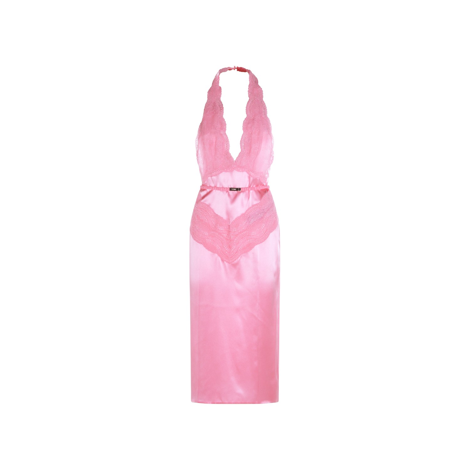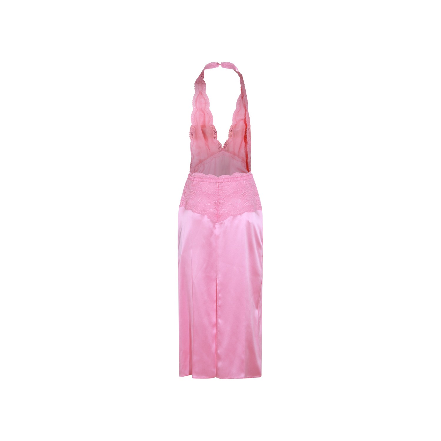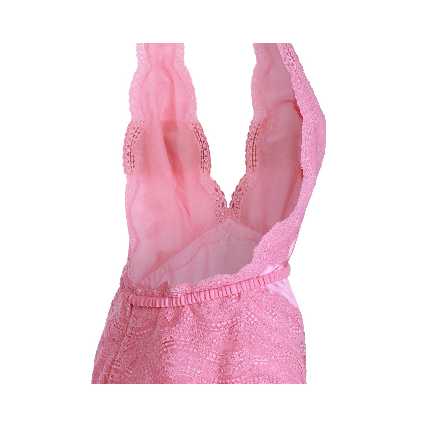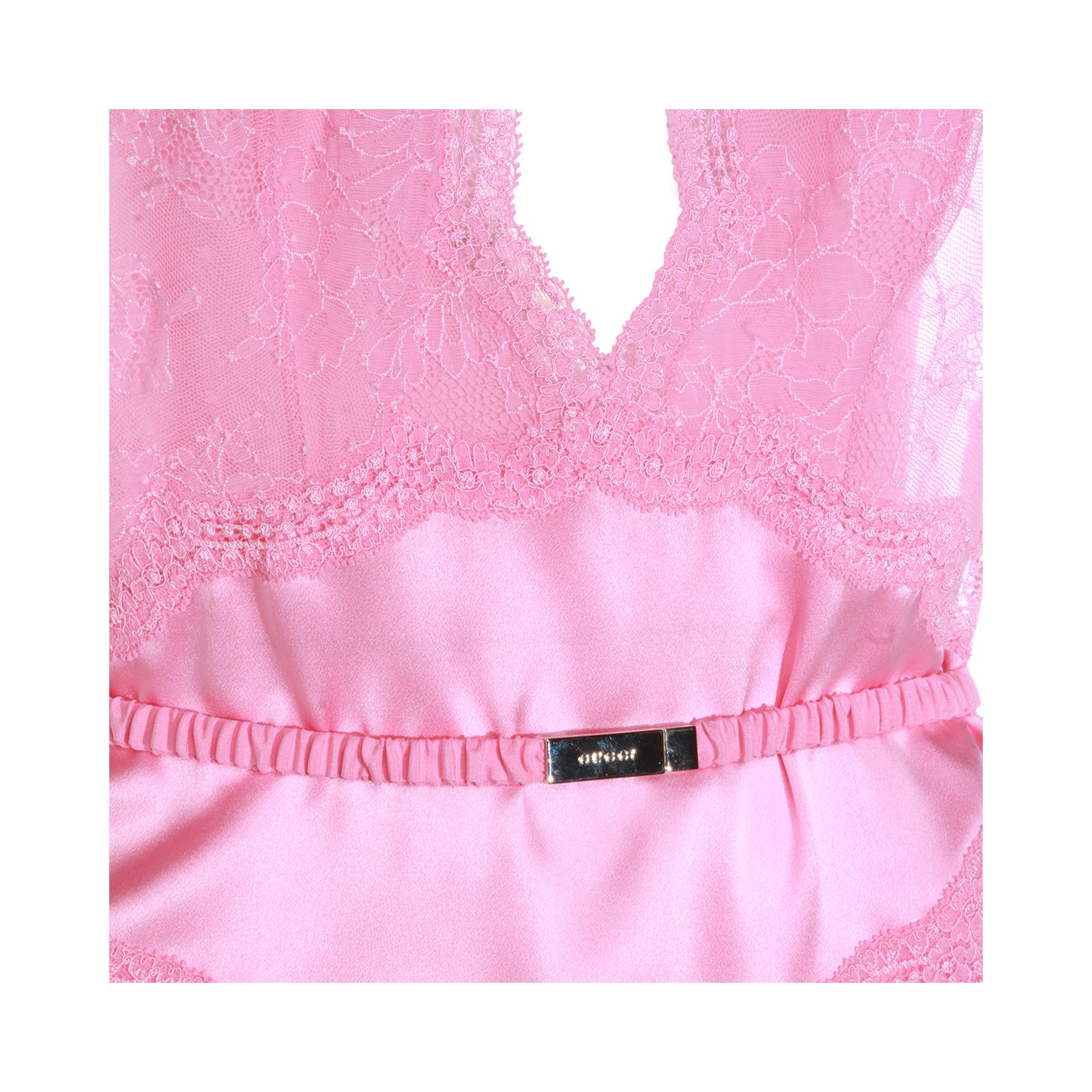 Pink silk dress froim Gucci featuring deep v neckline, sleeveless, lace details, open back, back zip fastening, semi elasticated waist and long lenght.