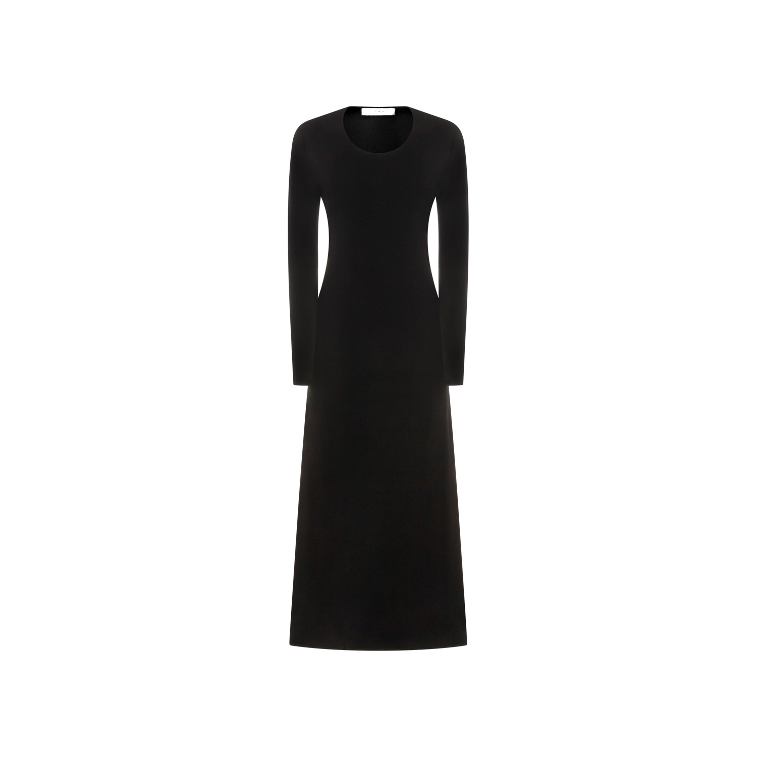 Black dress from The Row featuring round neck, long sleeves and full length.
