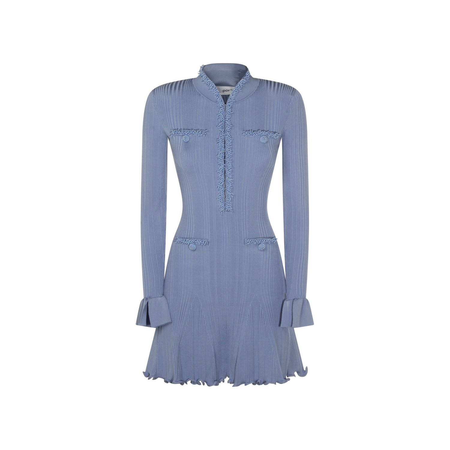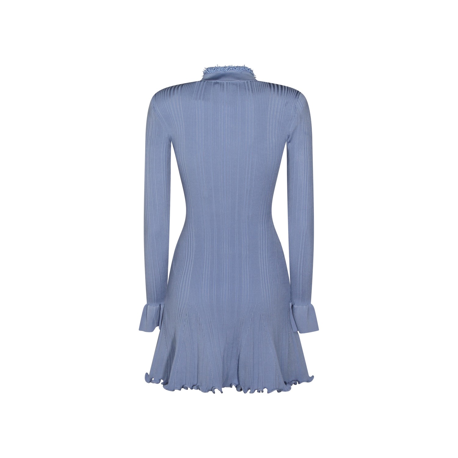 Blue dress from Self-Portrait featuring high collar, buttons fastening, long sleeves and loose vestibility.