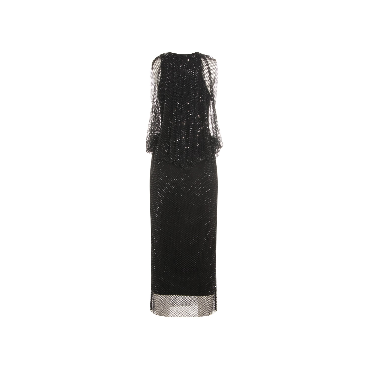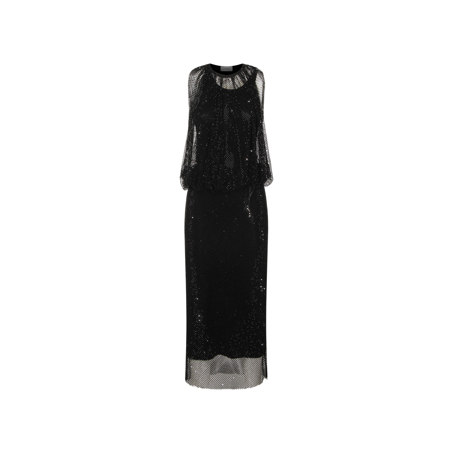 Black dress from Sportmax featuring crew neck, sleeveless, all over length, transparencies and sparkling details.