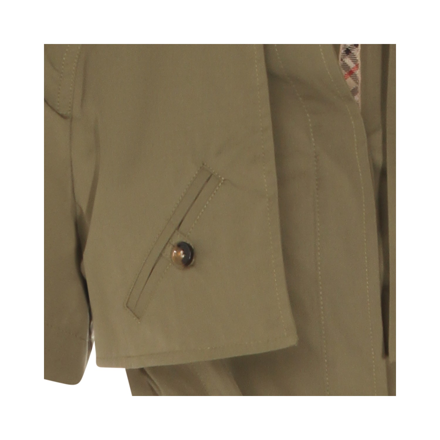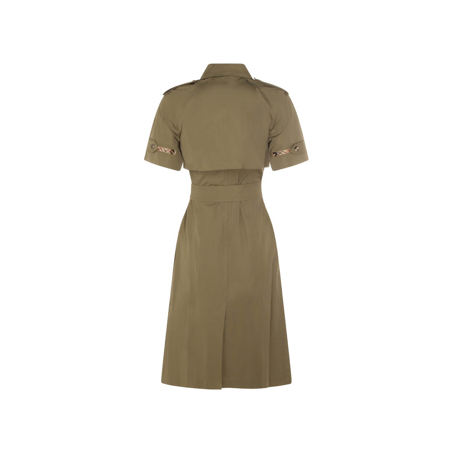Olive cotton dress from Burberry featuring shirt neck, buttons fastening, short sleeves, waist belt, pockets and all over length.