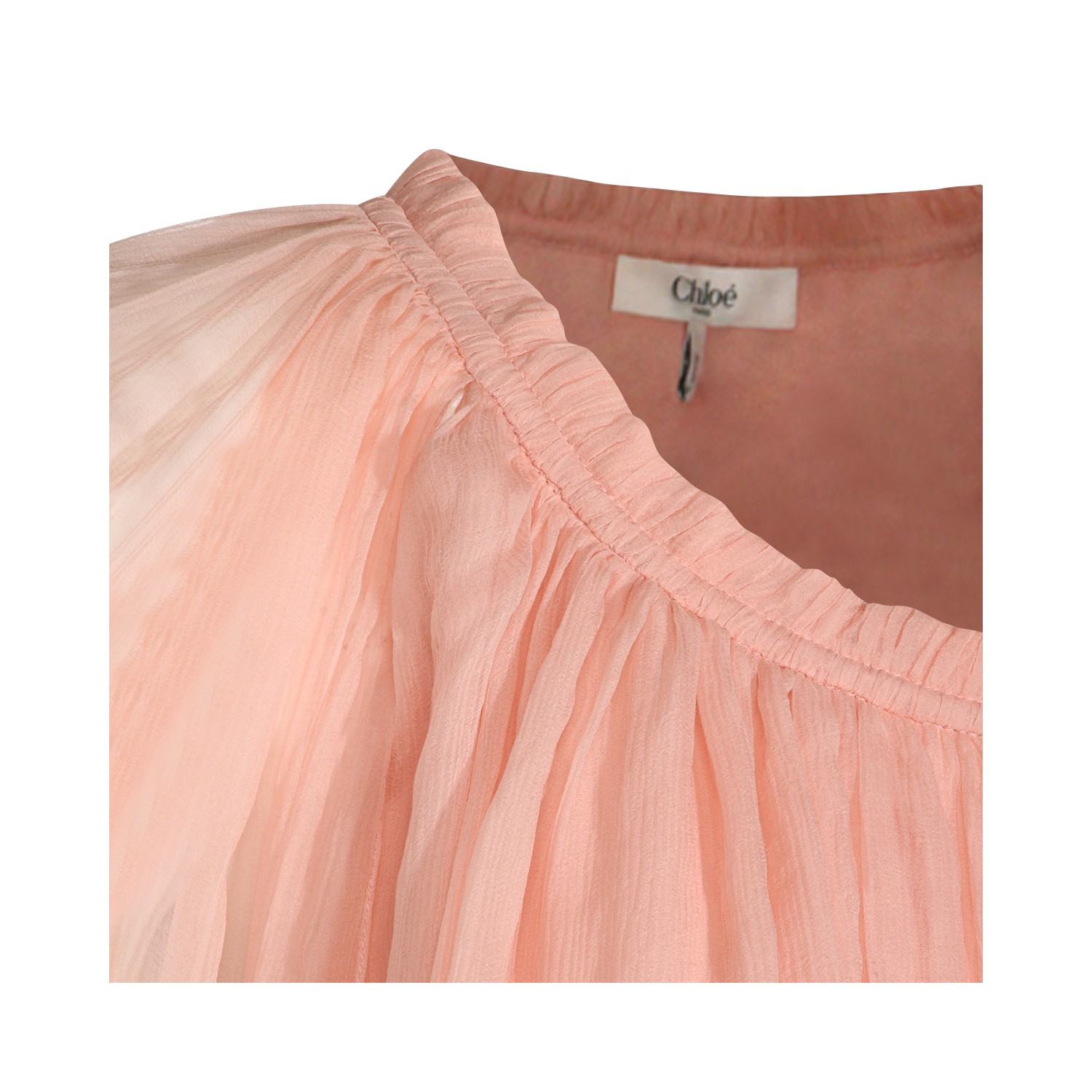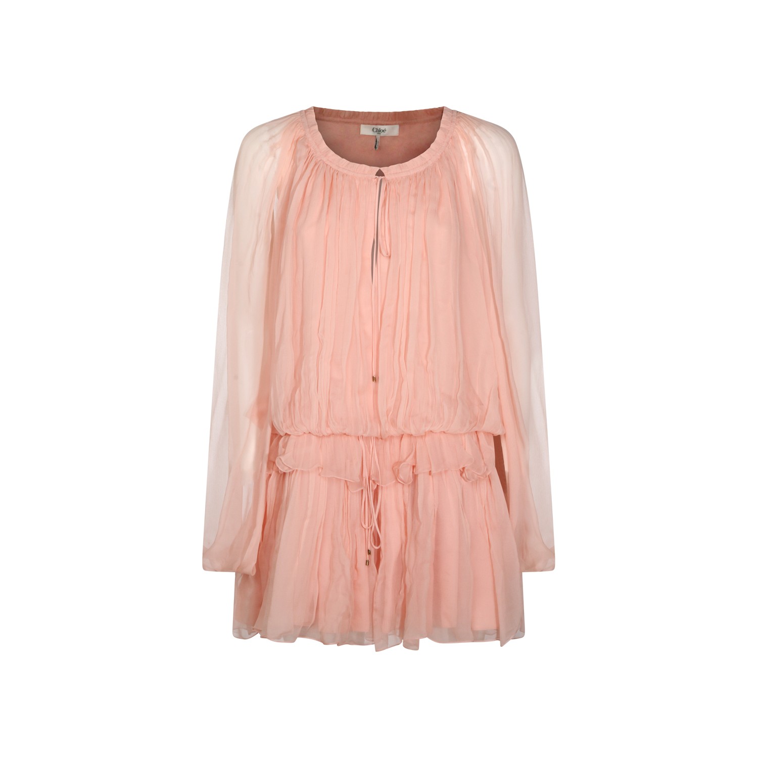 Rose silk dress from Chlofeaturing round neck, long sleeves, waist lace and loose vestibility.