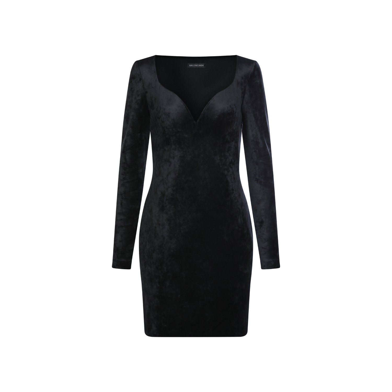 Black dress from Balenciaga featuring V-neck, long sleeves, mid length and slim vestibility.