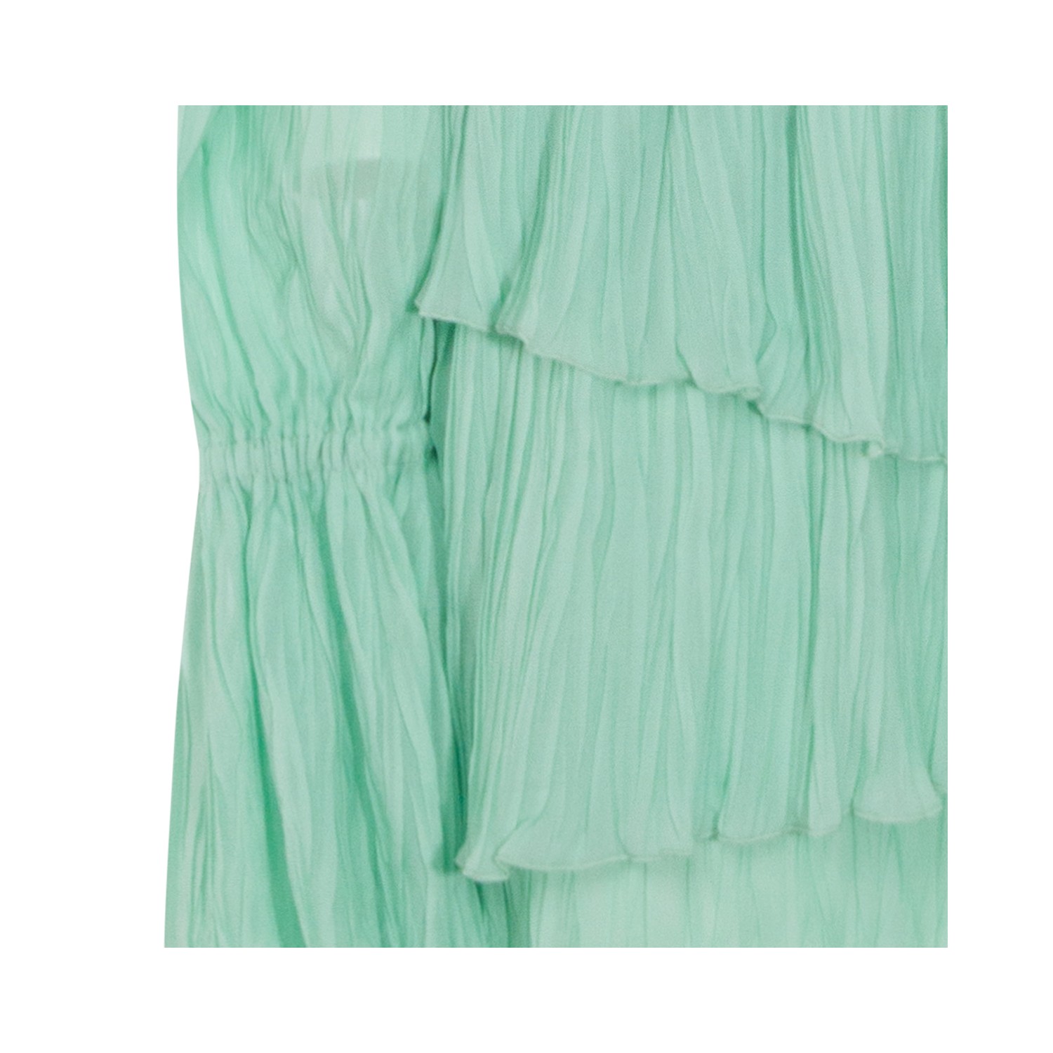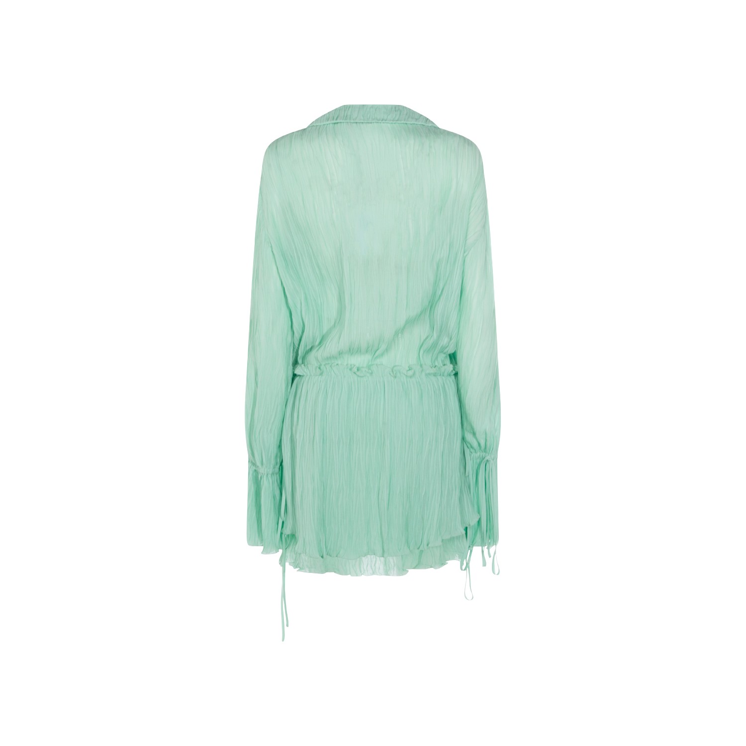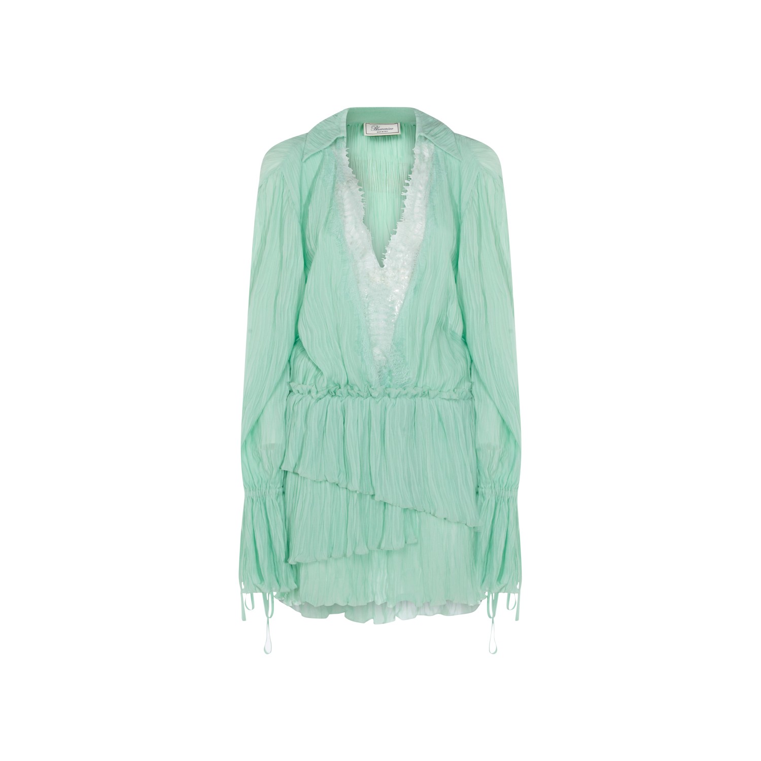 Light green viscose dress from Blumarine featuring v neckline, long sleeves, lace details and mini lenght.