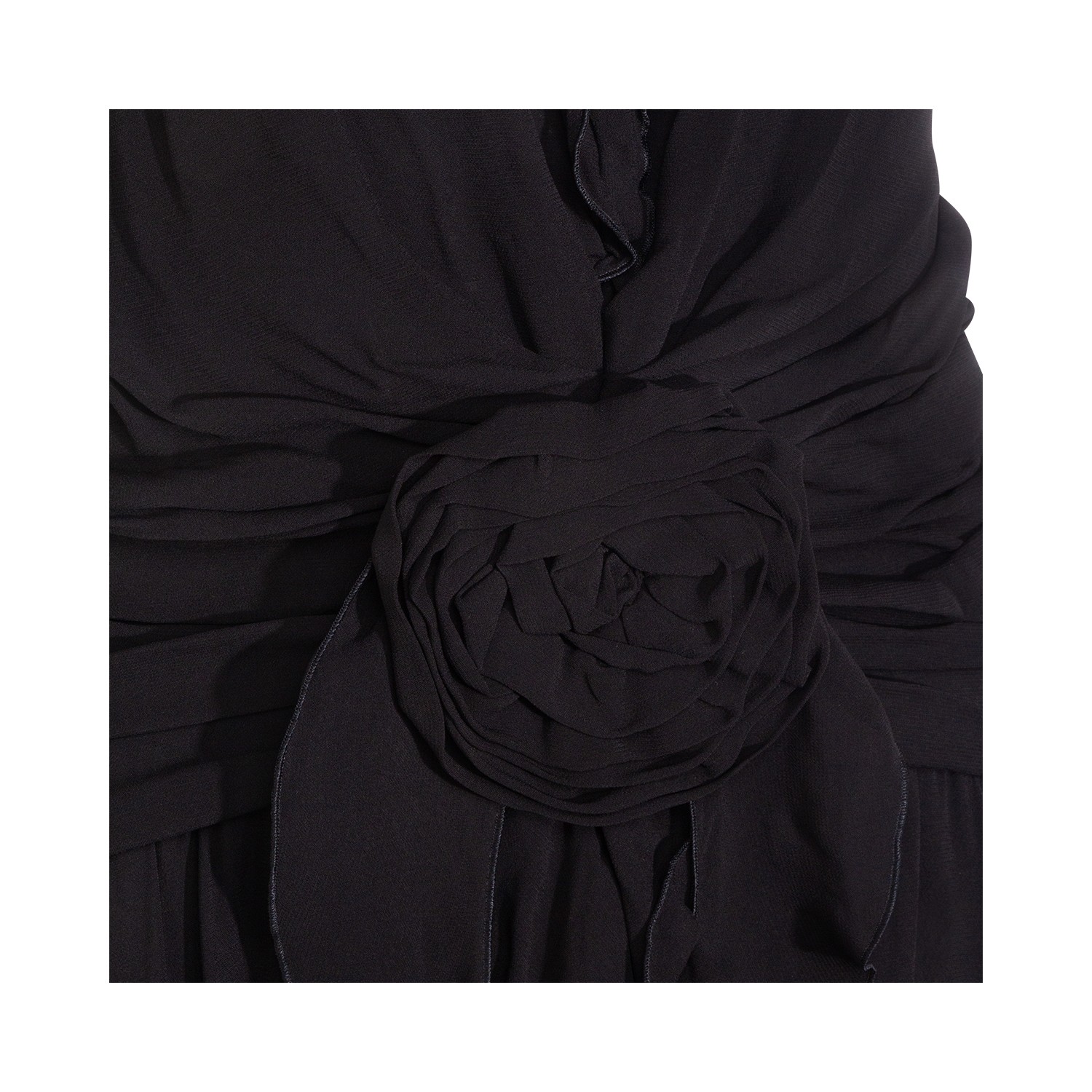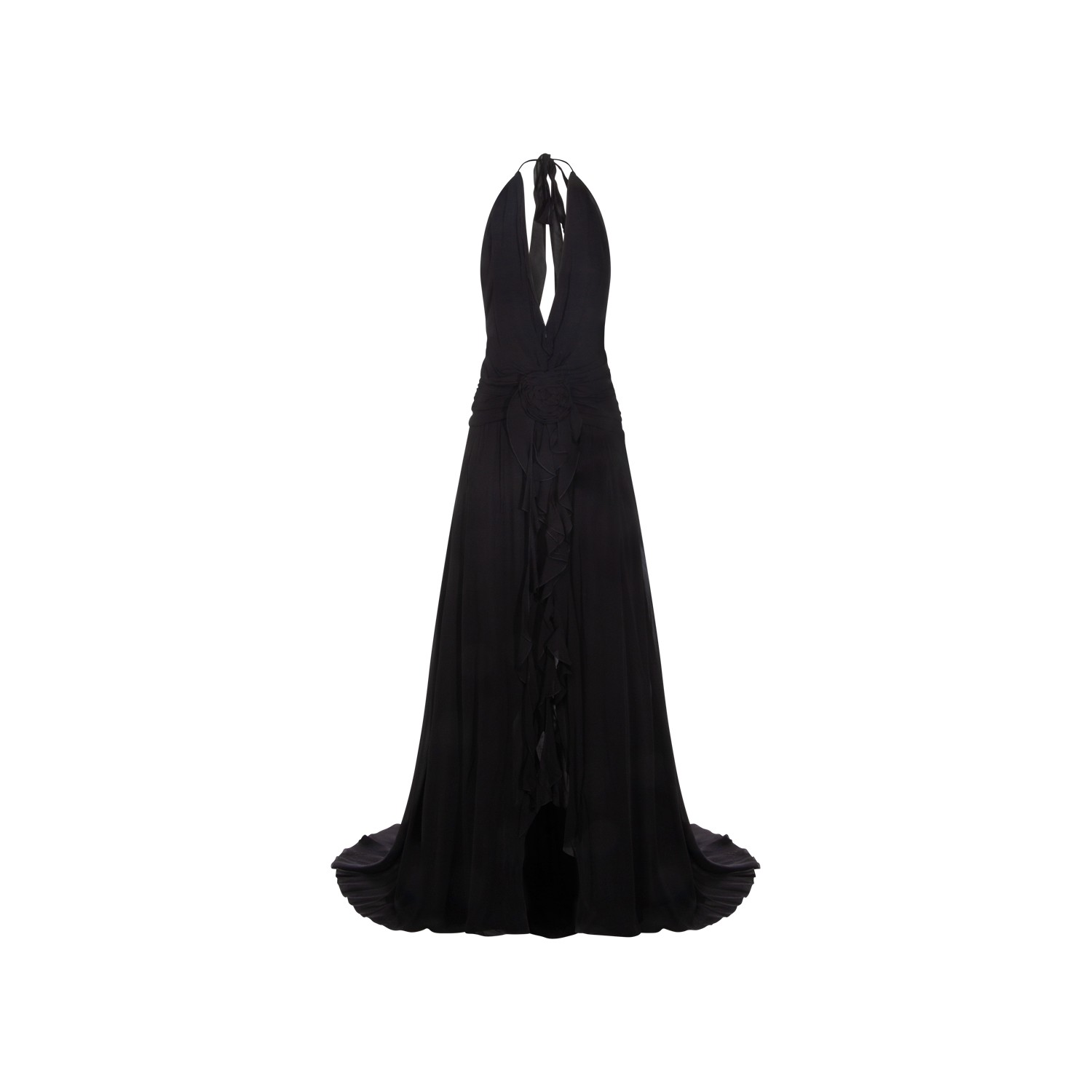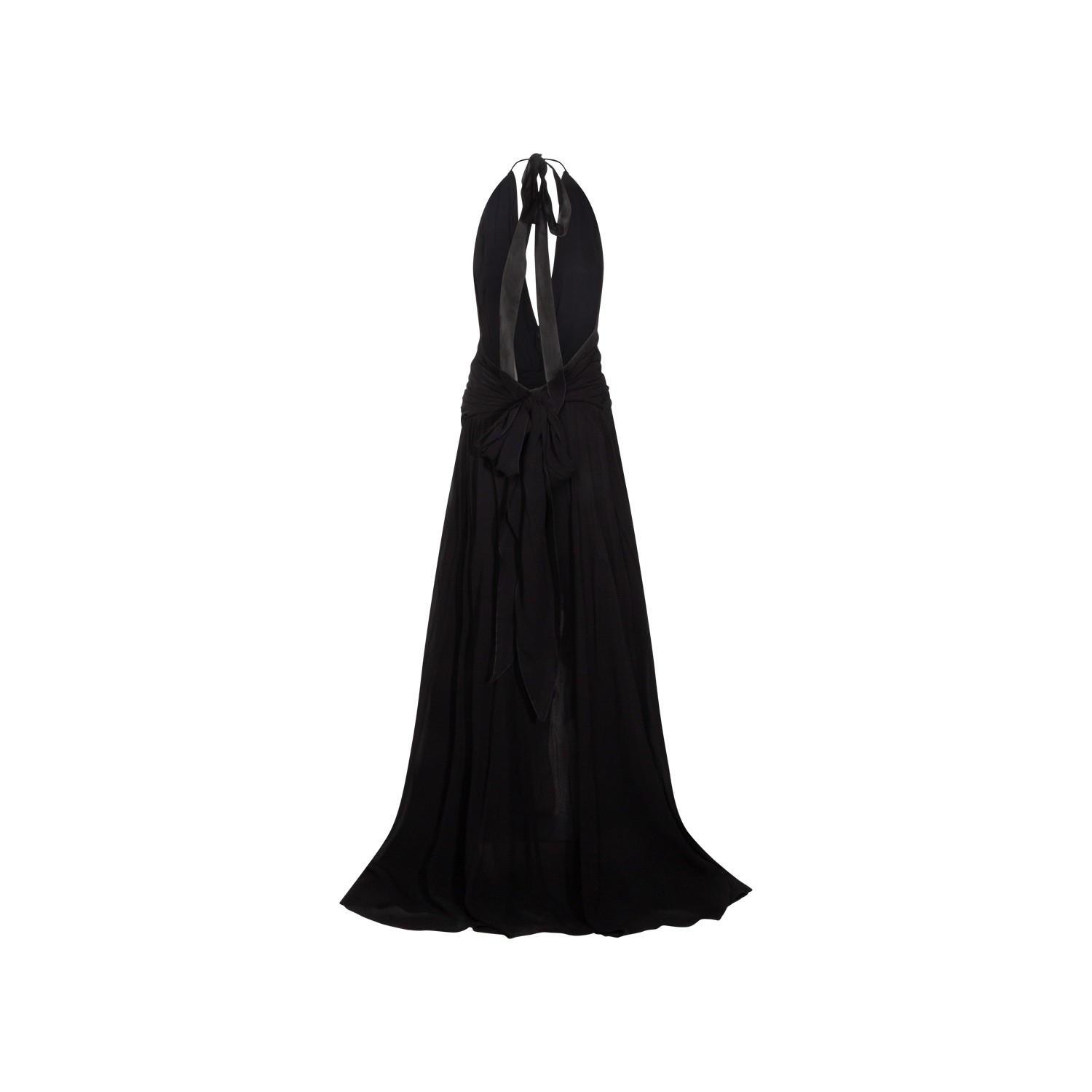 Black viscose dress from Blumarine featuring deep collar, sleeveless, draping, open back, details and long lenght.