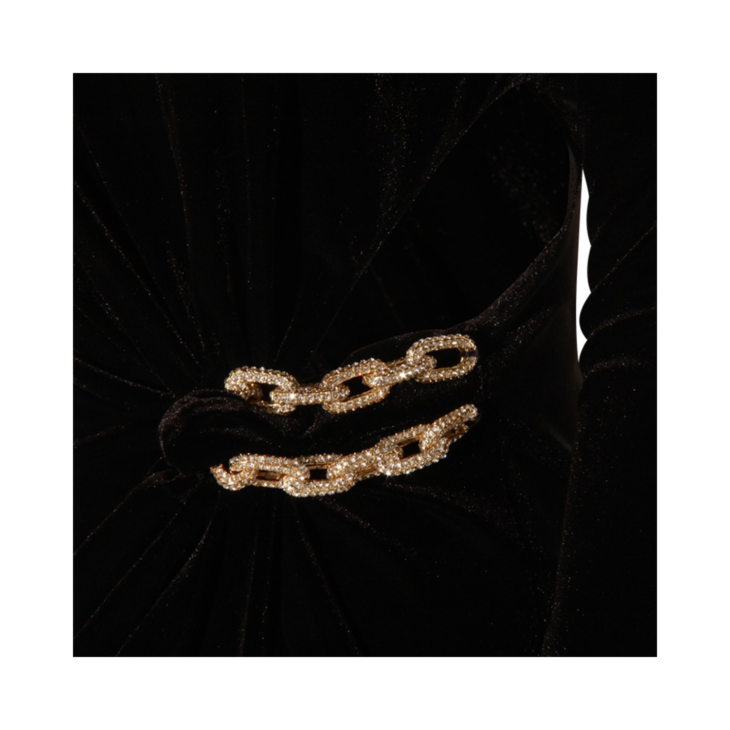 Black dress from Self-Portrait featuring round collar, long sleeves, lateral detail, split, rear fastening and long lenght.