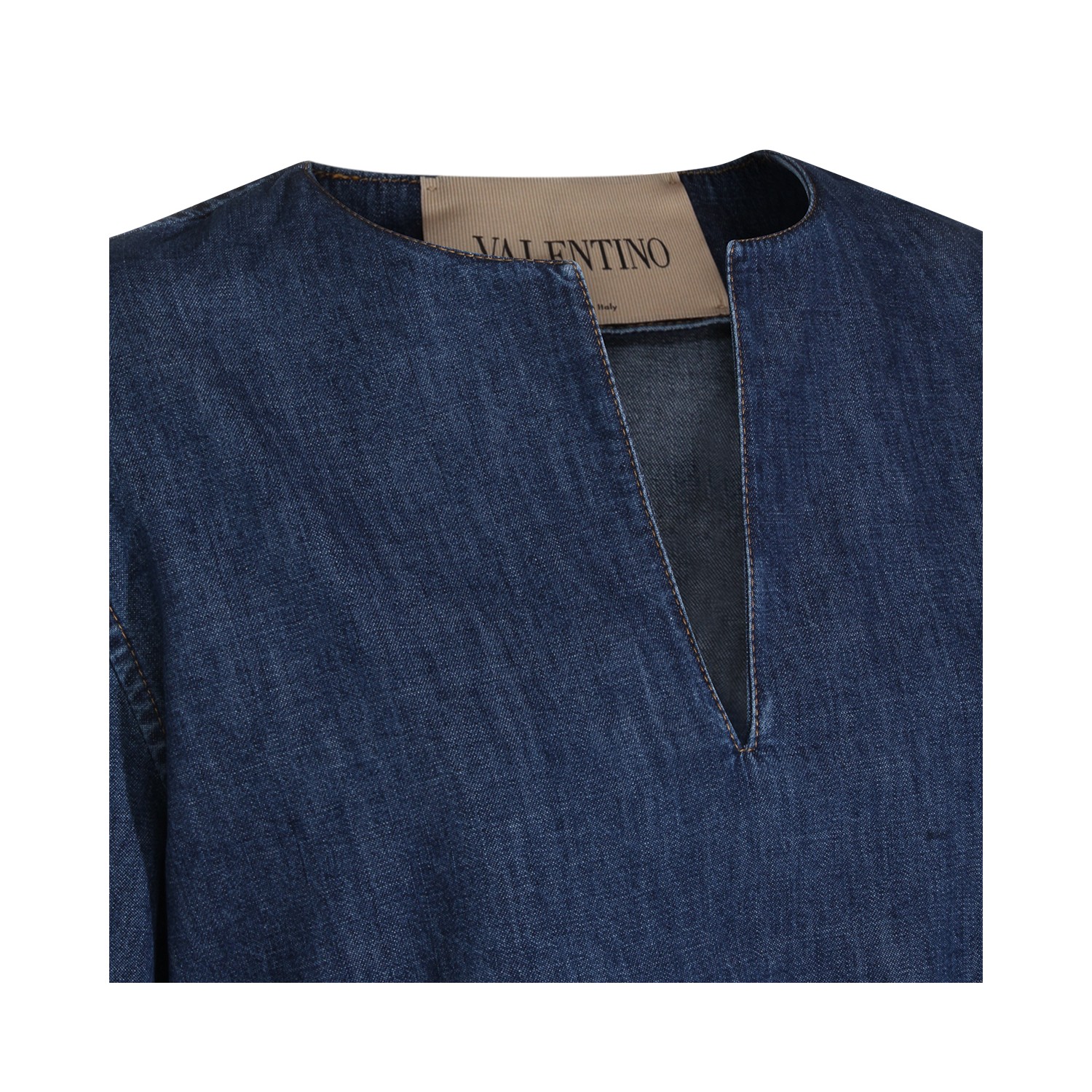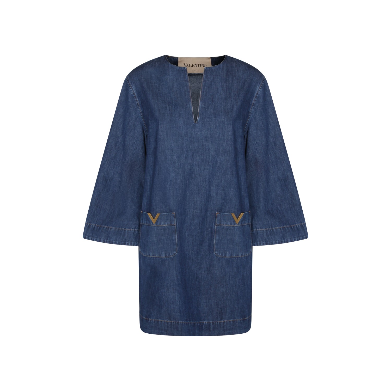 Blue cotton dress from Valentino featuring round collar, wide sleeves, pockets, relaxed fit and mini lenght.