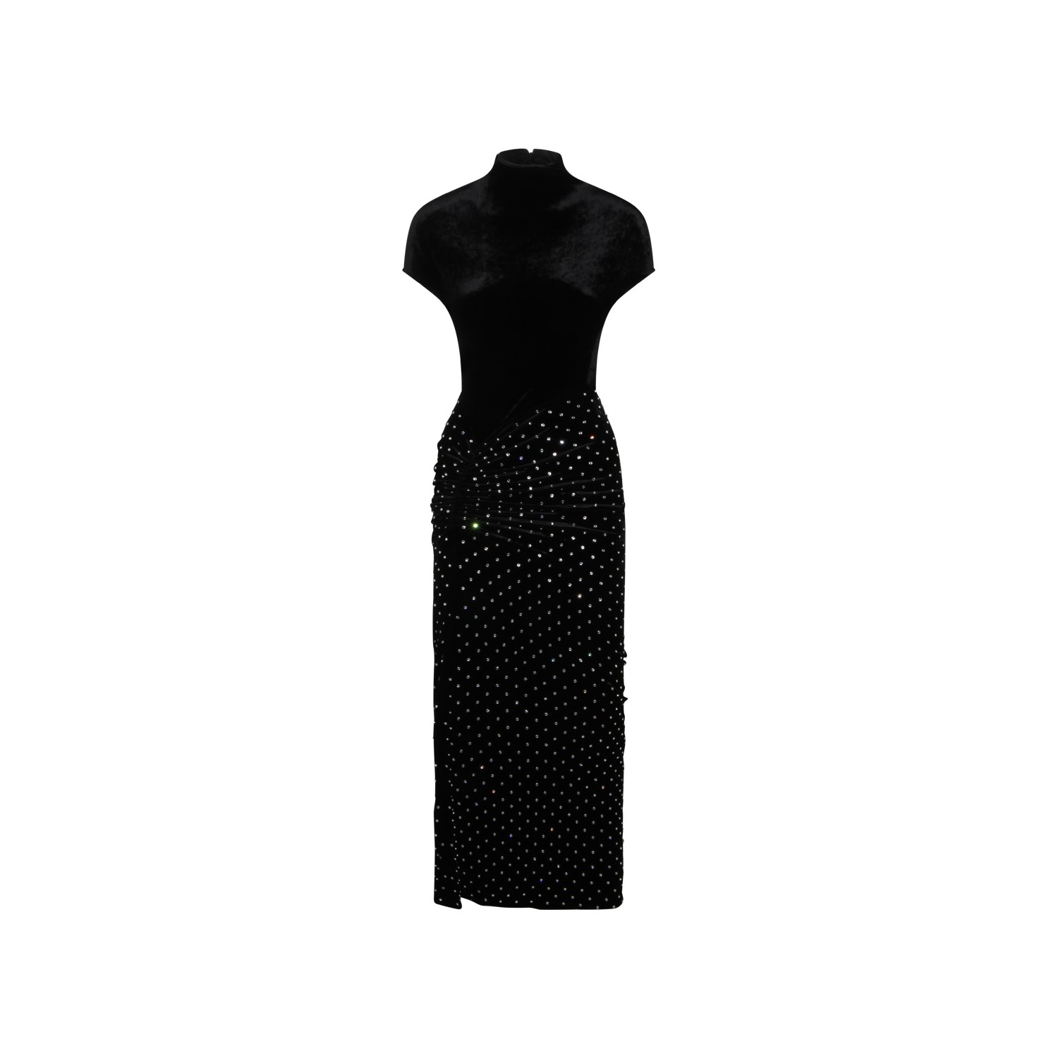 Black viscose maxi dress from Alaia featuring high collar, short sleeves, back zip fastening and midi length.