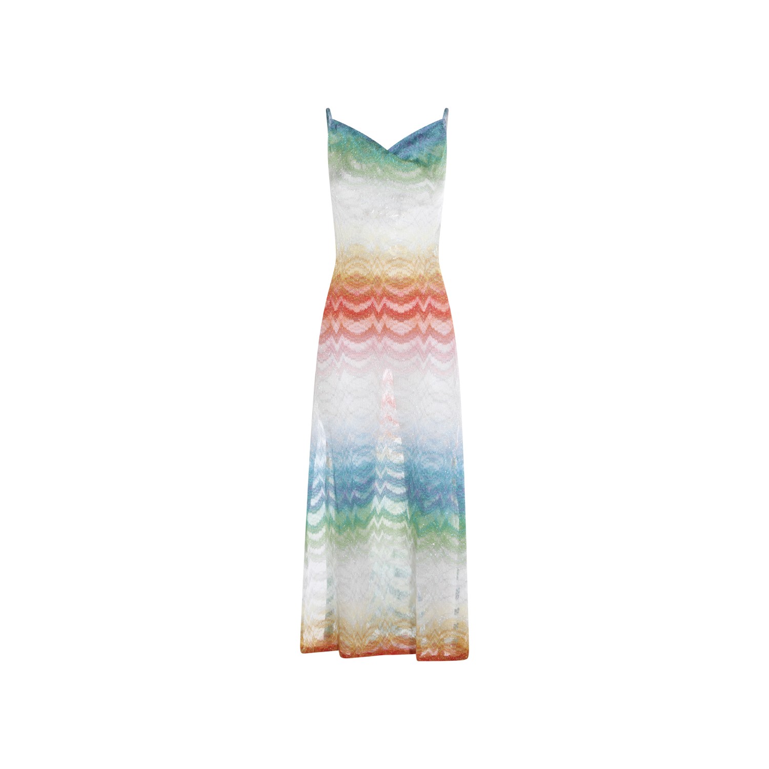 Multicolor viscose dress from Missoni featuring v open neck, sleeves, thin straps, trasparence and long lenght.