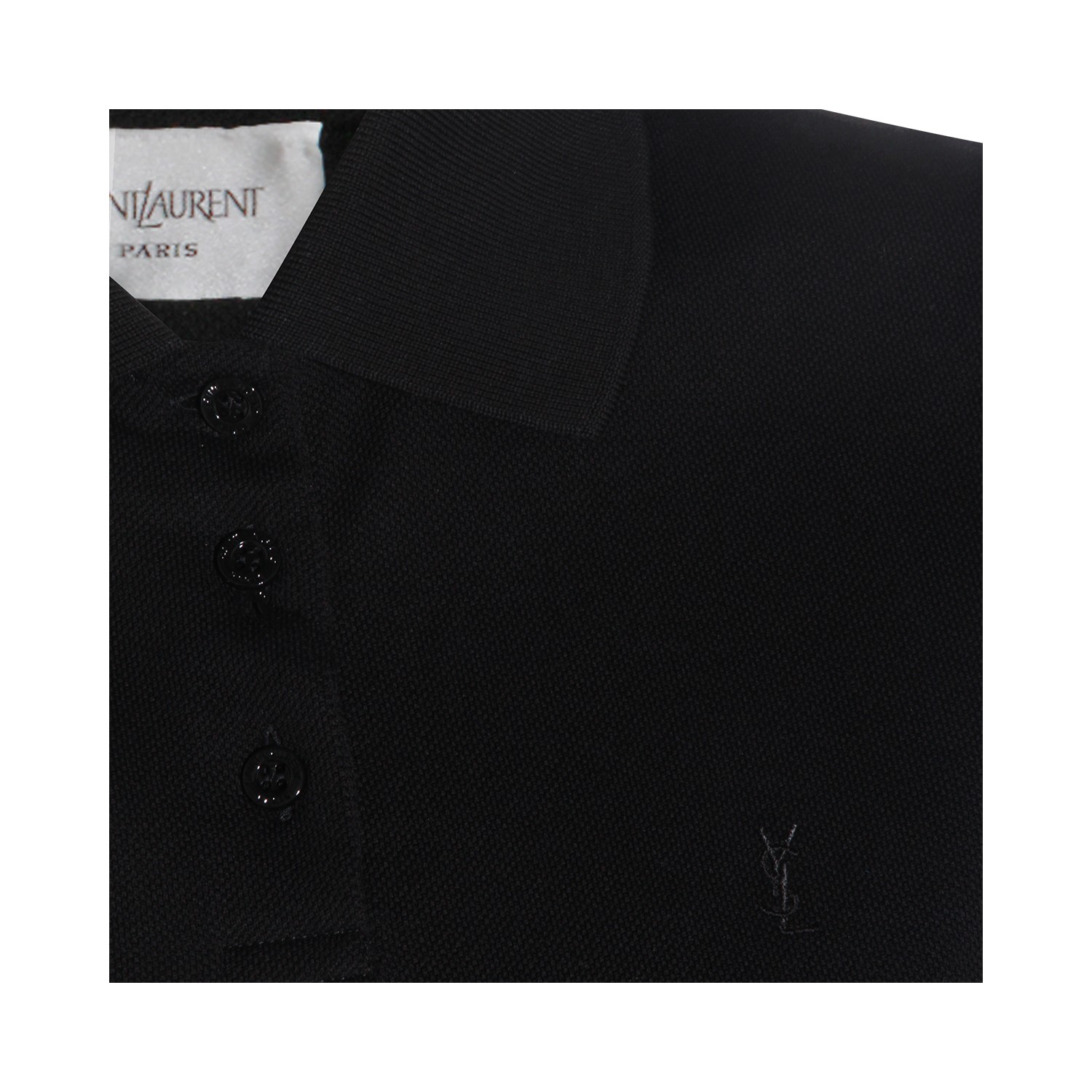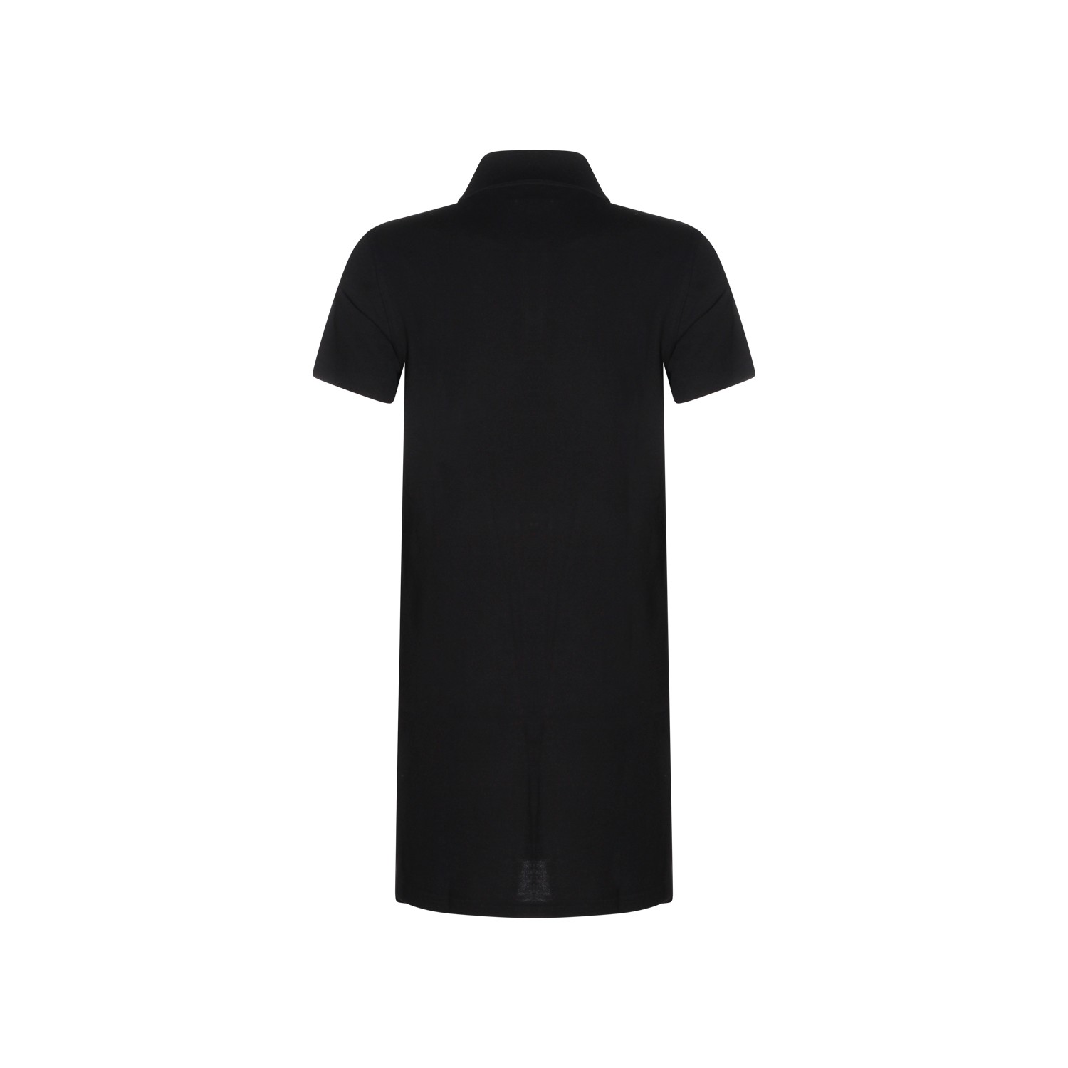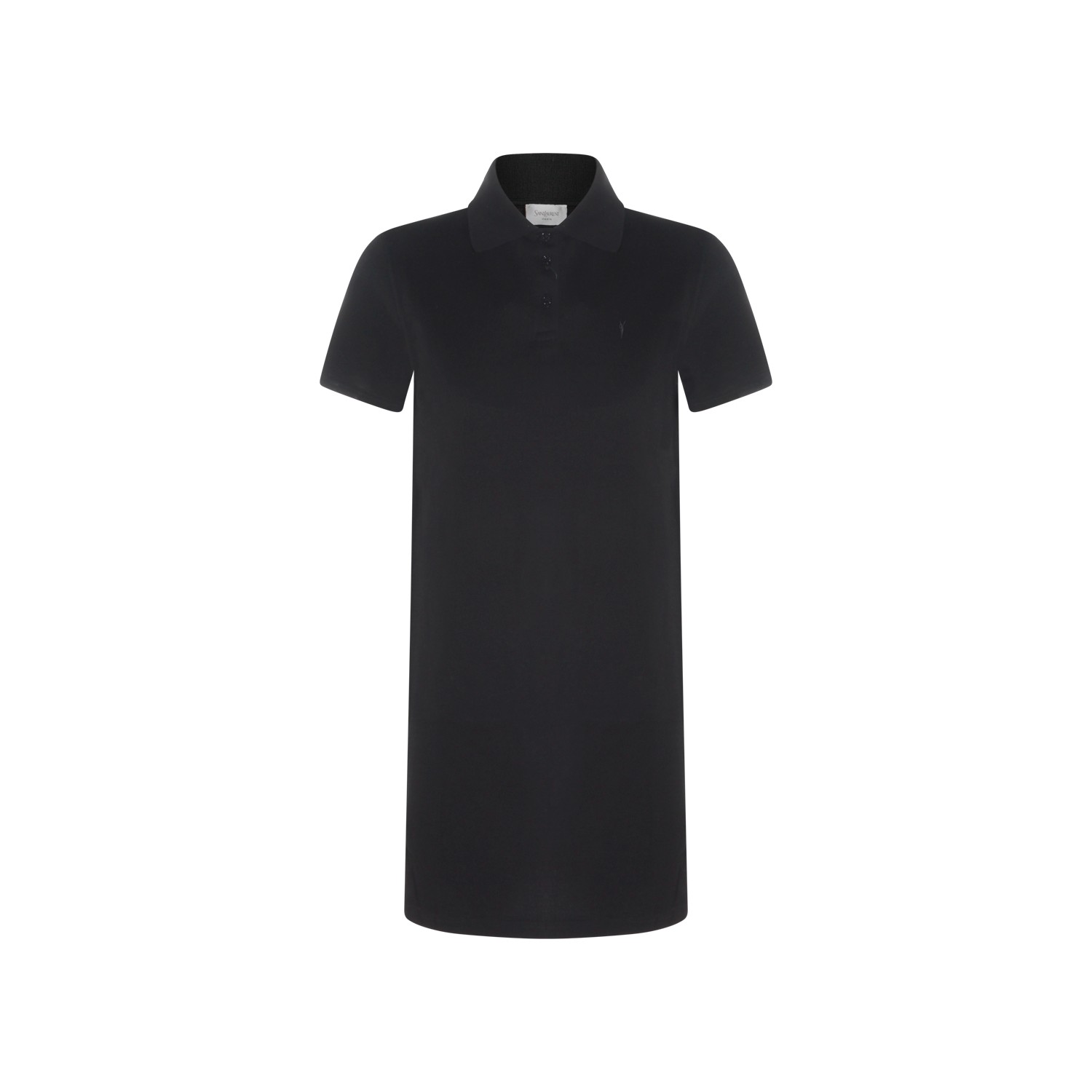 Black cotton dress from Saint Laurent featuring short sleeves, shirt collar, buttons fastening, frontal embroidered logo, midi length and regular vestibility.