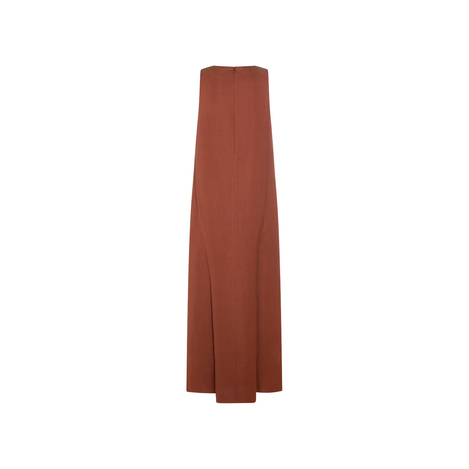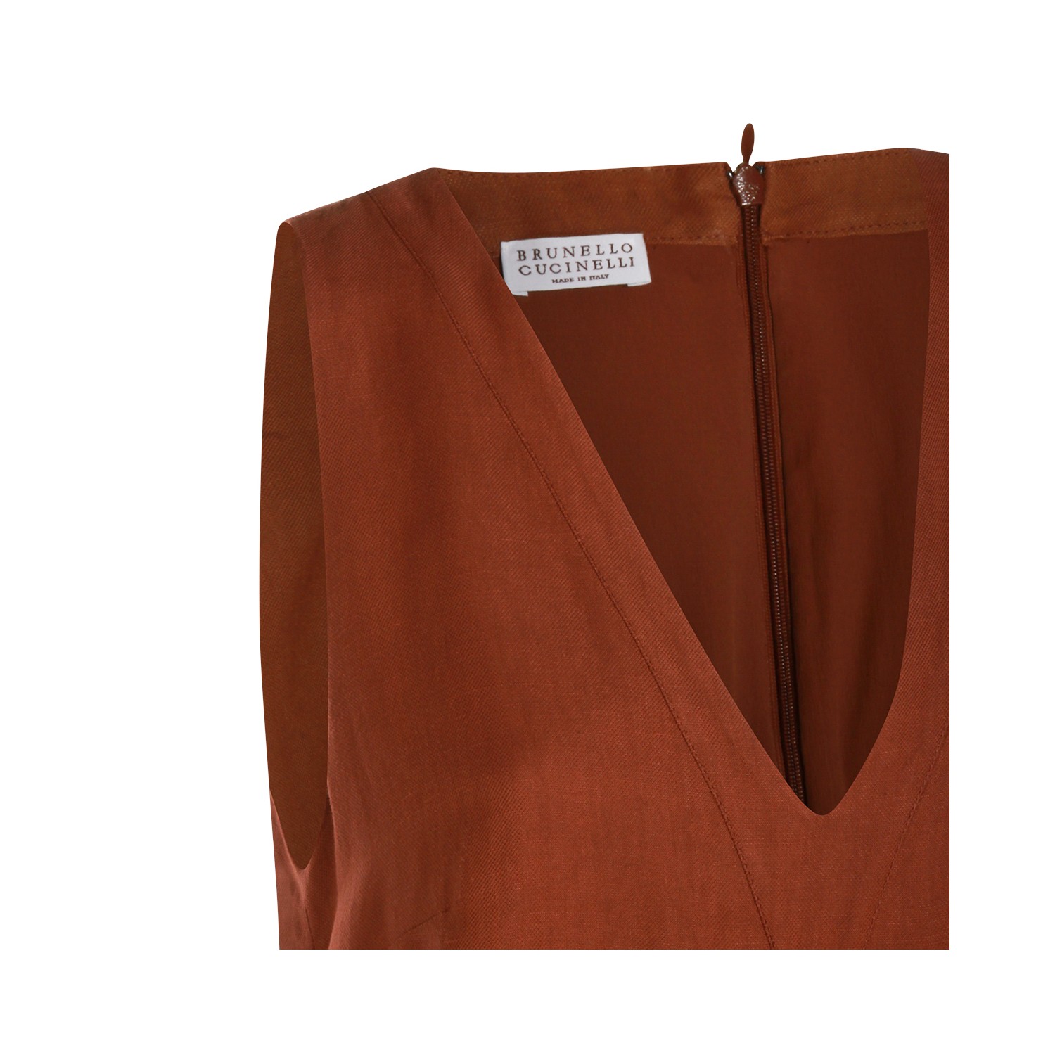 Brick viscose dress from Brunello Cucinelli featuring v neckline, sleeveless, side slits and long lenght.