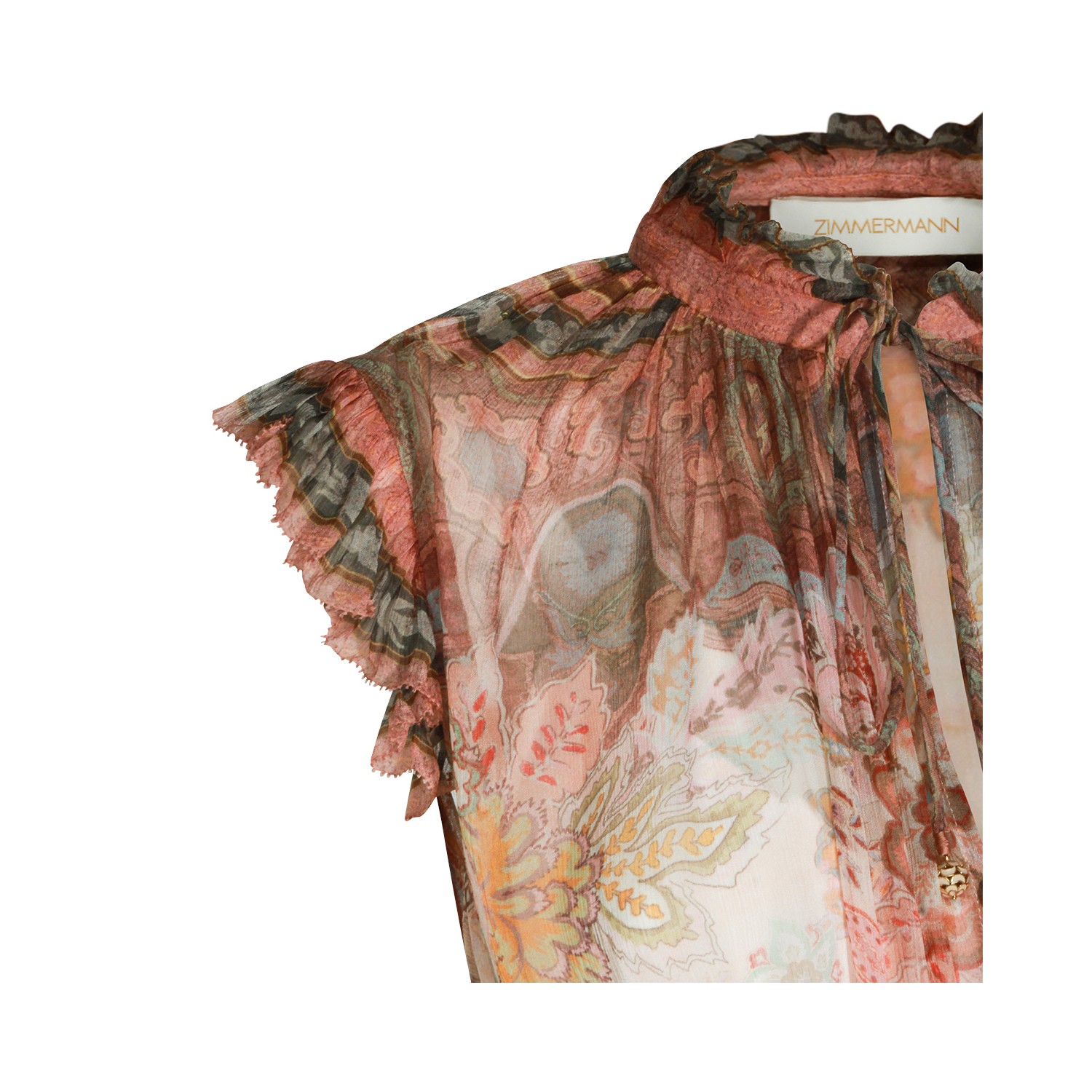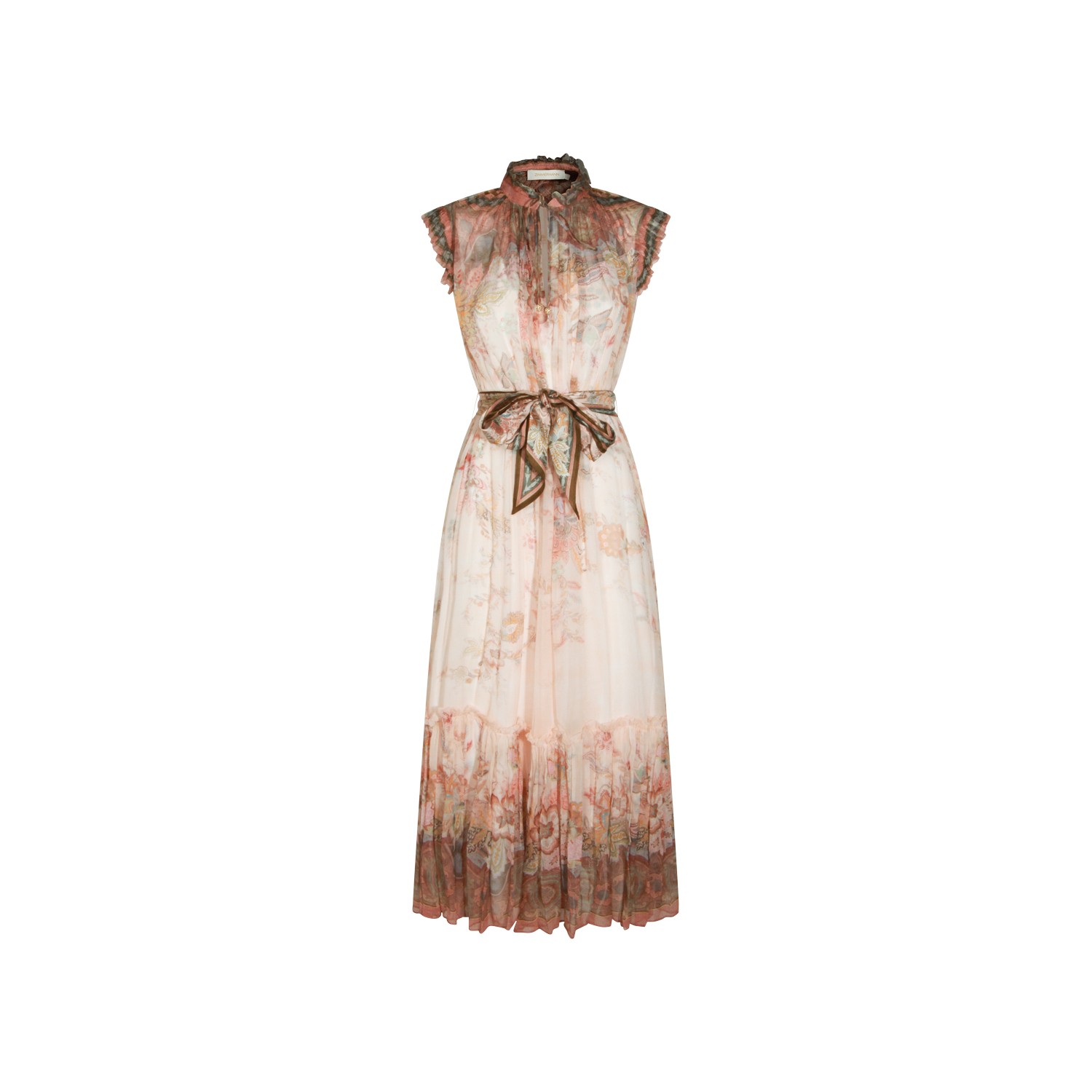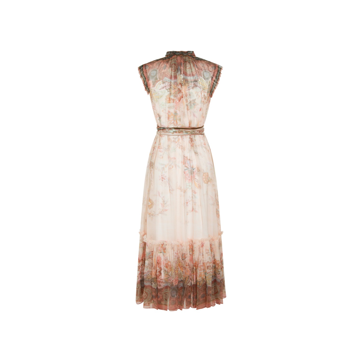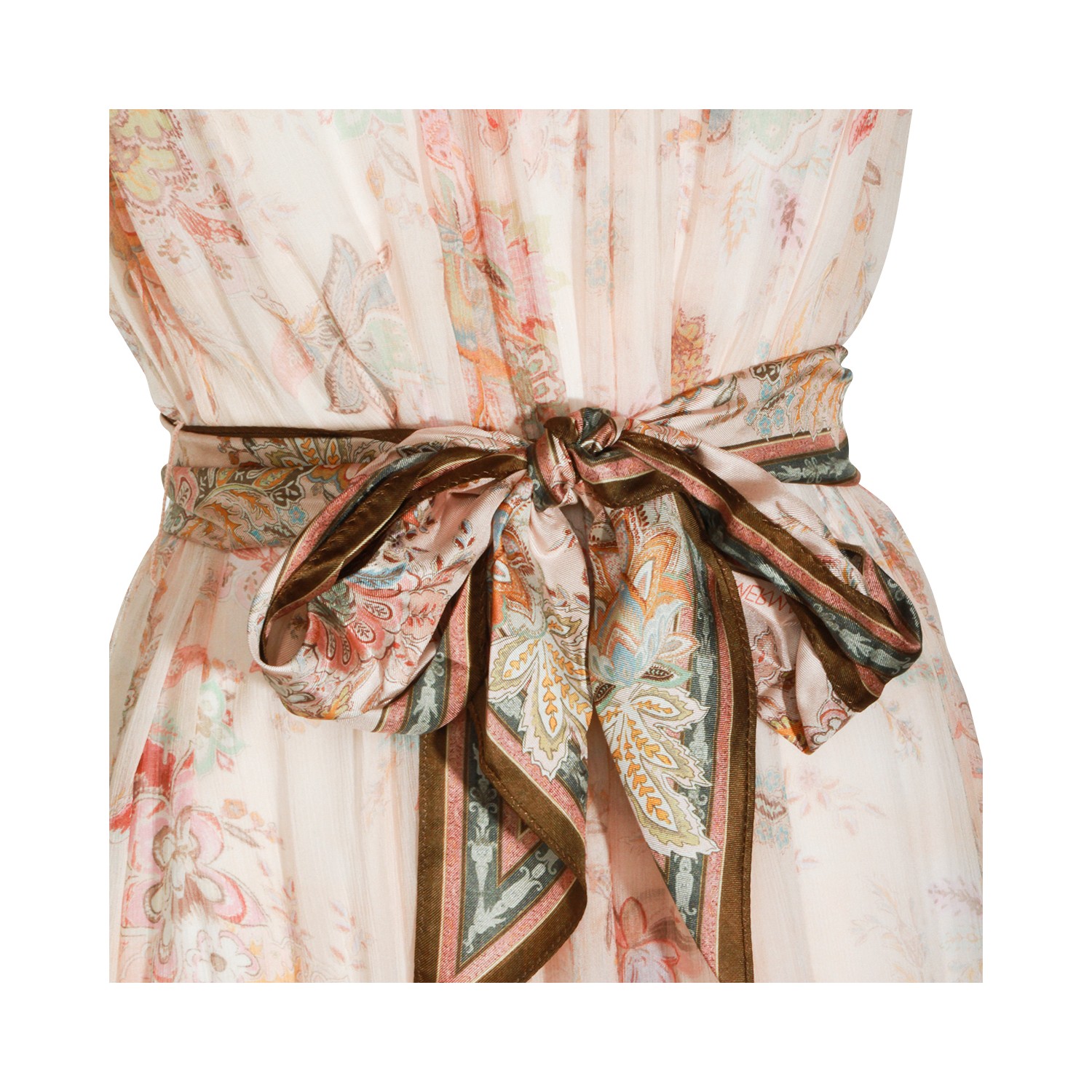 Multicolor viscose dress from Zimmermann featuring ruffles, short sleeves, matchy belt waist, all-over print and soft vestibility.