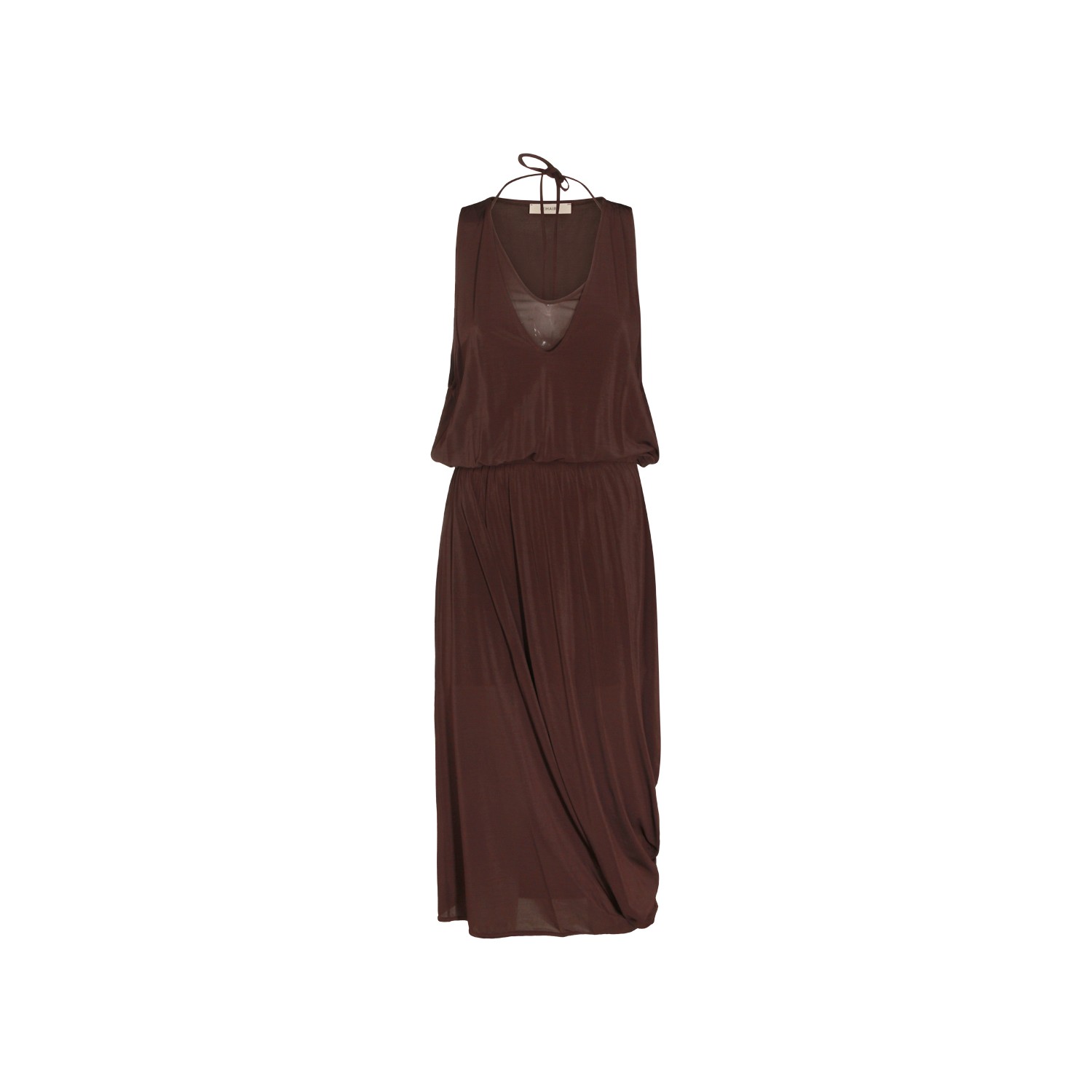 Fig viscose stretch long dress from Lemaire featuring long length, round neckline, thin straps and sleeveless line.
