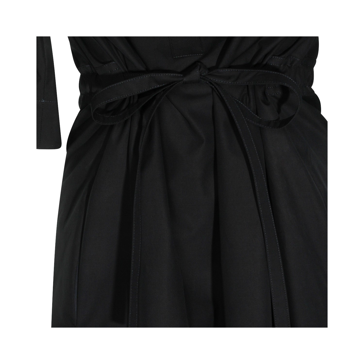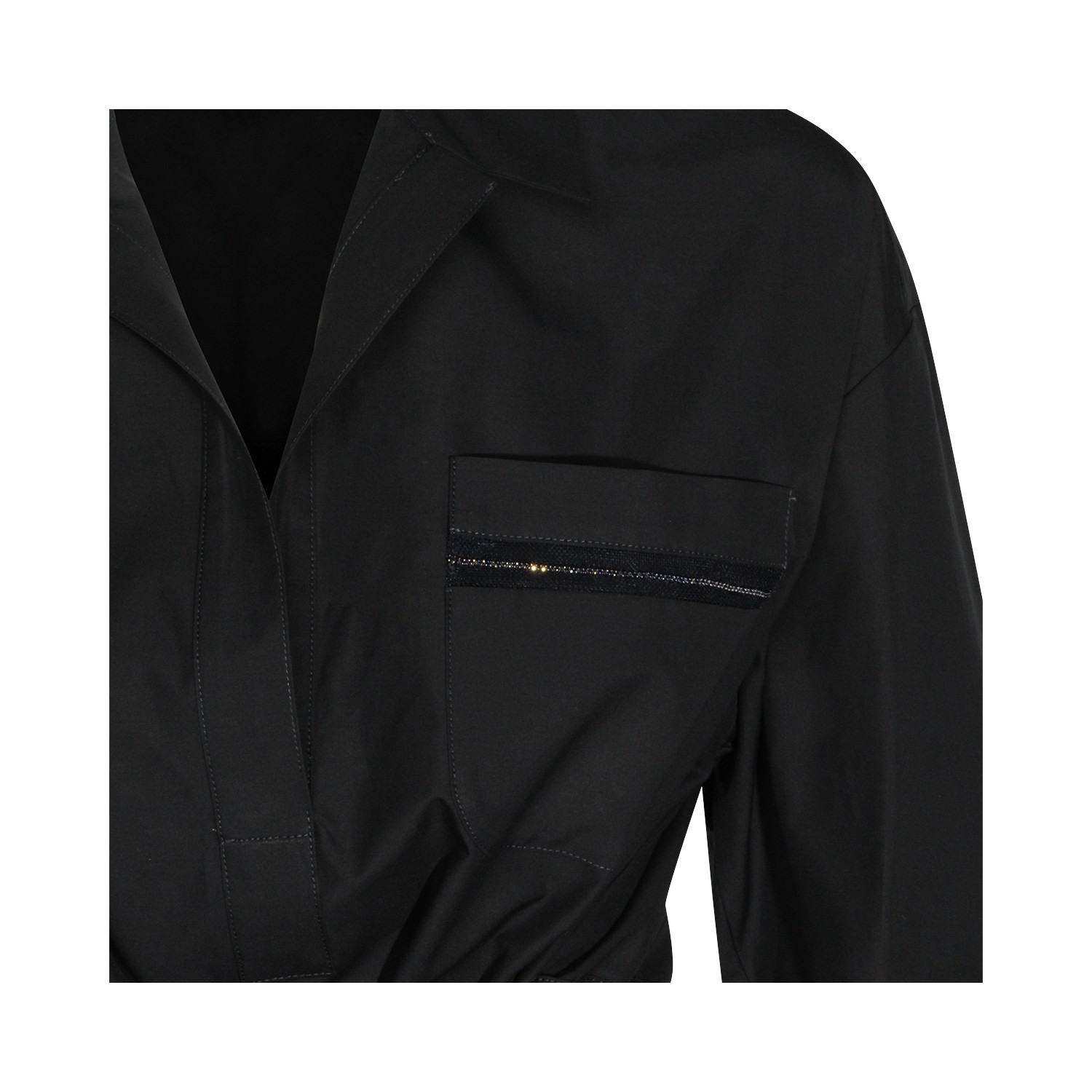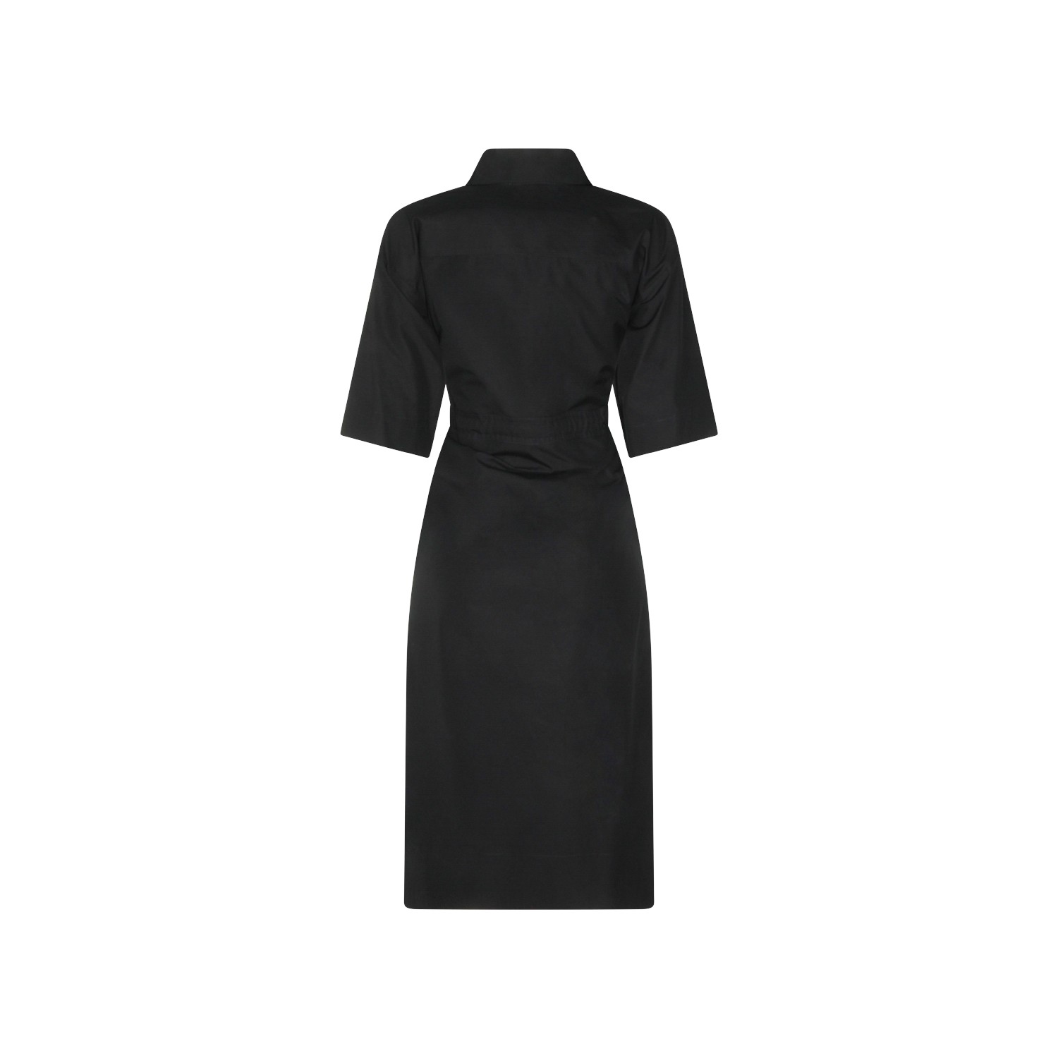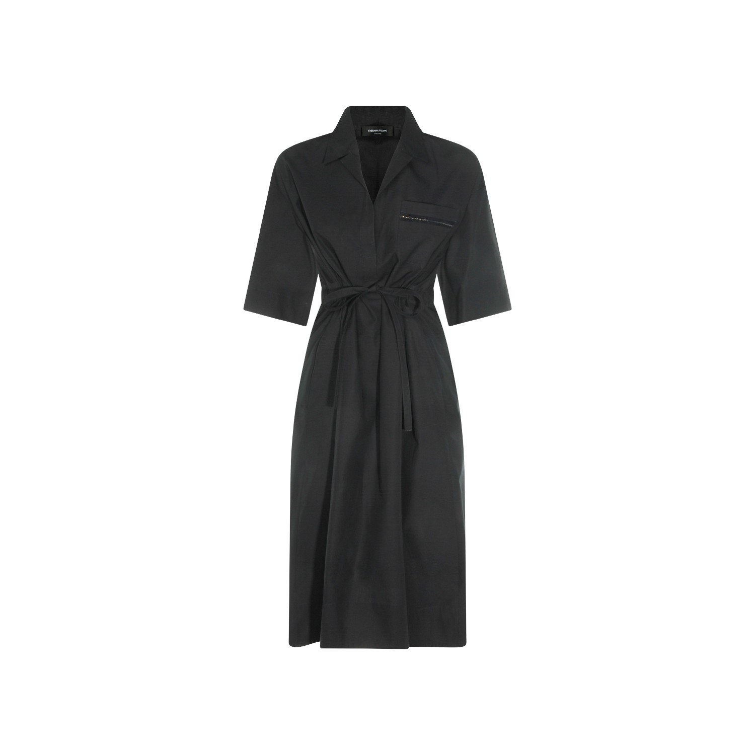 Navy cotton dress from Fabiana Filippi featuring classic collar, v neck, short sleeves, matchy belt waist and soft vestibility.